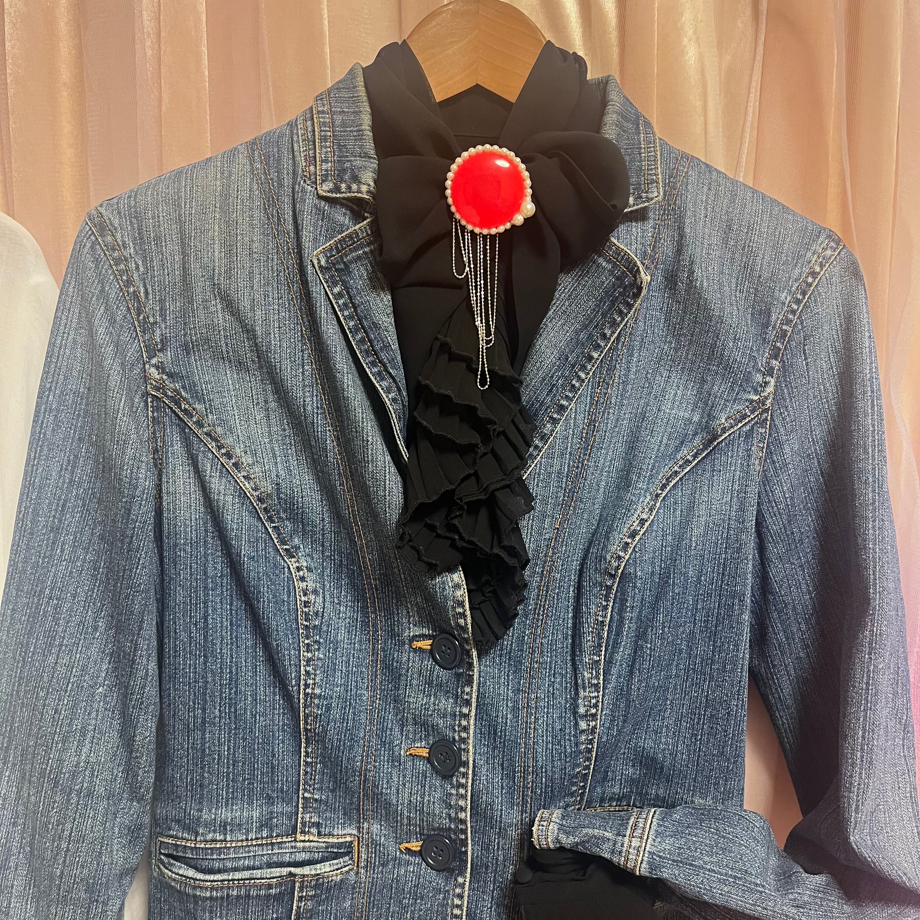 襟付きのシャツのセンターや、スカーフやリボンなどに合わせても。