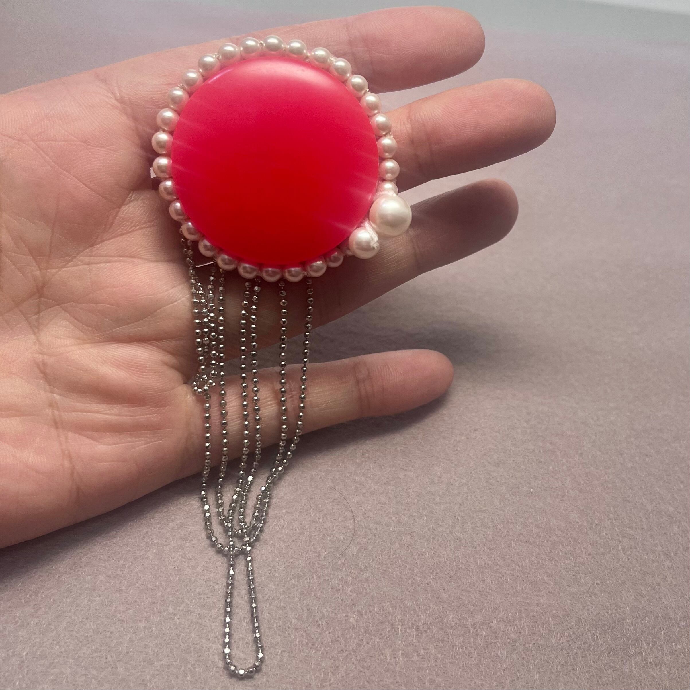 アクリルのジャラジャラブローチ(ピンク×シルバー)