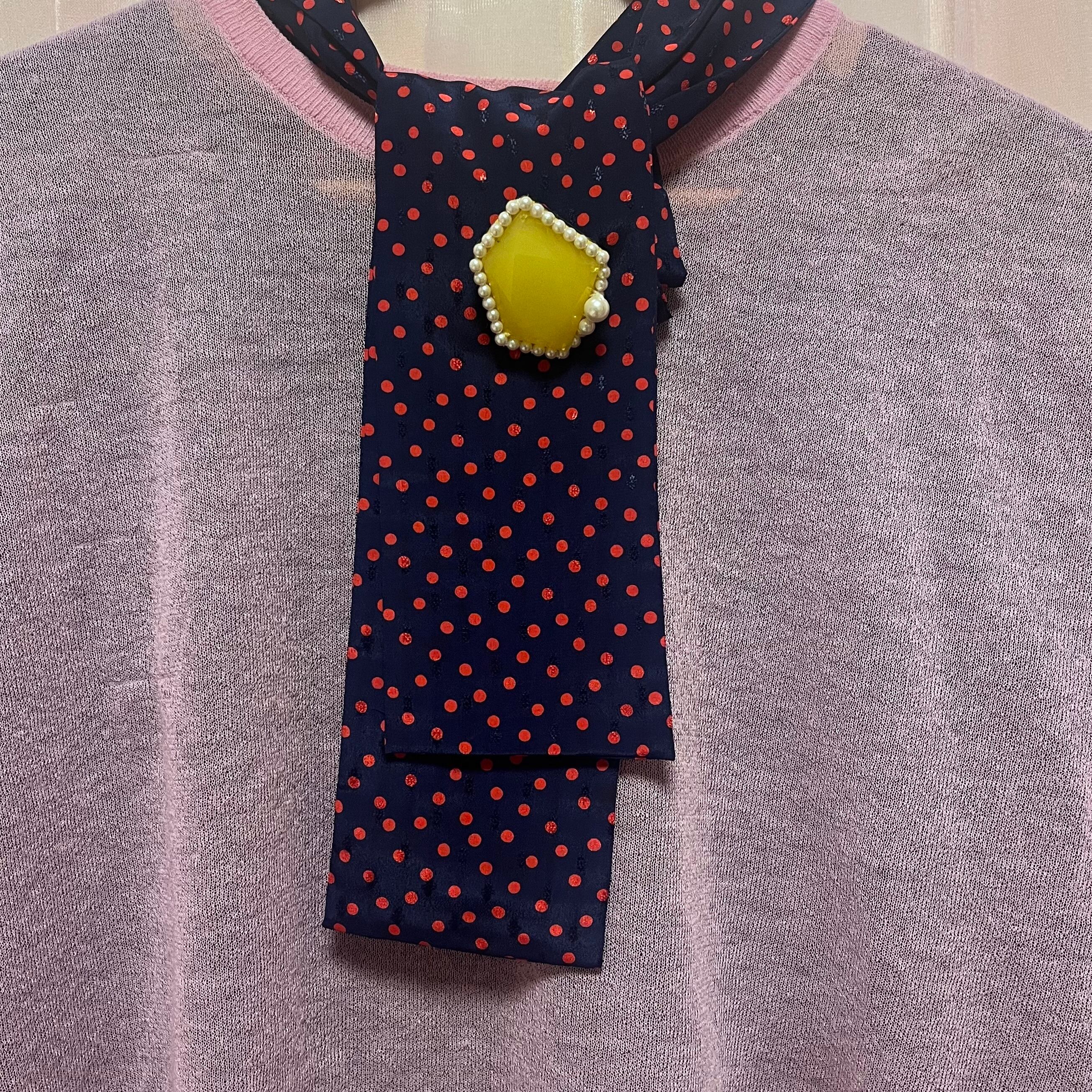 襟付きのシャツのセンターや、スカーフやリボンなどに合わせても。