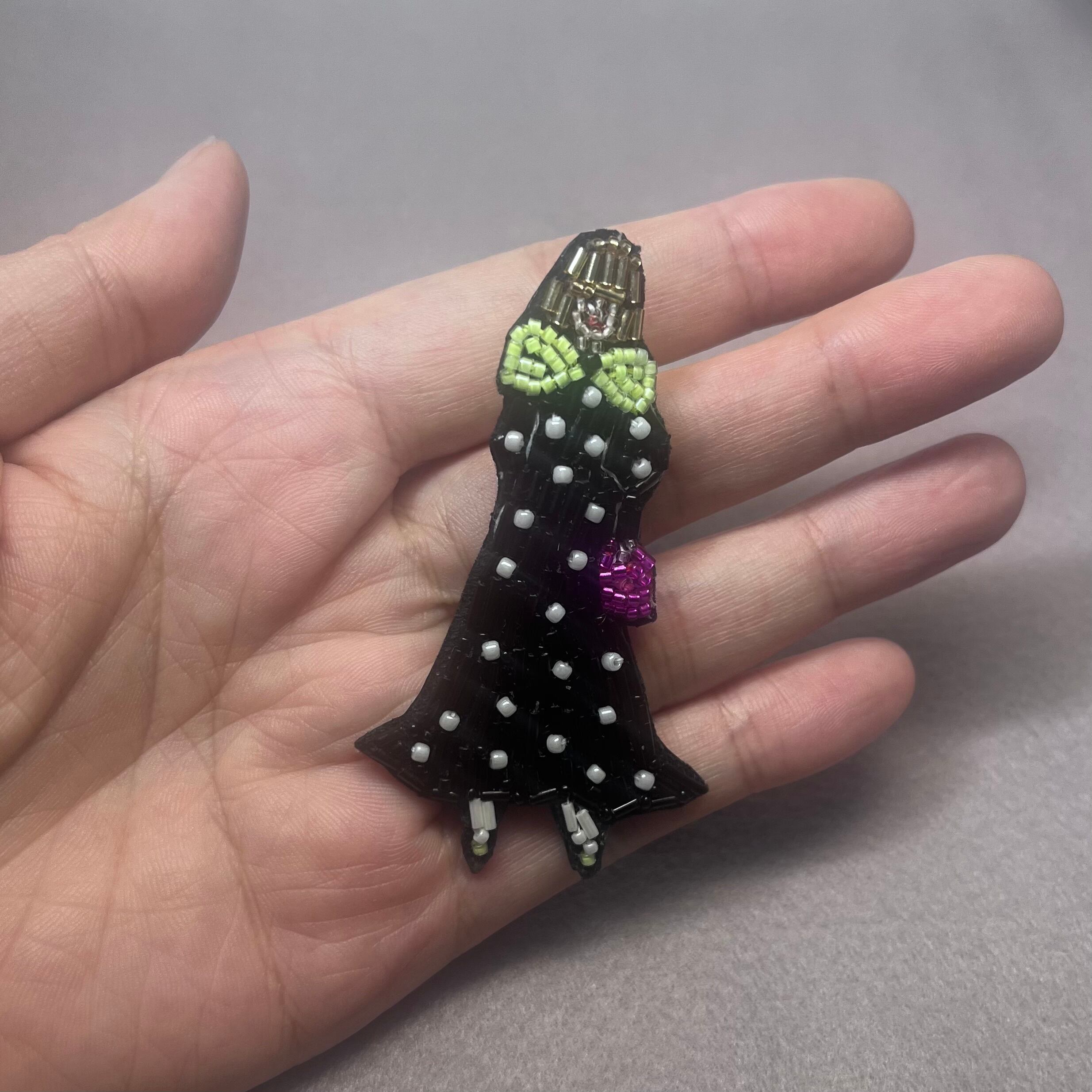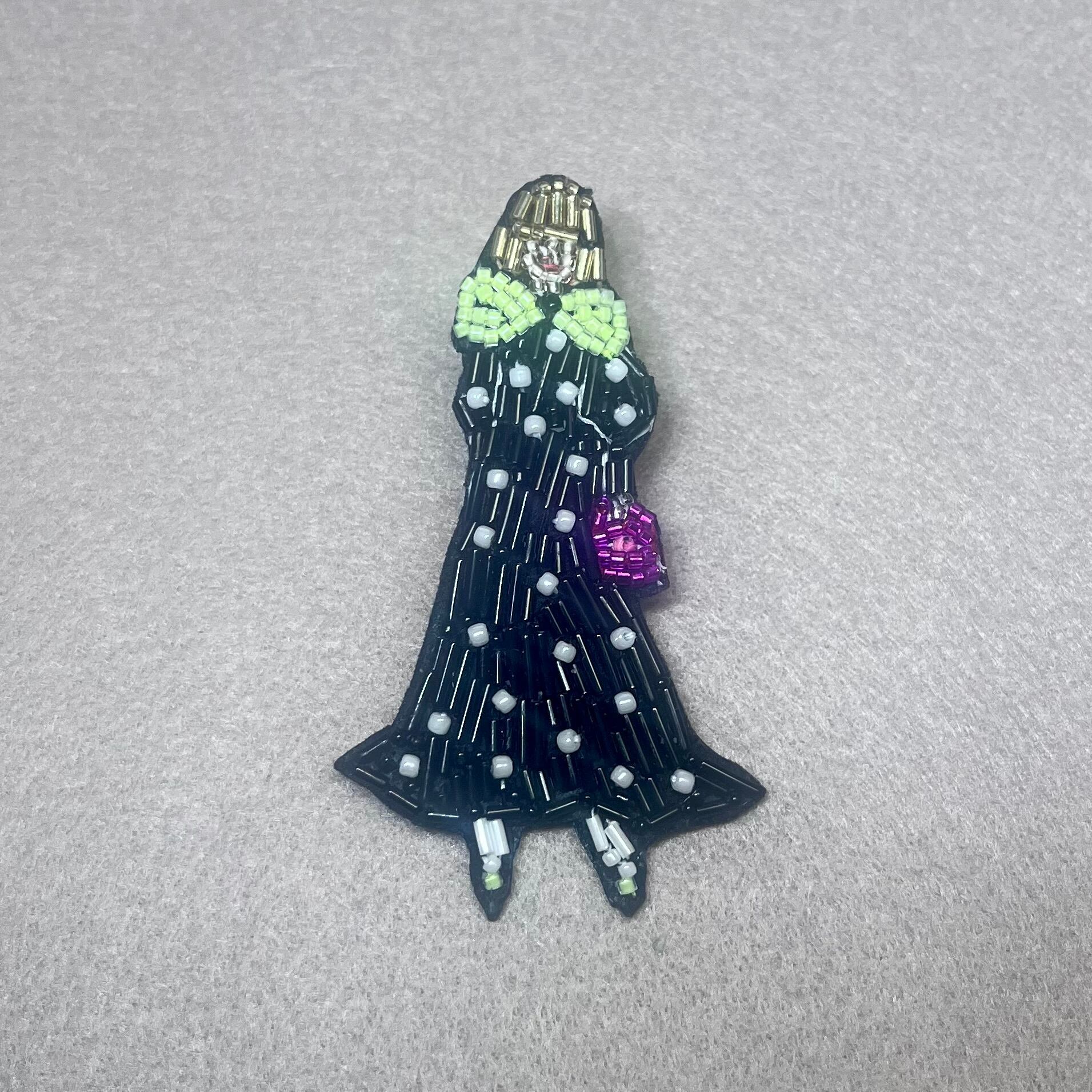 繊細なビーズ刺繍で表現したミニガールのブローチ。