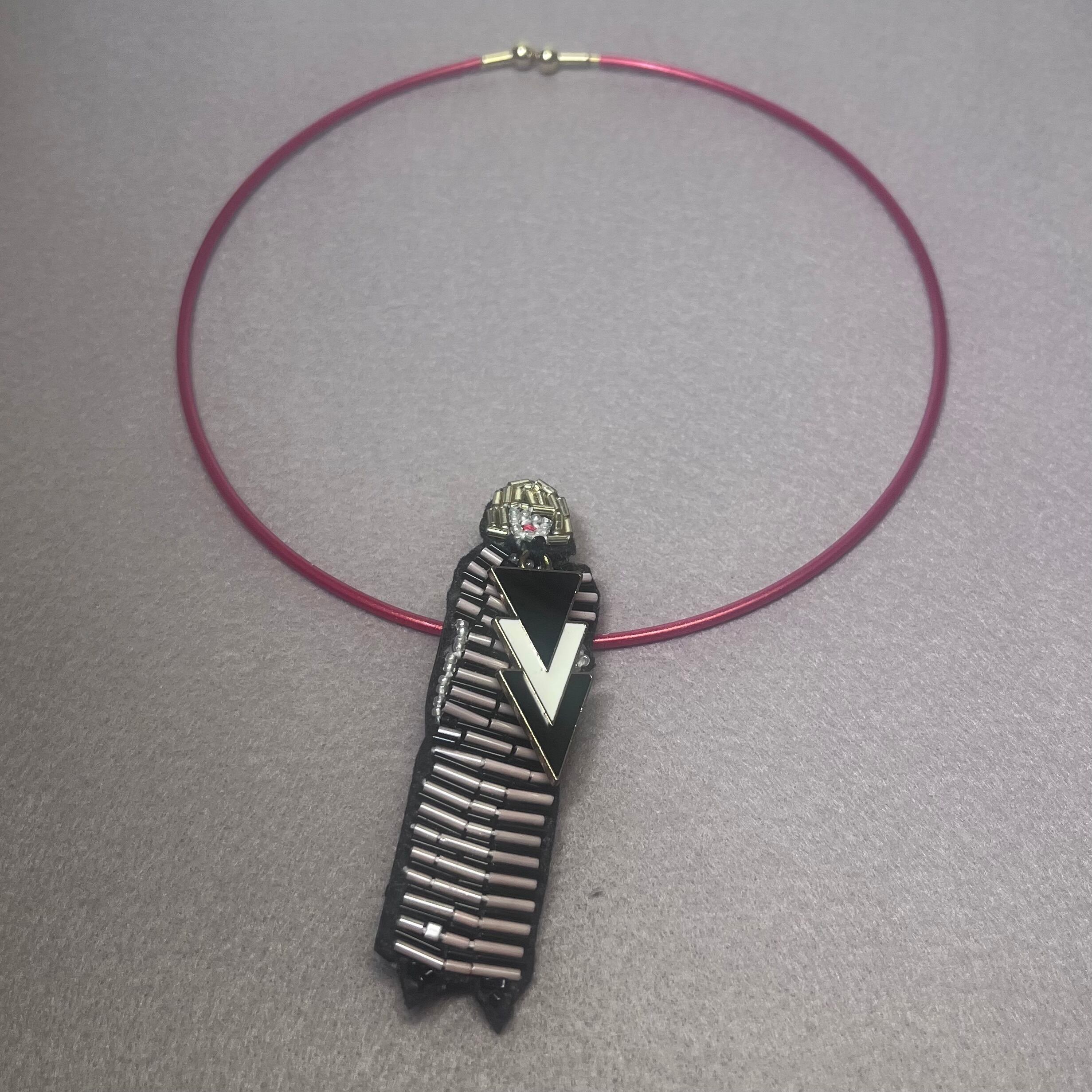 繊細なビーズ刺繍で表現したミニガールのブローチ。