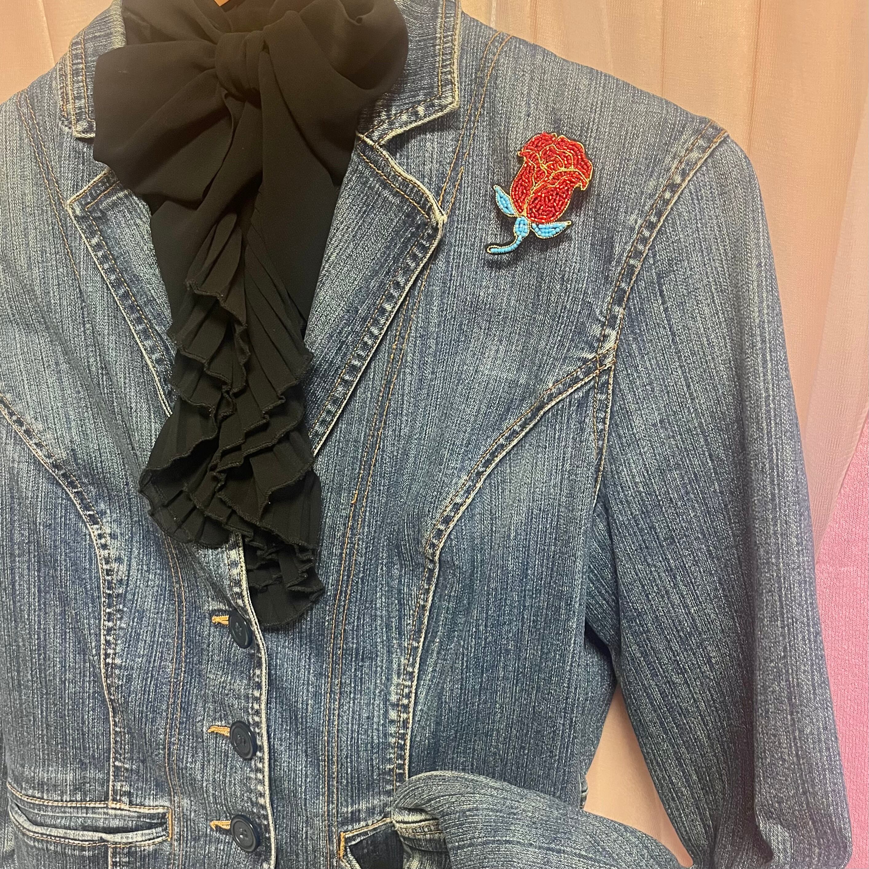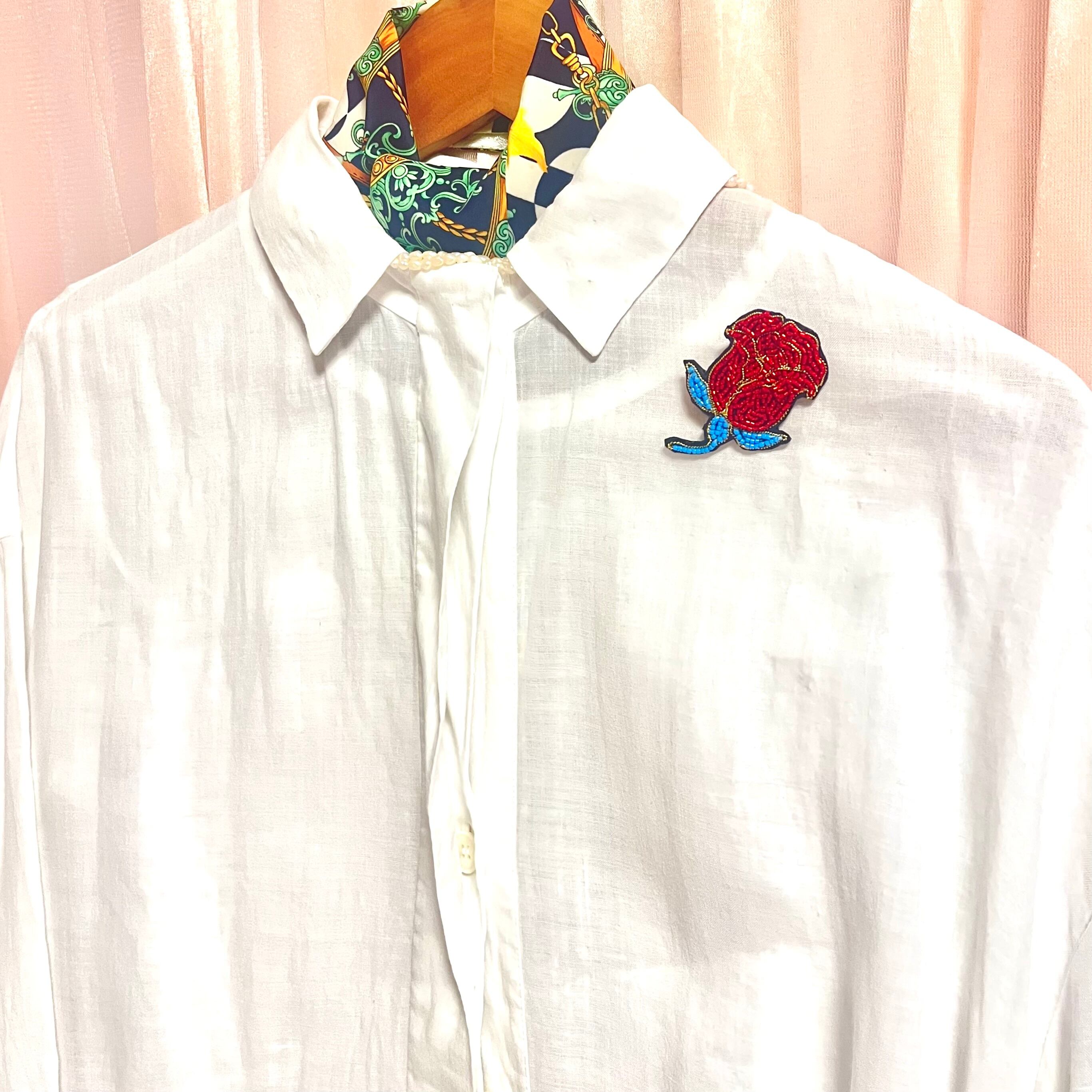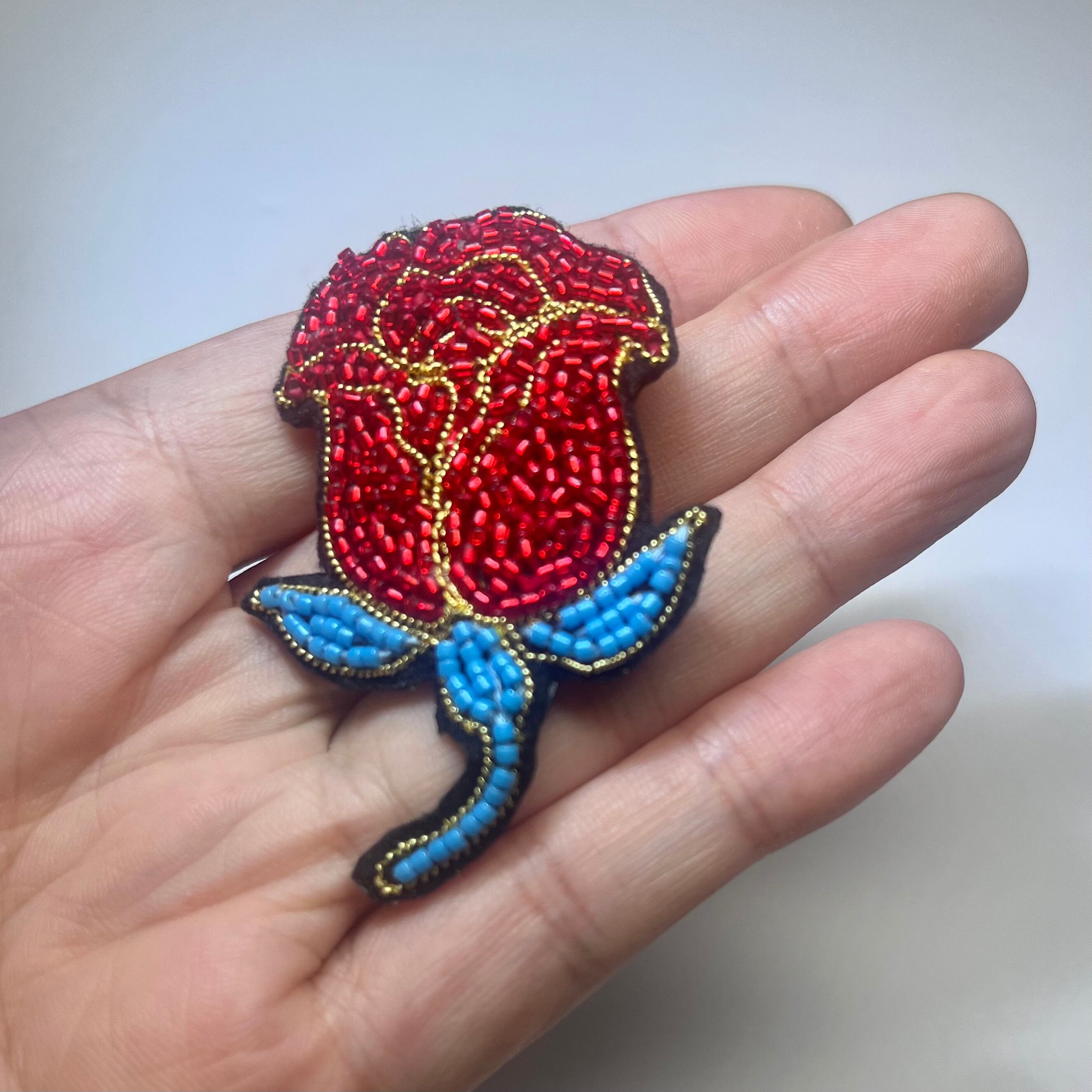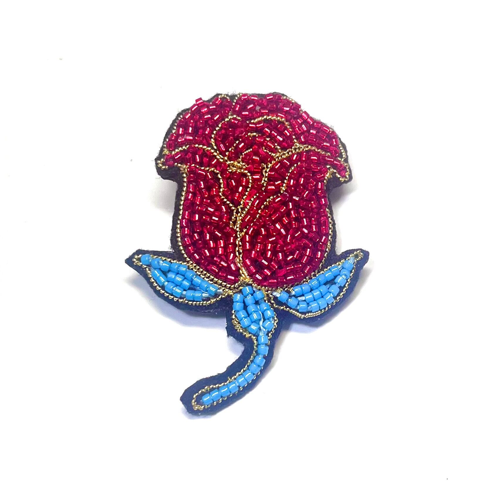 繊細なビーズ刺繍で表現した薔薇の蕾。