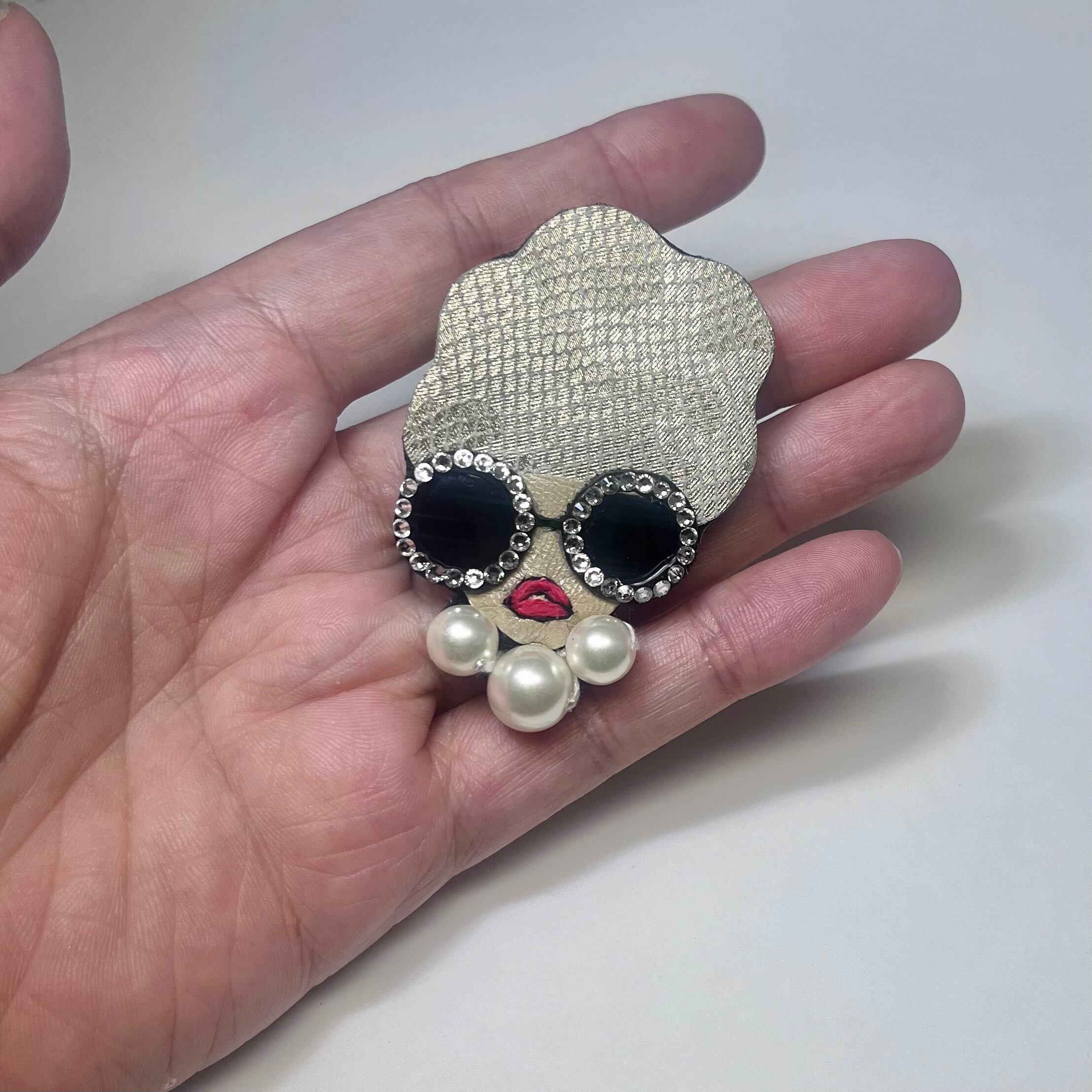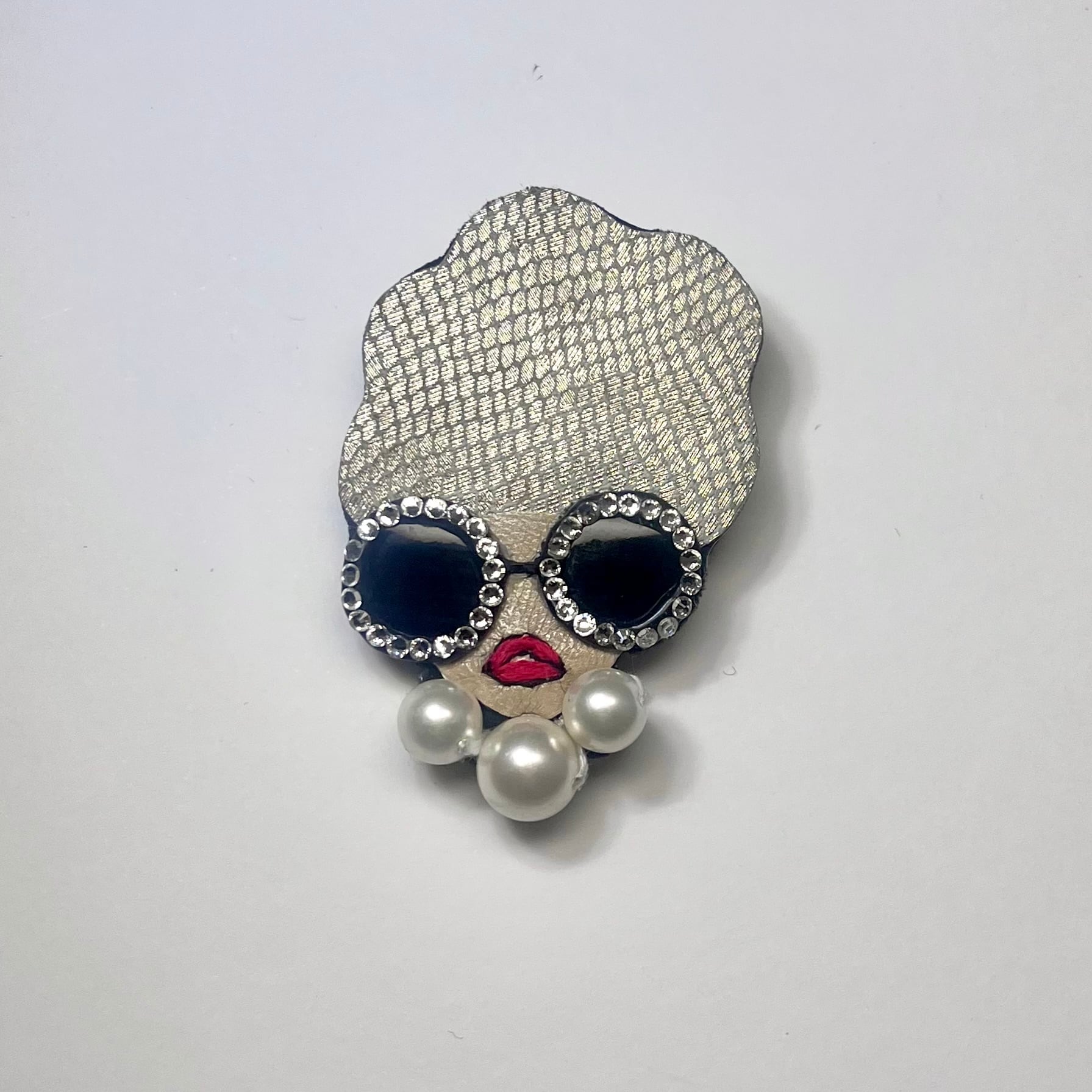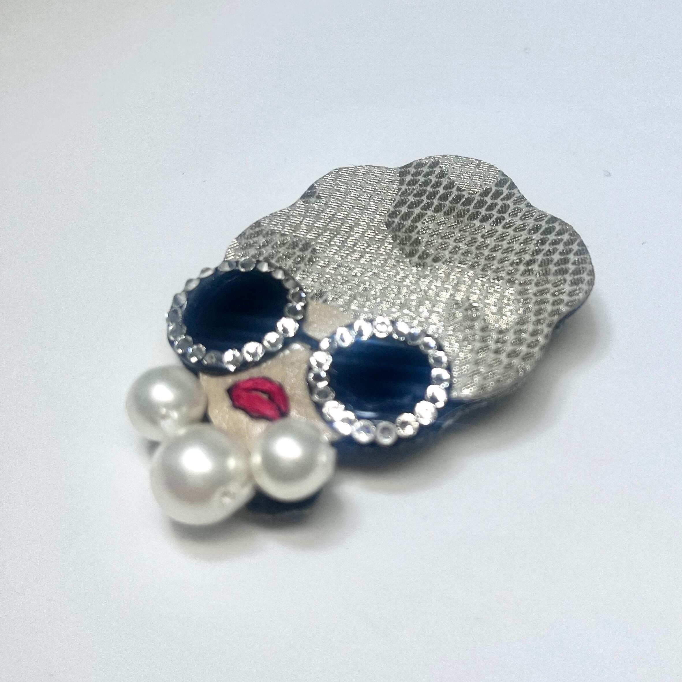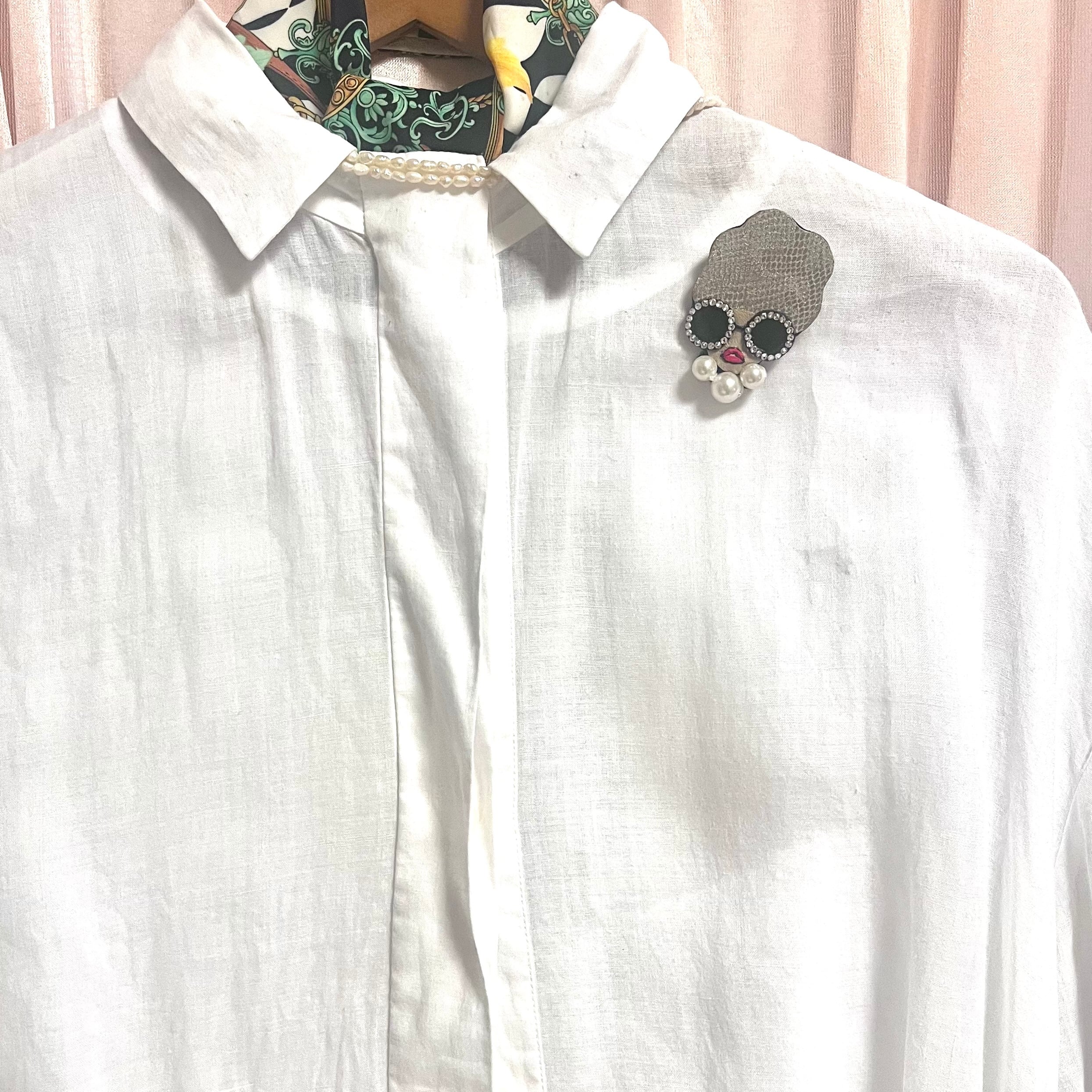 シンプルな服にもブローチひとつでインパクトある装いに。