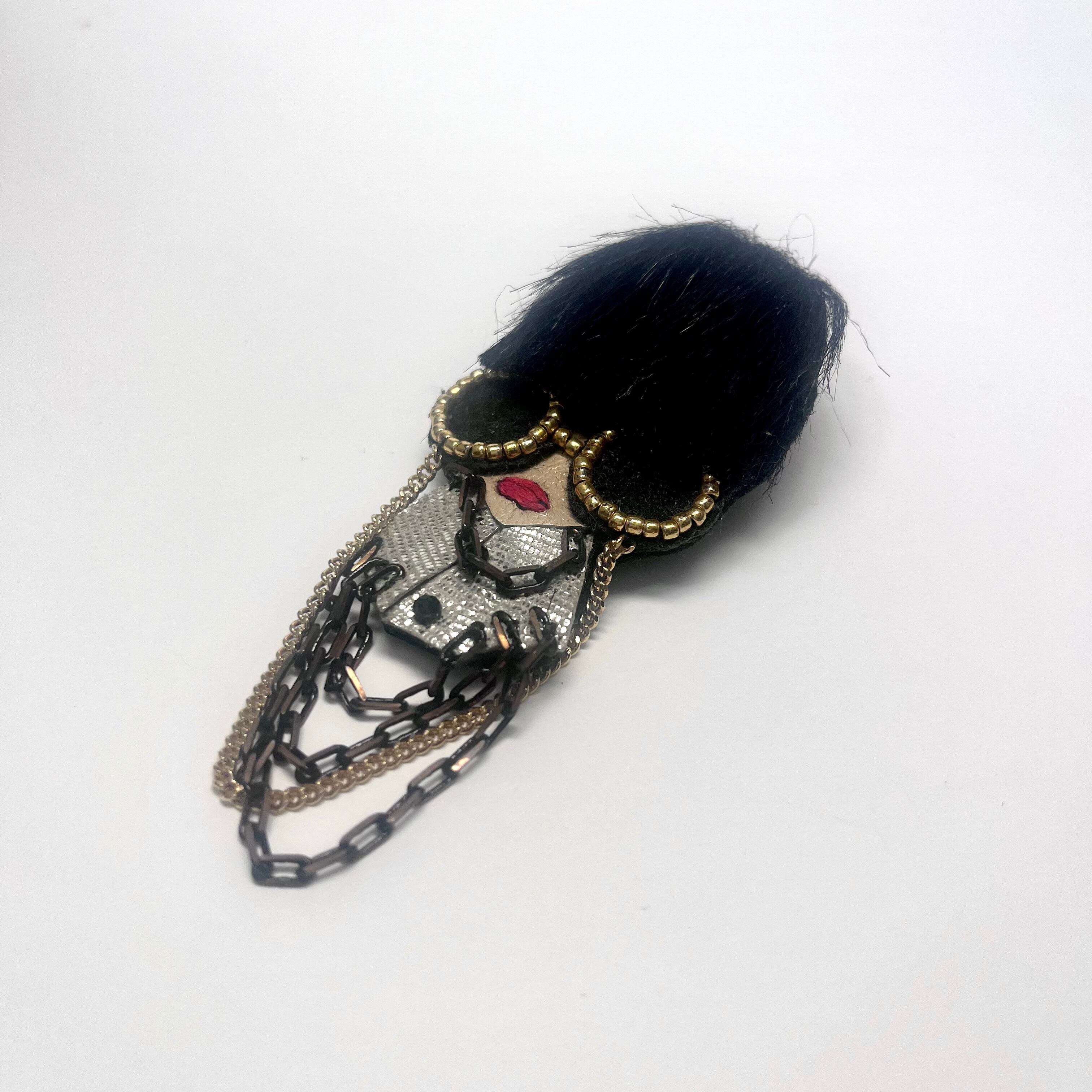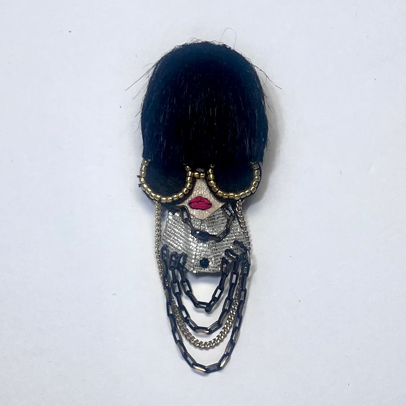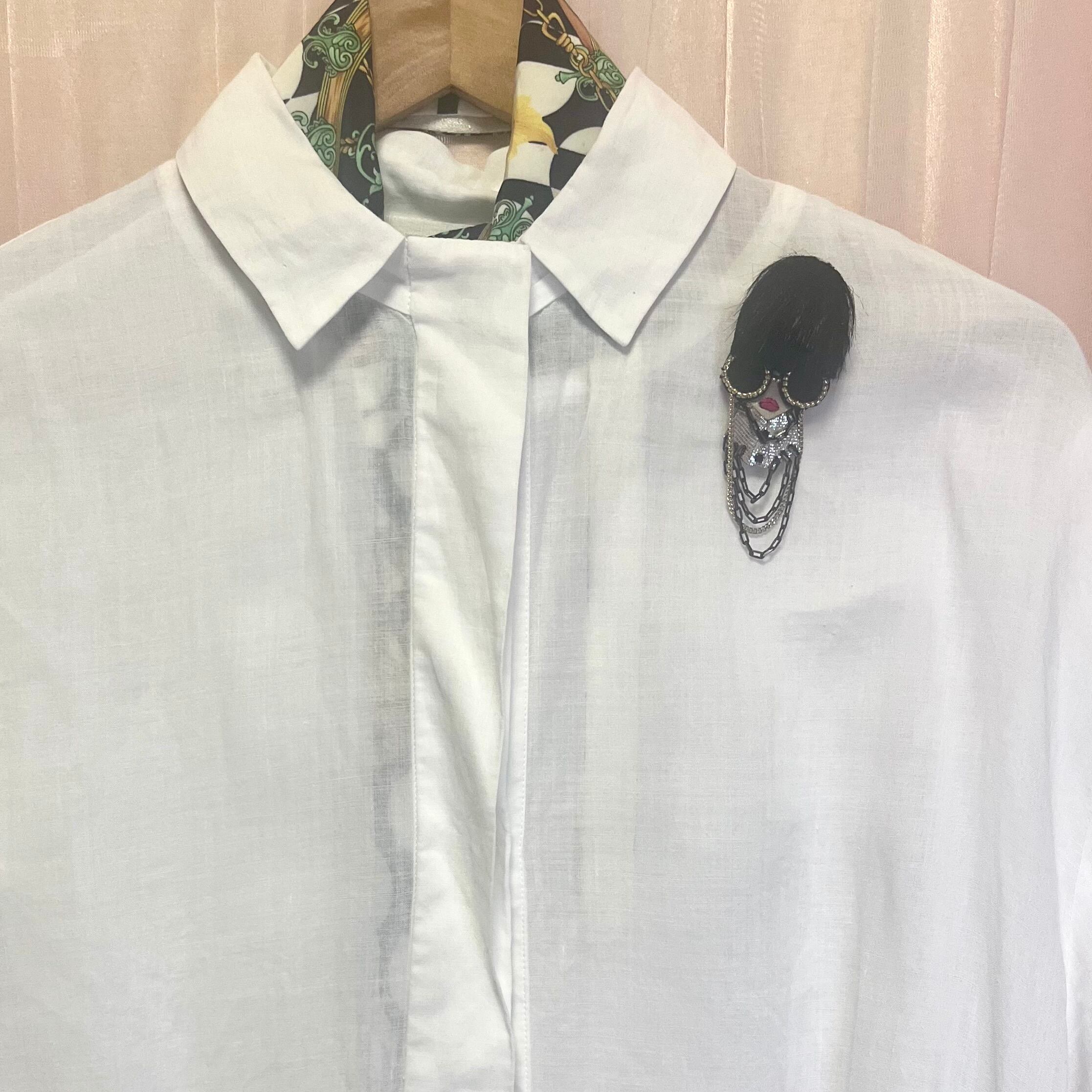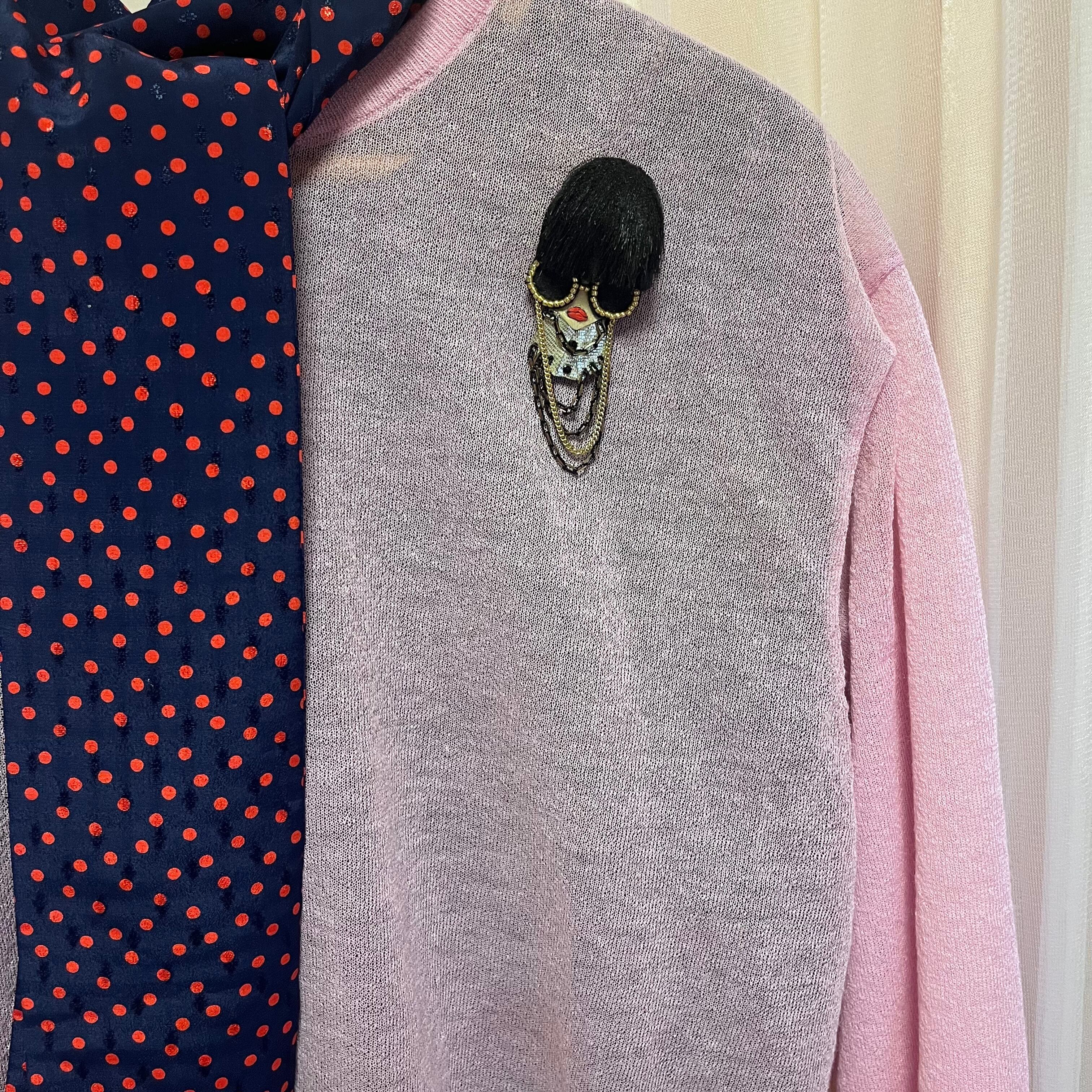 シンプルな服にもブローチひとつでインパクトある装いに。