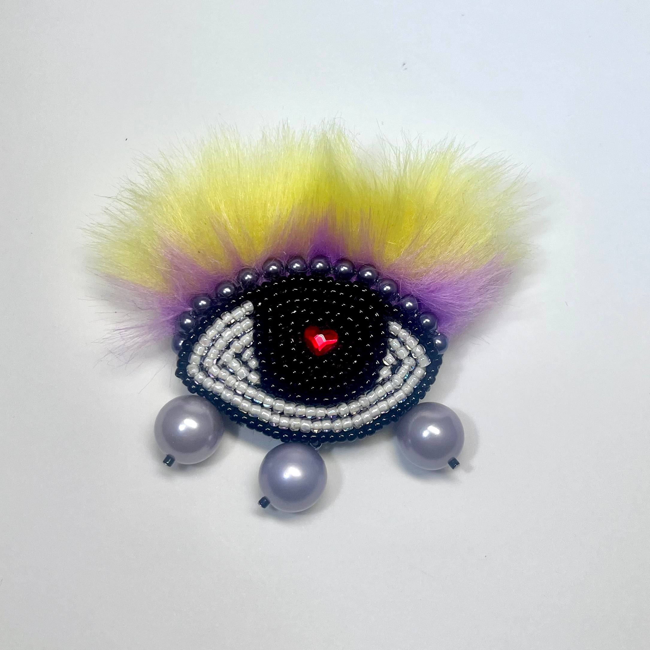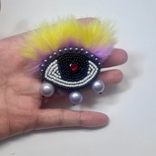 ビーズ刺繍で仕上げたeyeブローチ