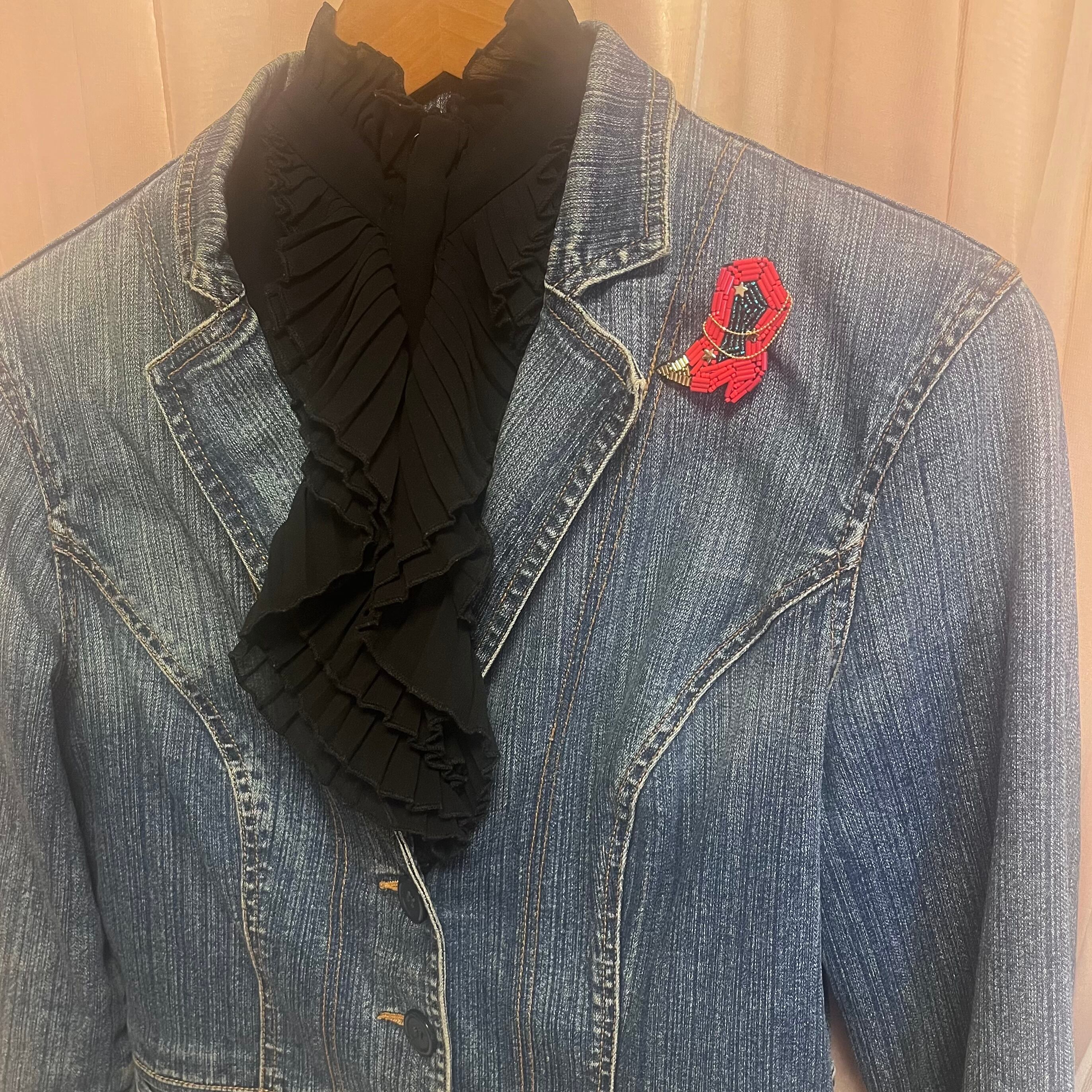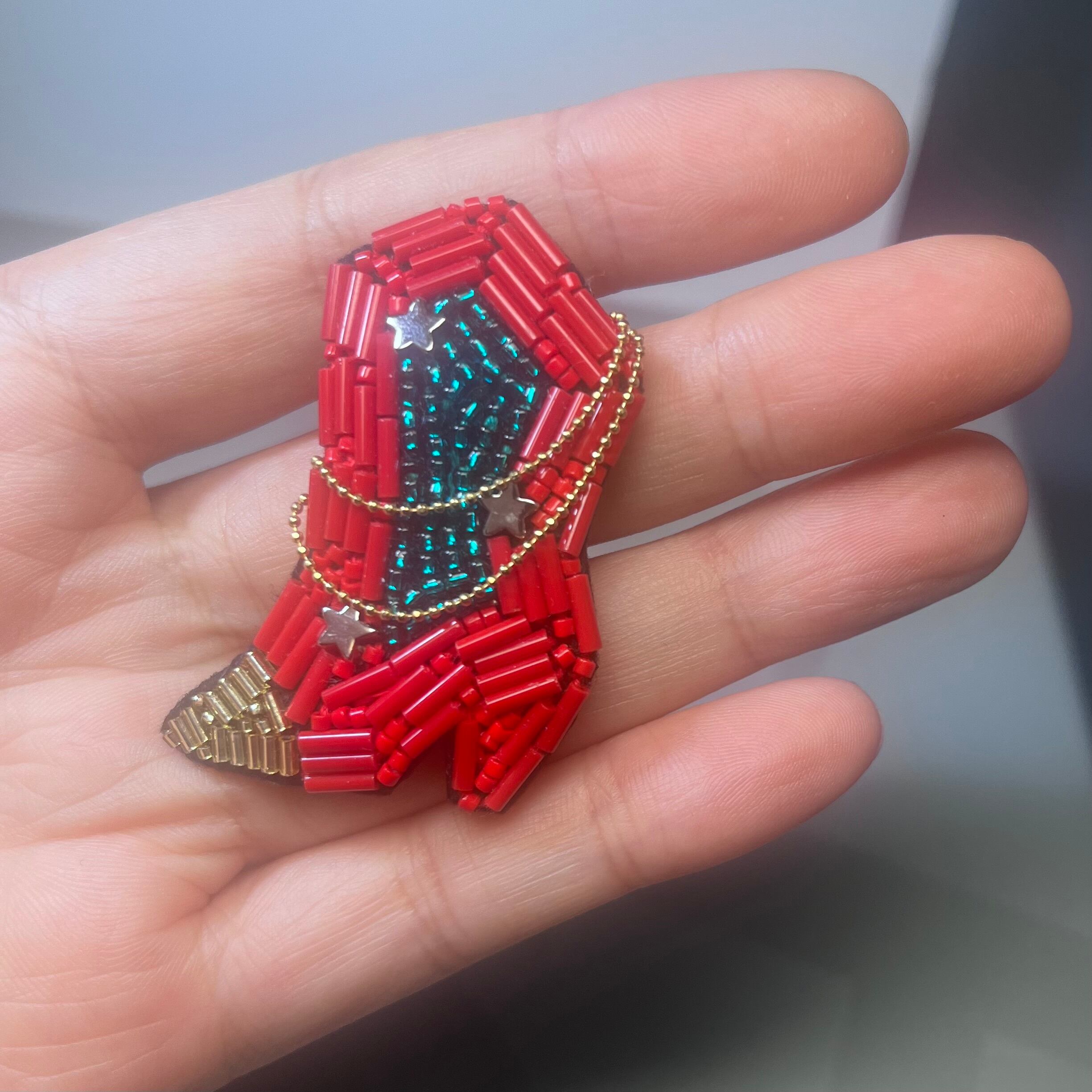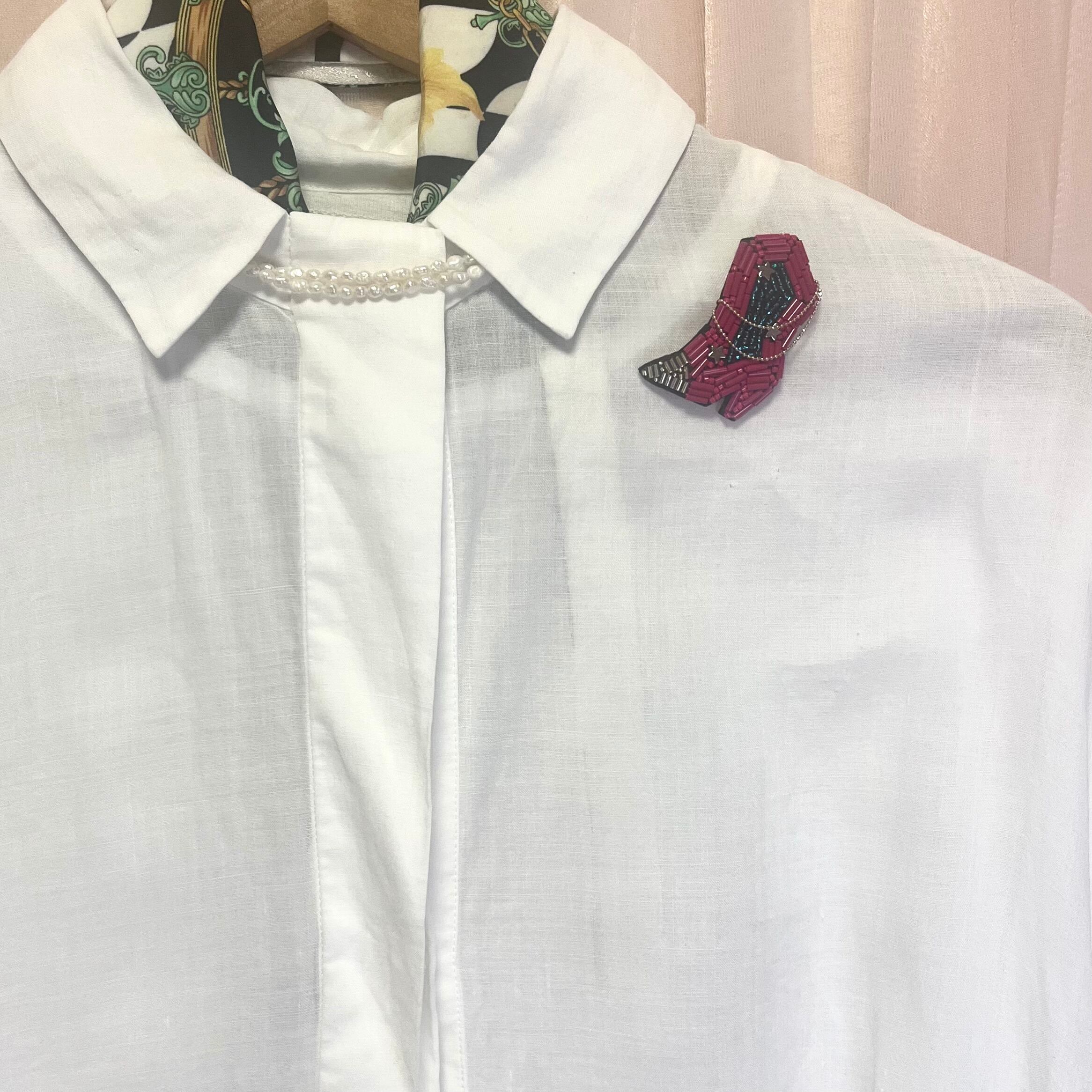 繊細なビーズ刺繍で表現したブーツモチーフのブローチ。