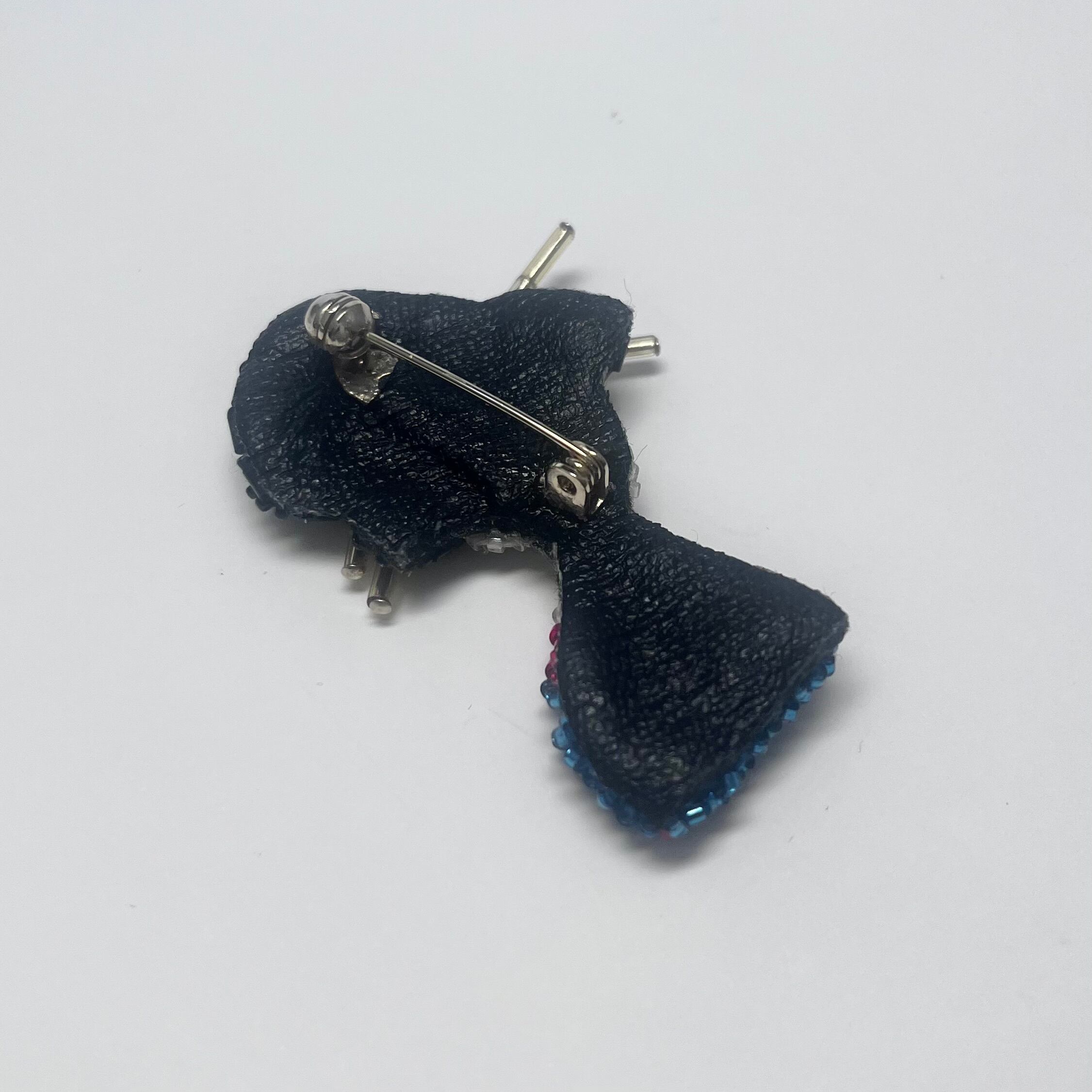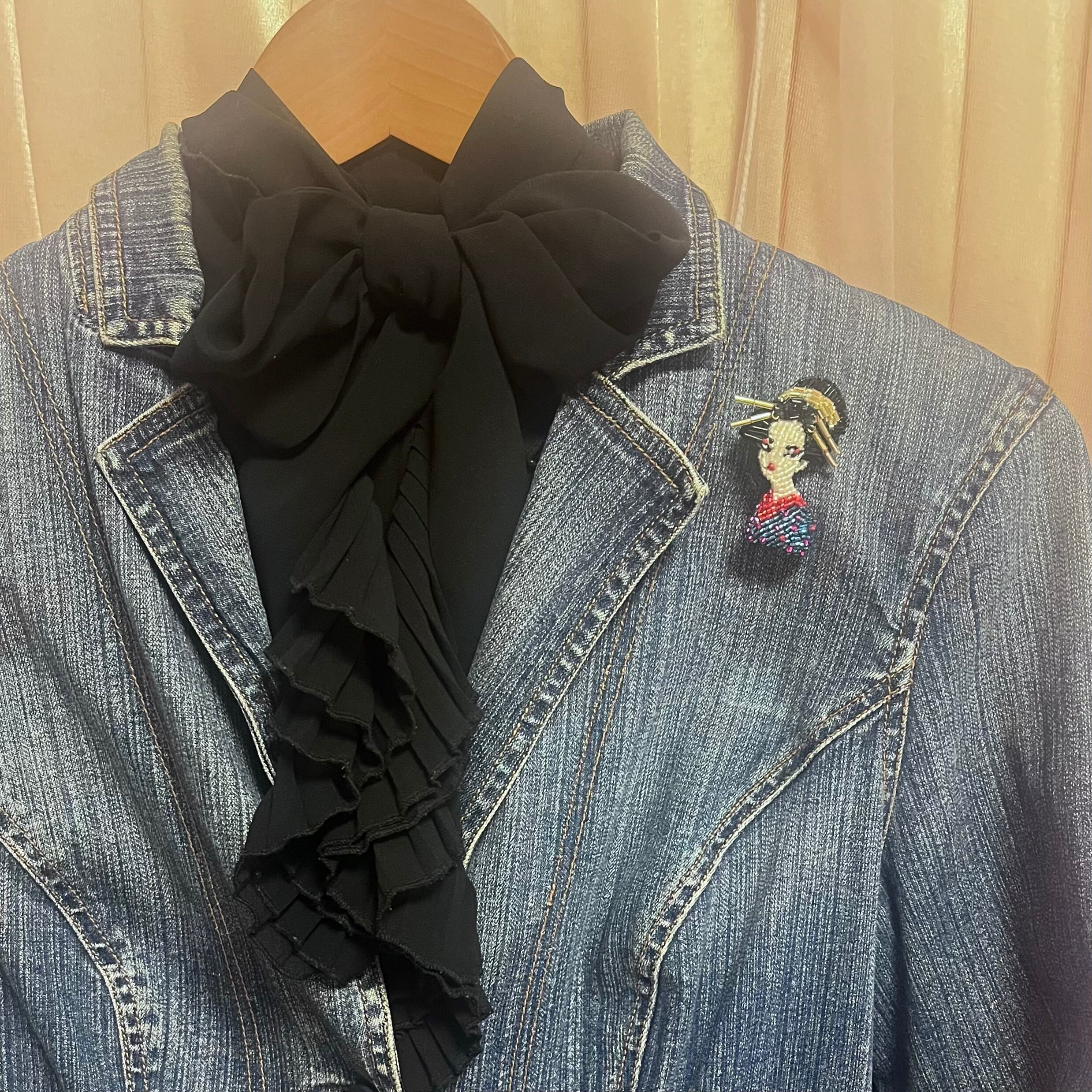 繊細なビーズ刺繍で表現したおいらんデザインのビーズブローチ。