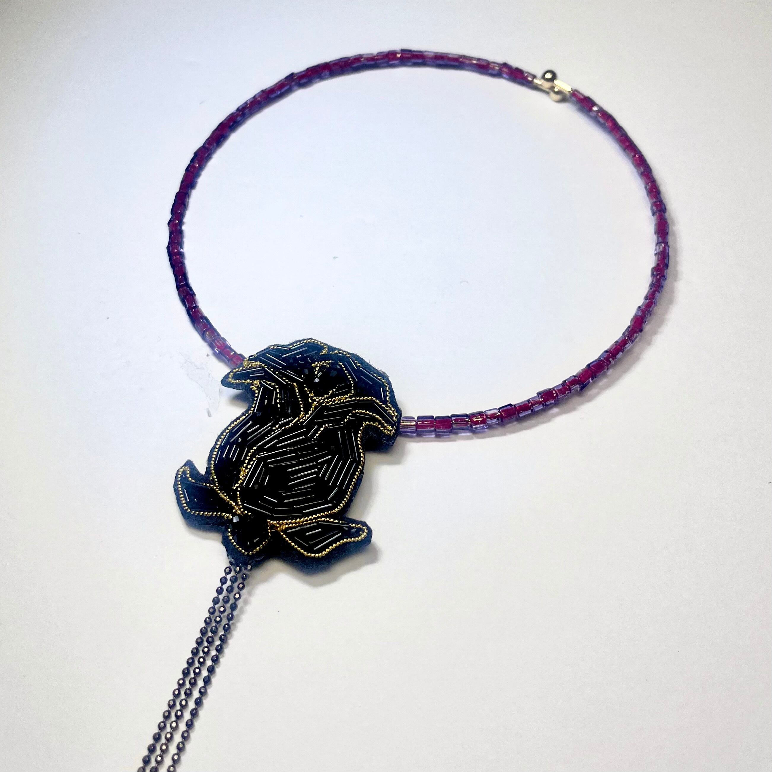 繊細なビーズ刺繍で表現した黒薔薇。