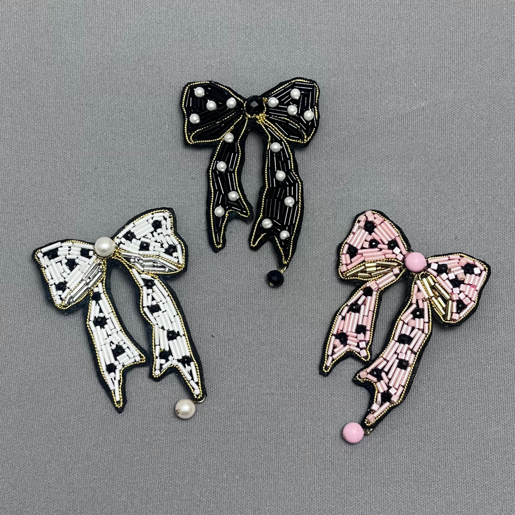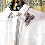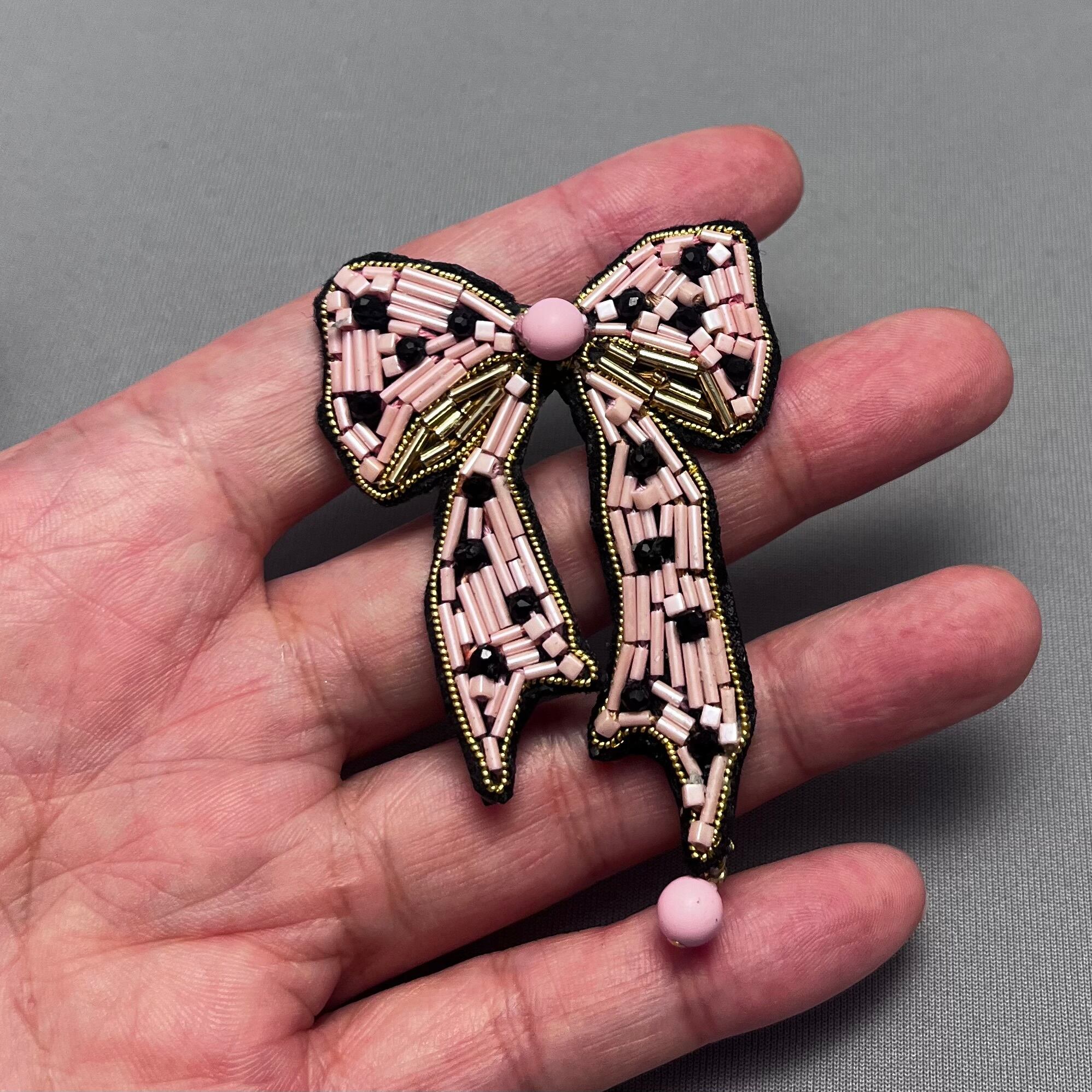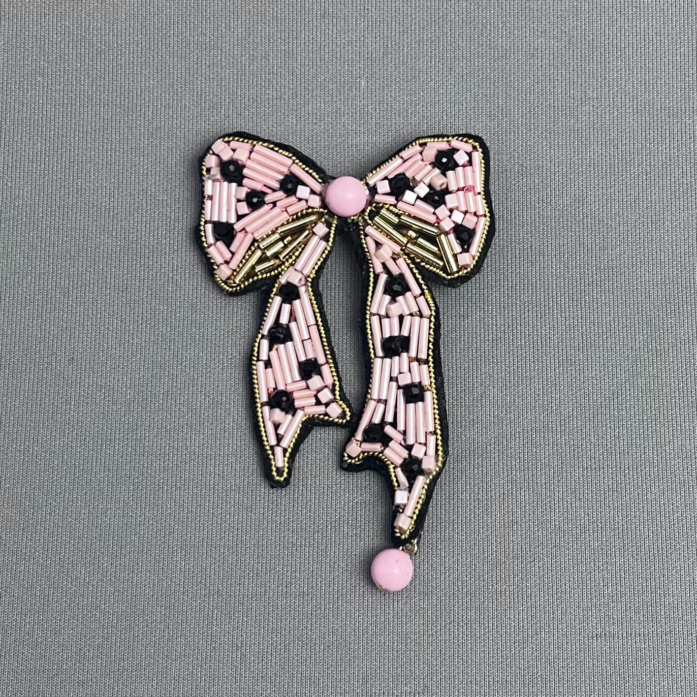 繊細なビーズ刺繍で表現したリボンブローチ。