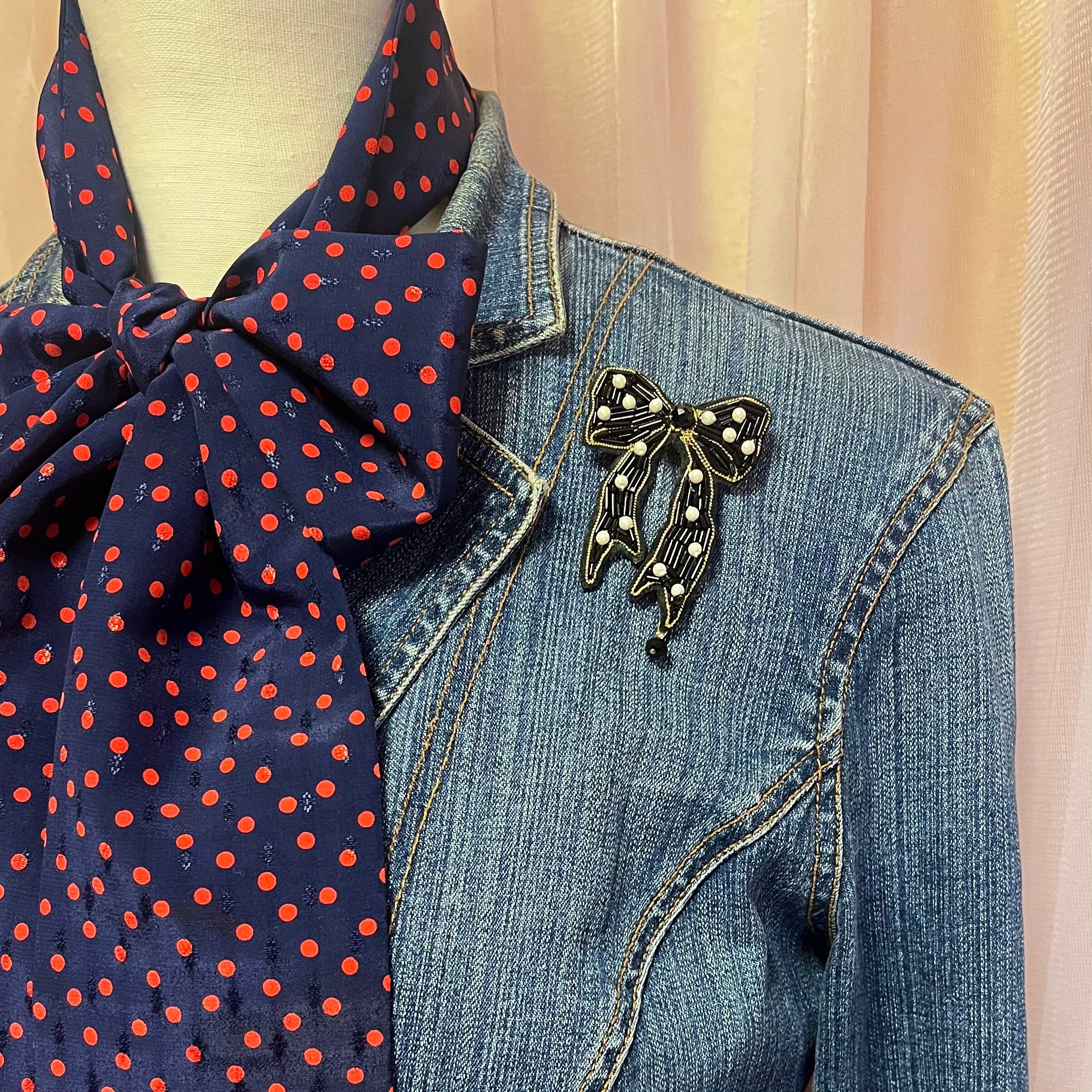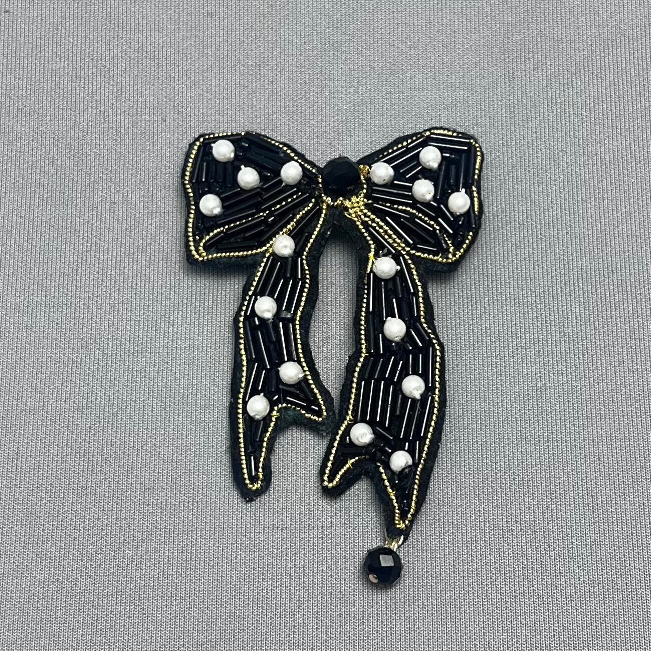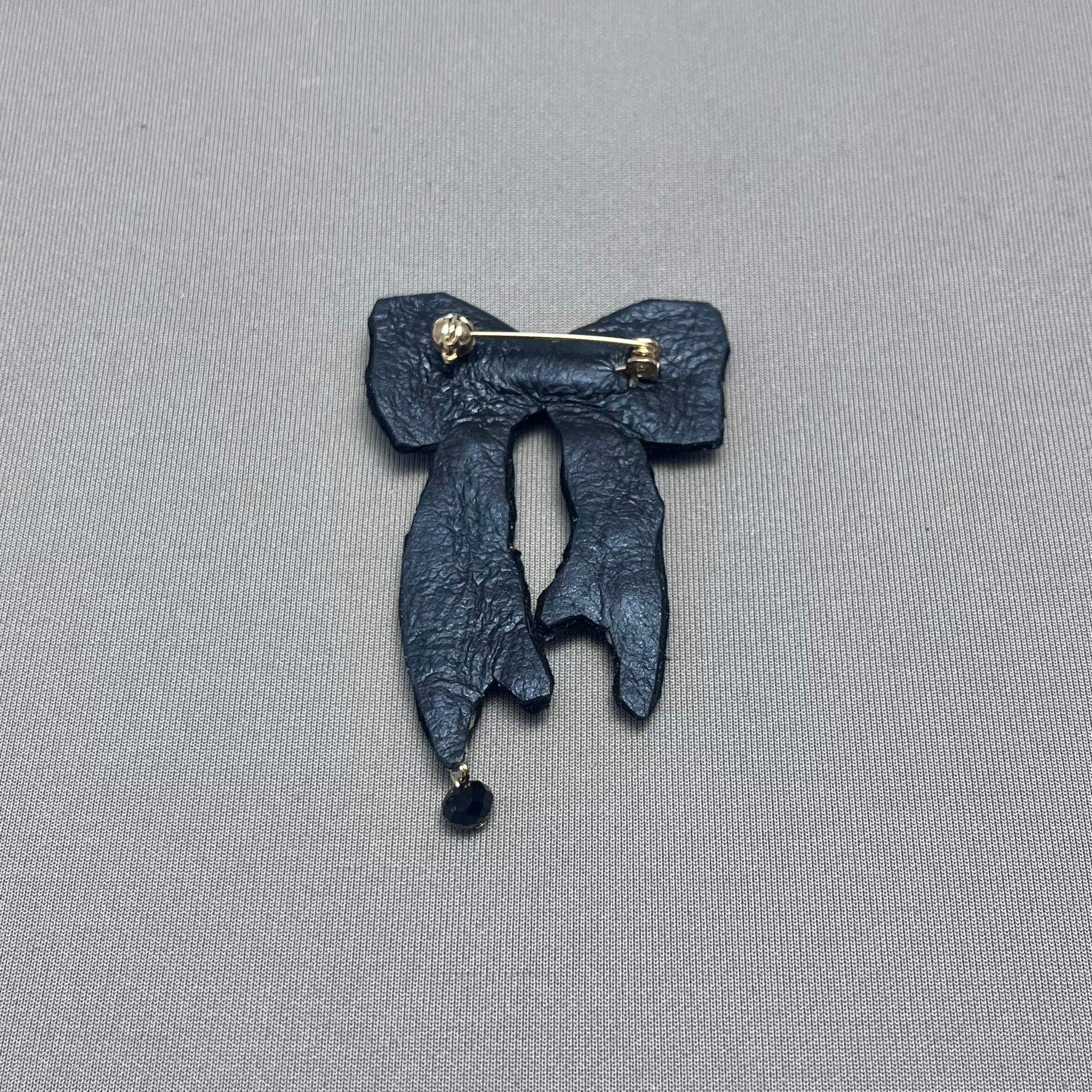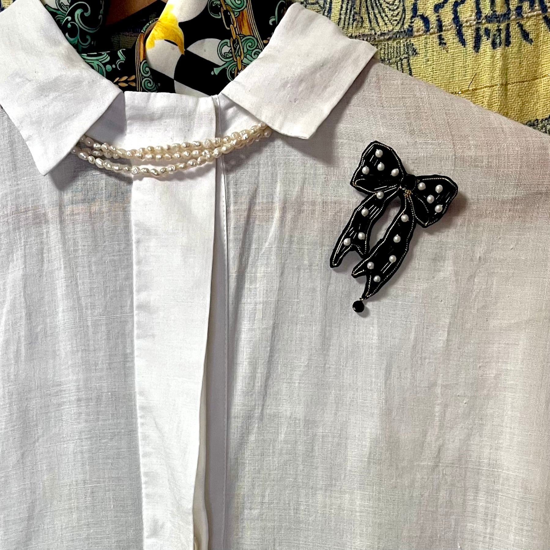 繊細なビーズ刺繍で表現したリボンブローチ。