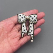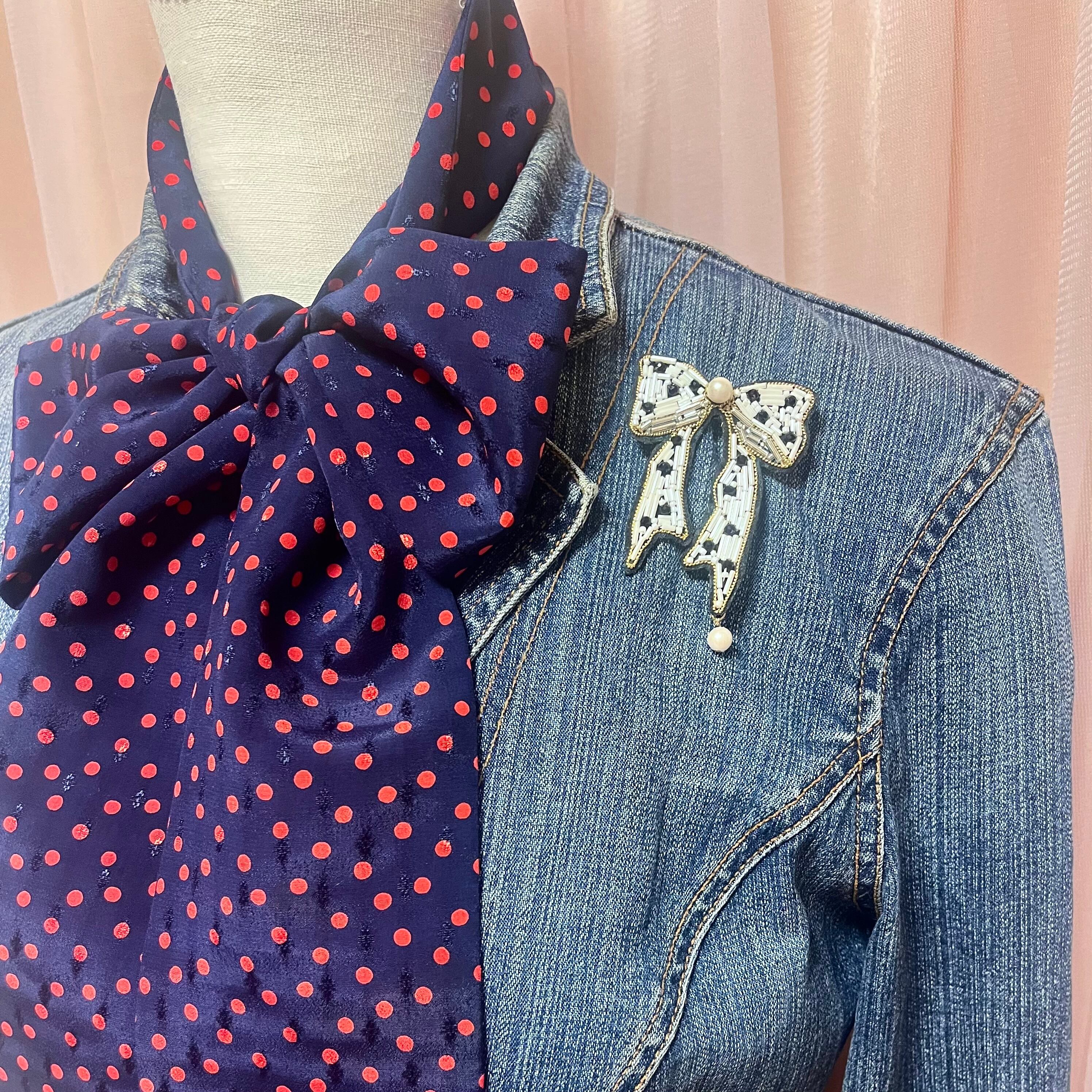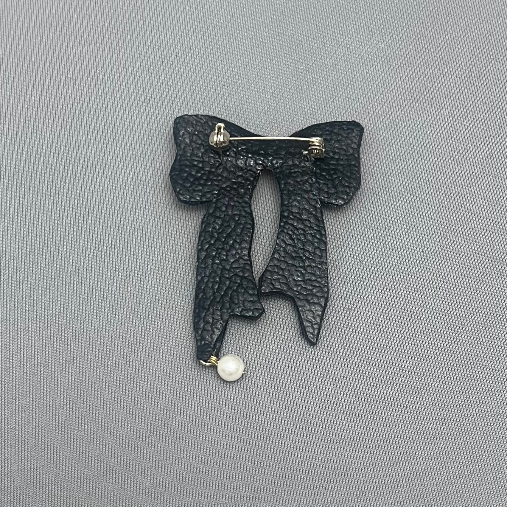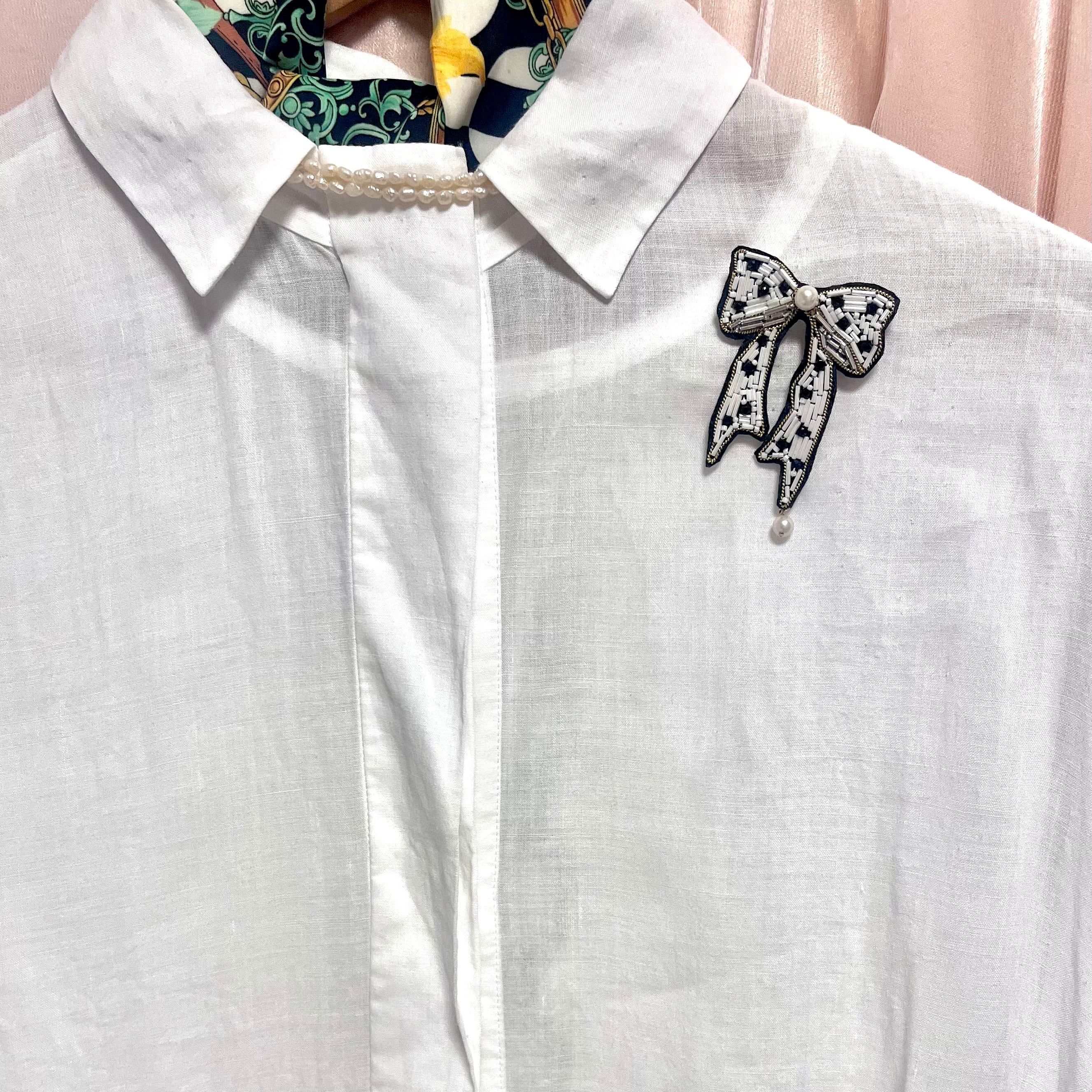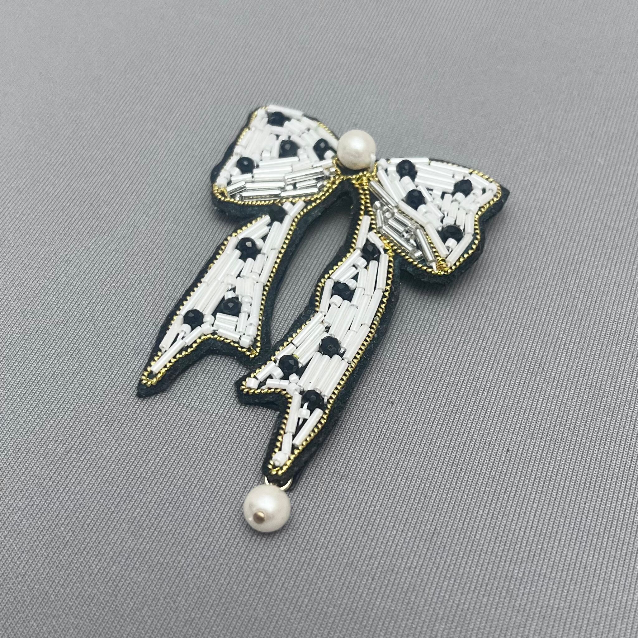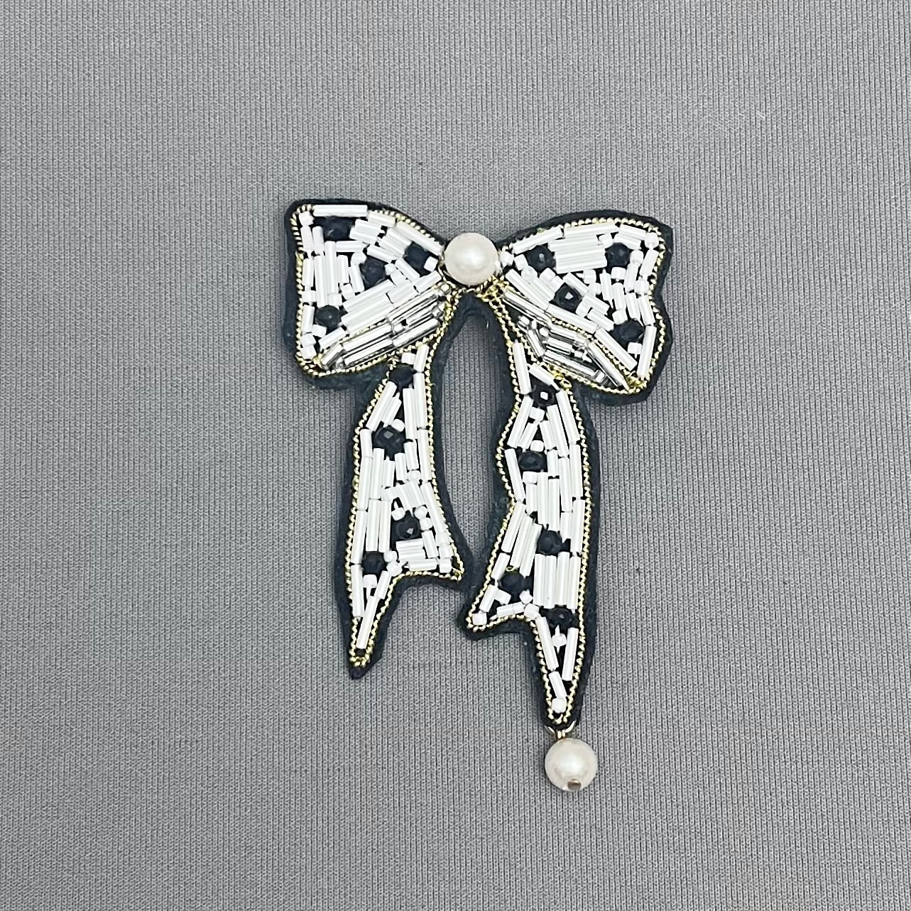 繊細なビーズ刺繍で表現したリボンブローチ。