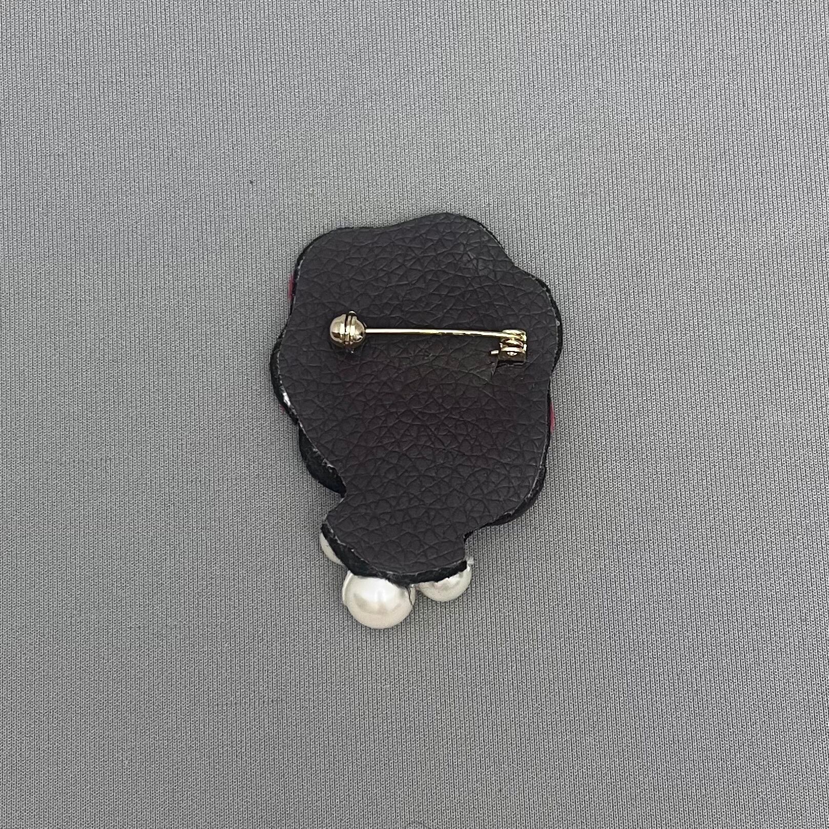 革に刺繍やコラージュで仕上げたブローチ。