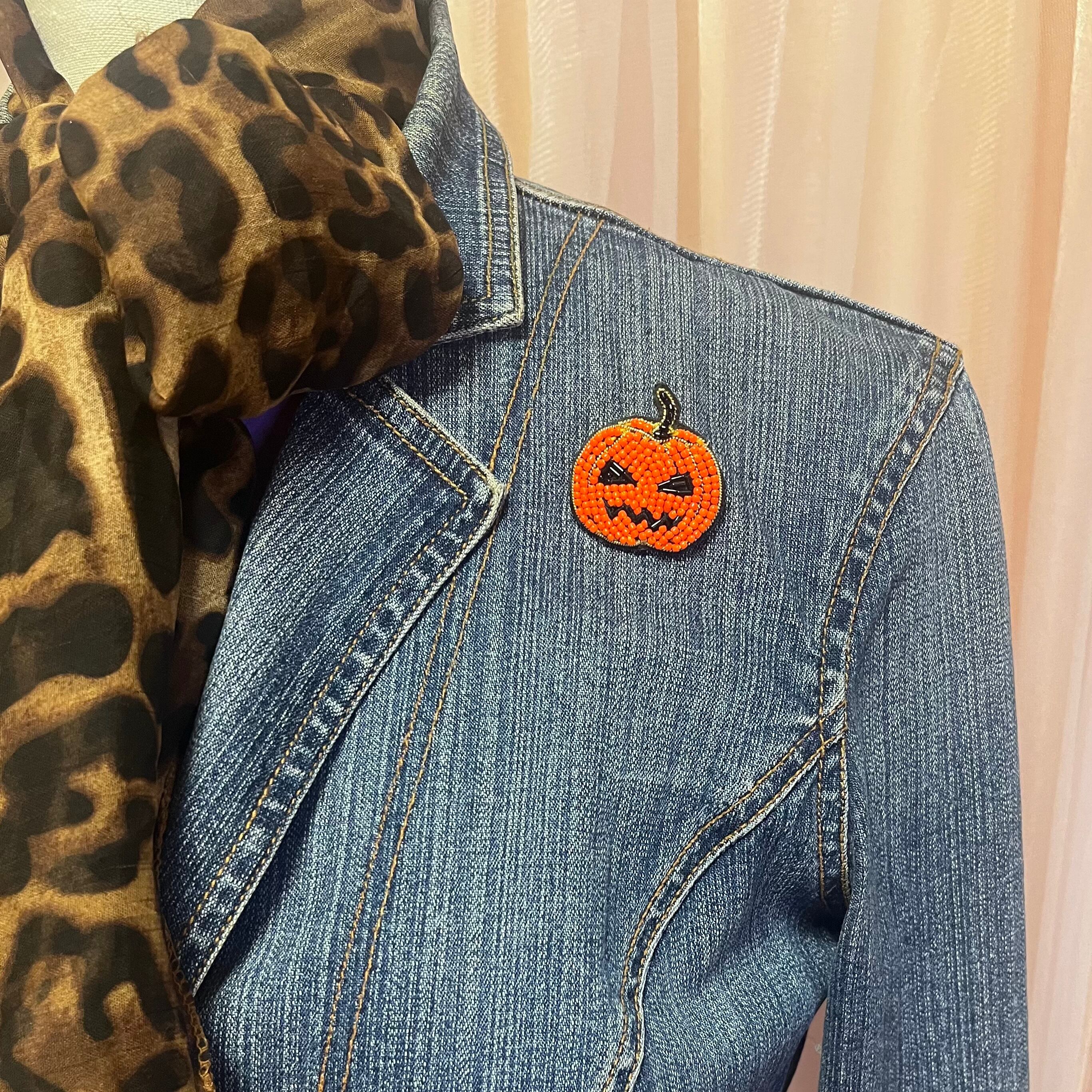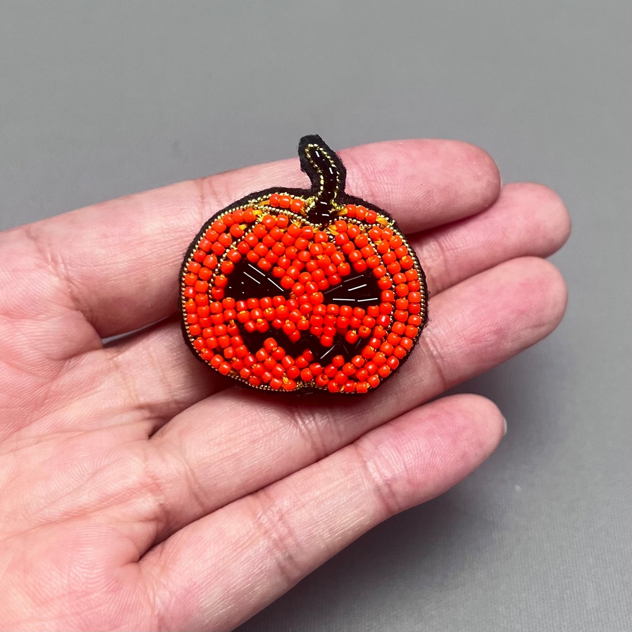 繊細なビーズ刺繍で表現したジャック・オー・ランタンブローチ。