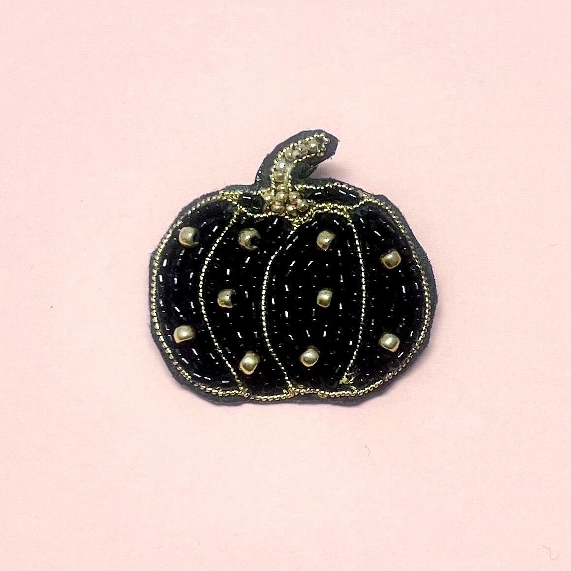繊細なビーズ刺繍で表現したかぼちゃブローチ。