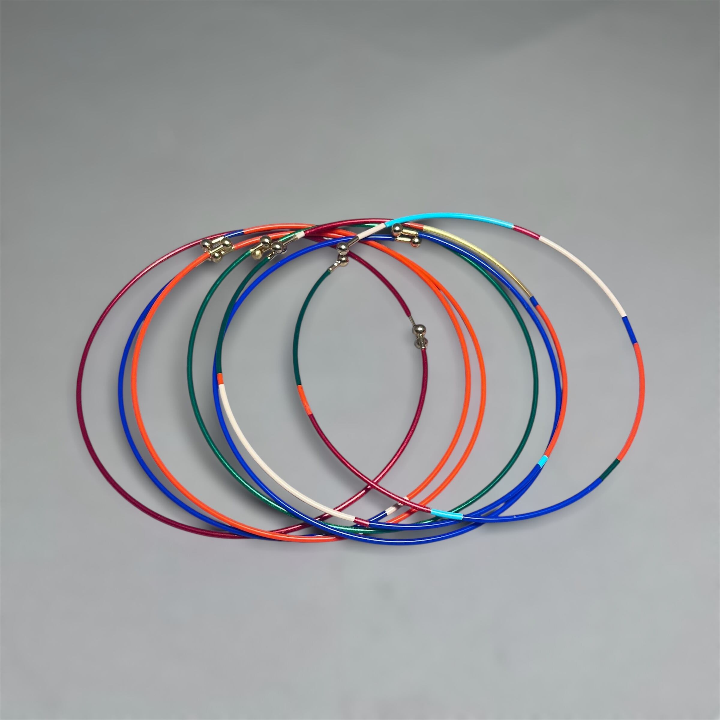 金属製の形状記憶チョーカーにビニールチューブを通したチョーカーです。