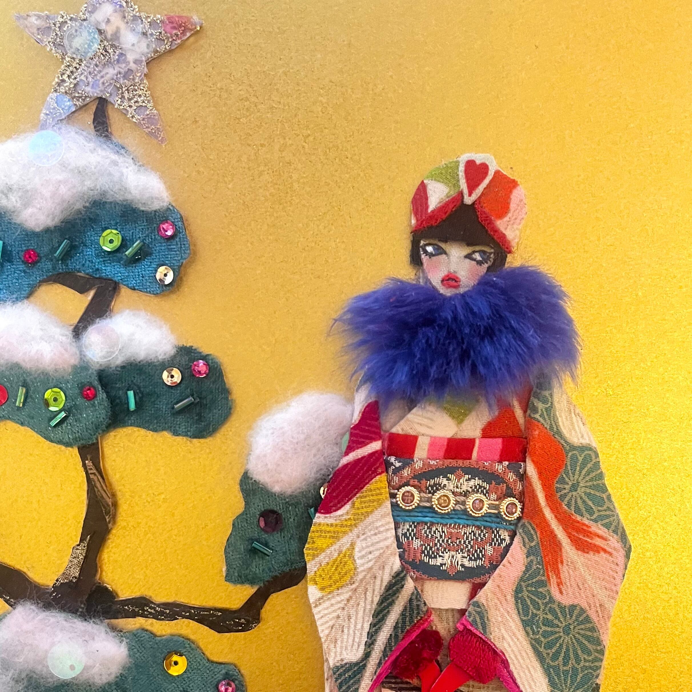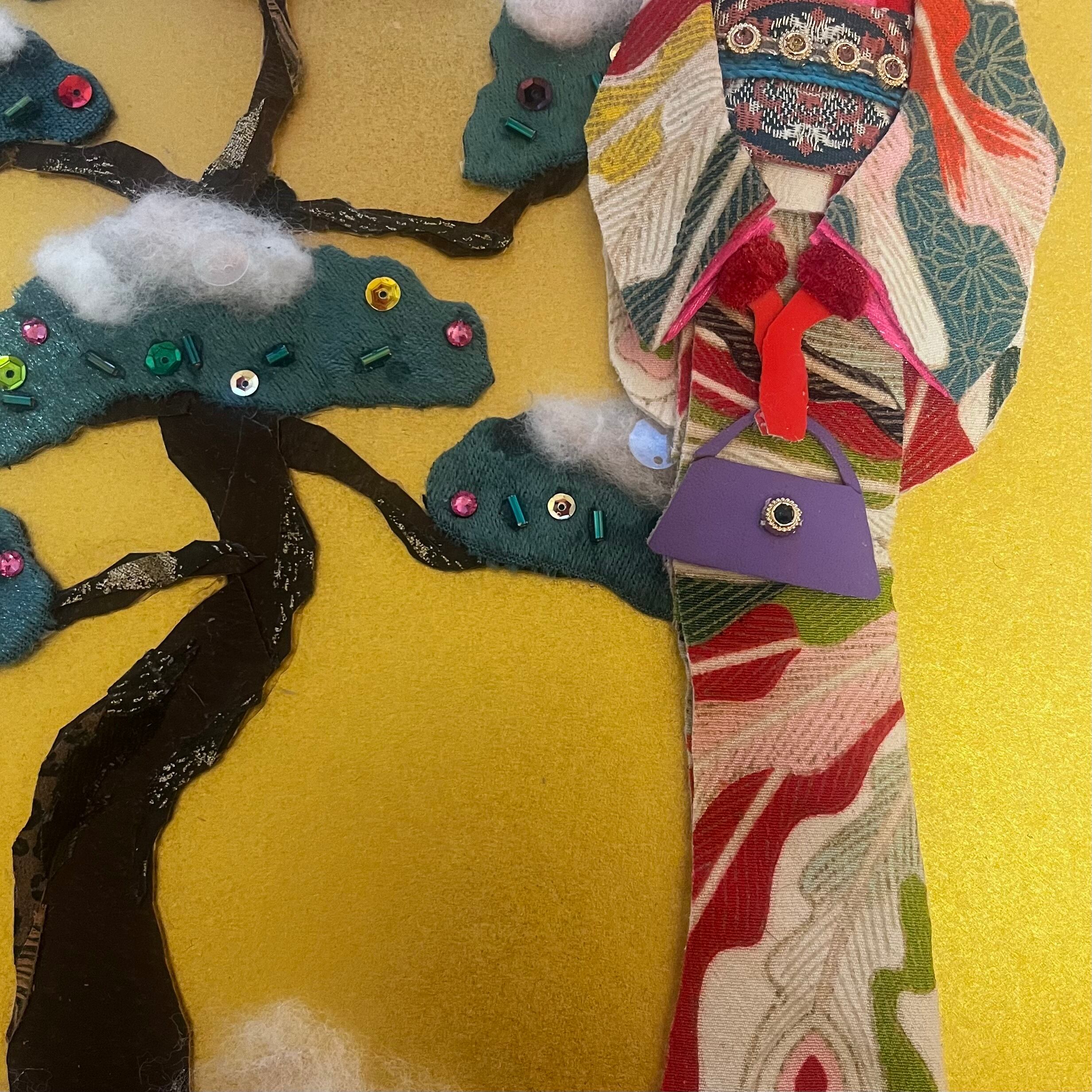 素材: 着物端切れ、革、ビーズ、スパンコール