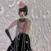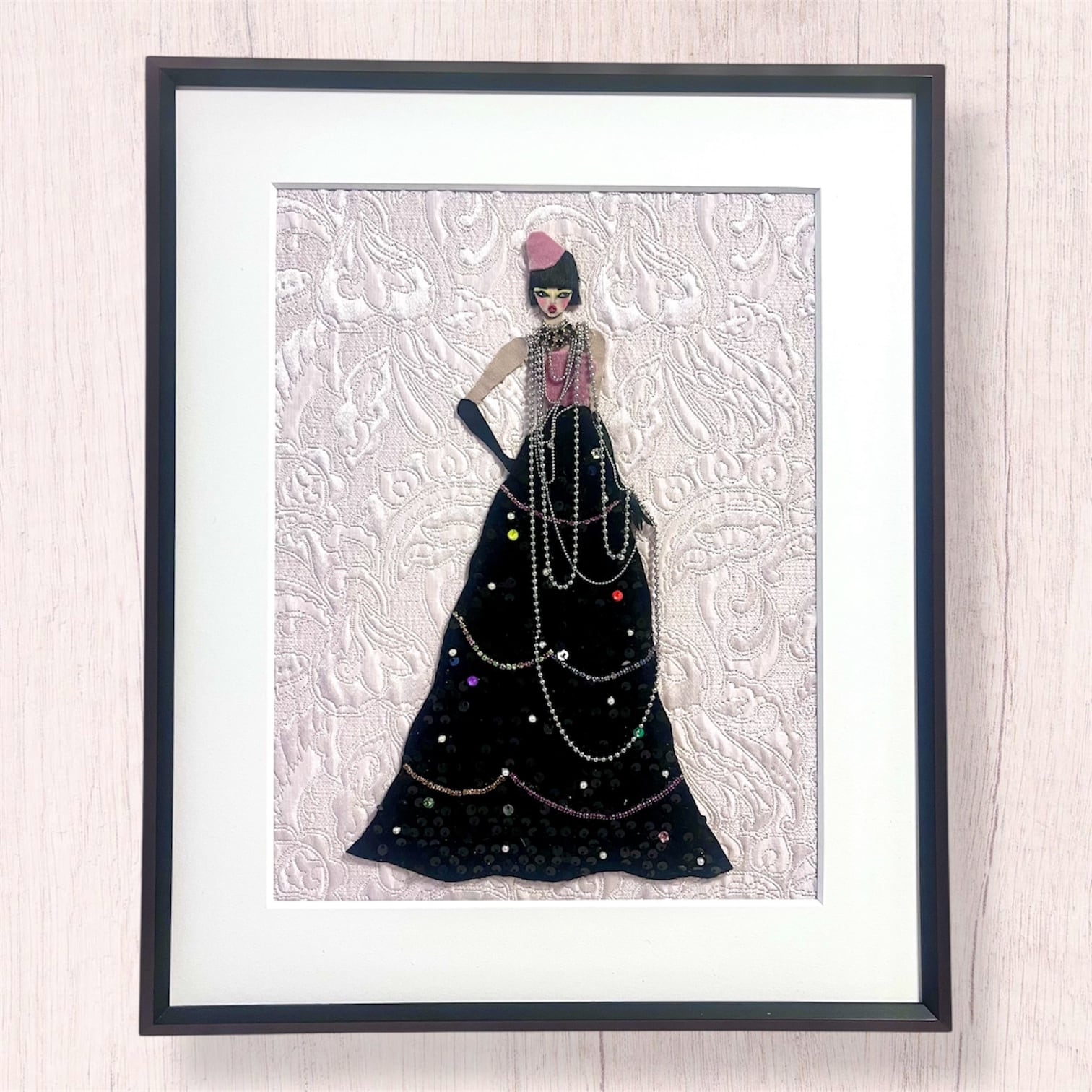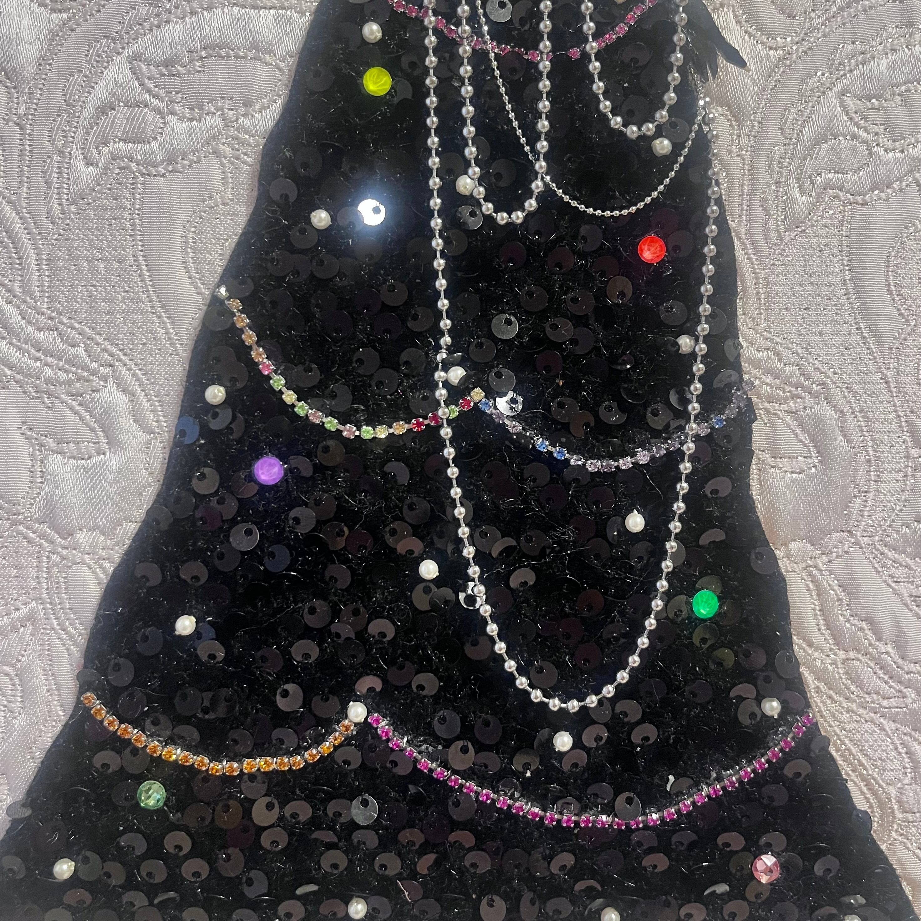 スパンコールを施した生地に、カラフルなビジューやチェーンをプラスして、ツリーのようなシルエットを表現。