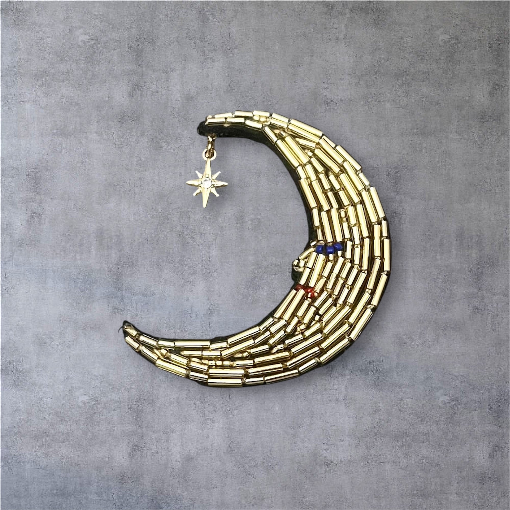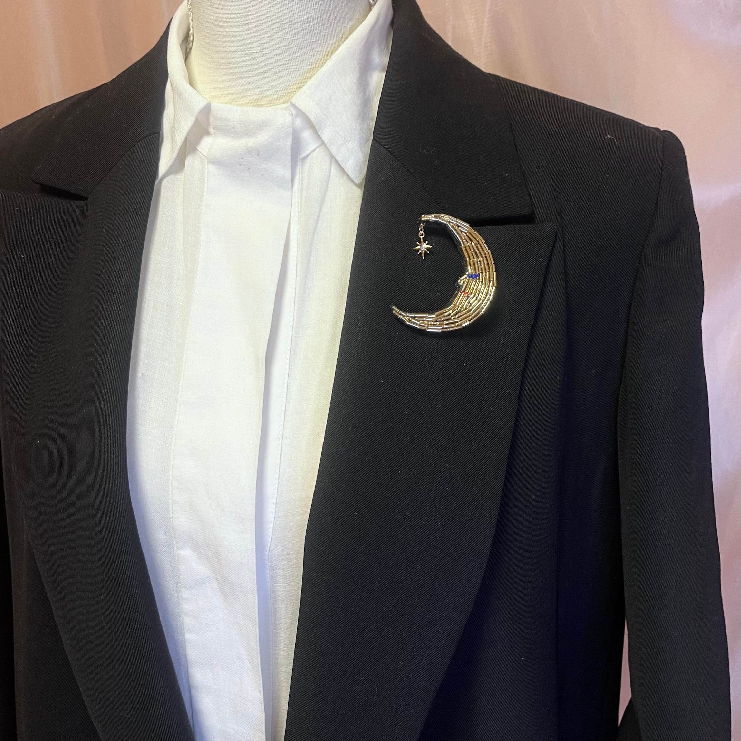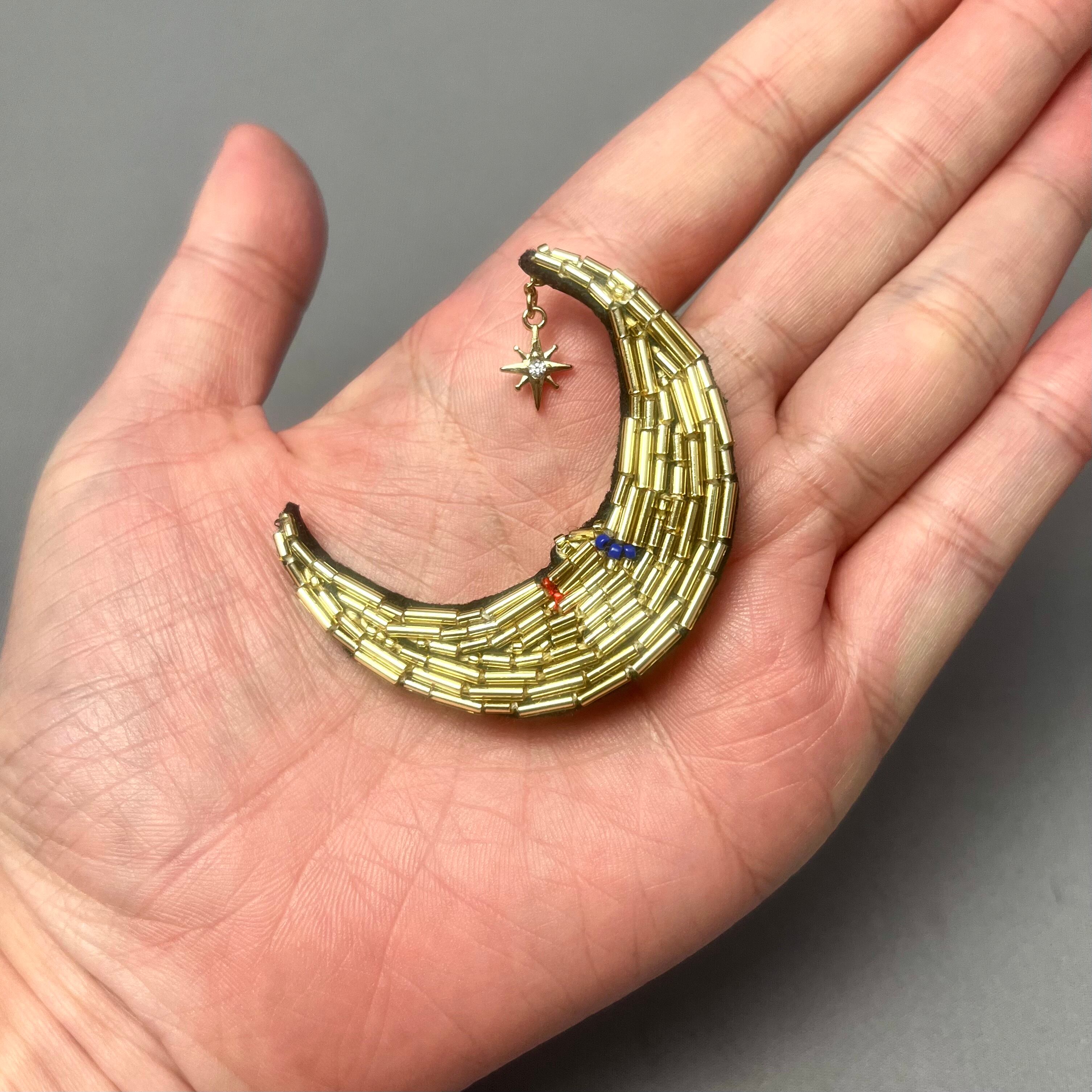 三日月をビーズ刺繍で表現しました。