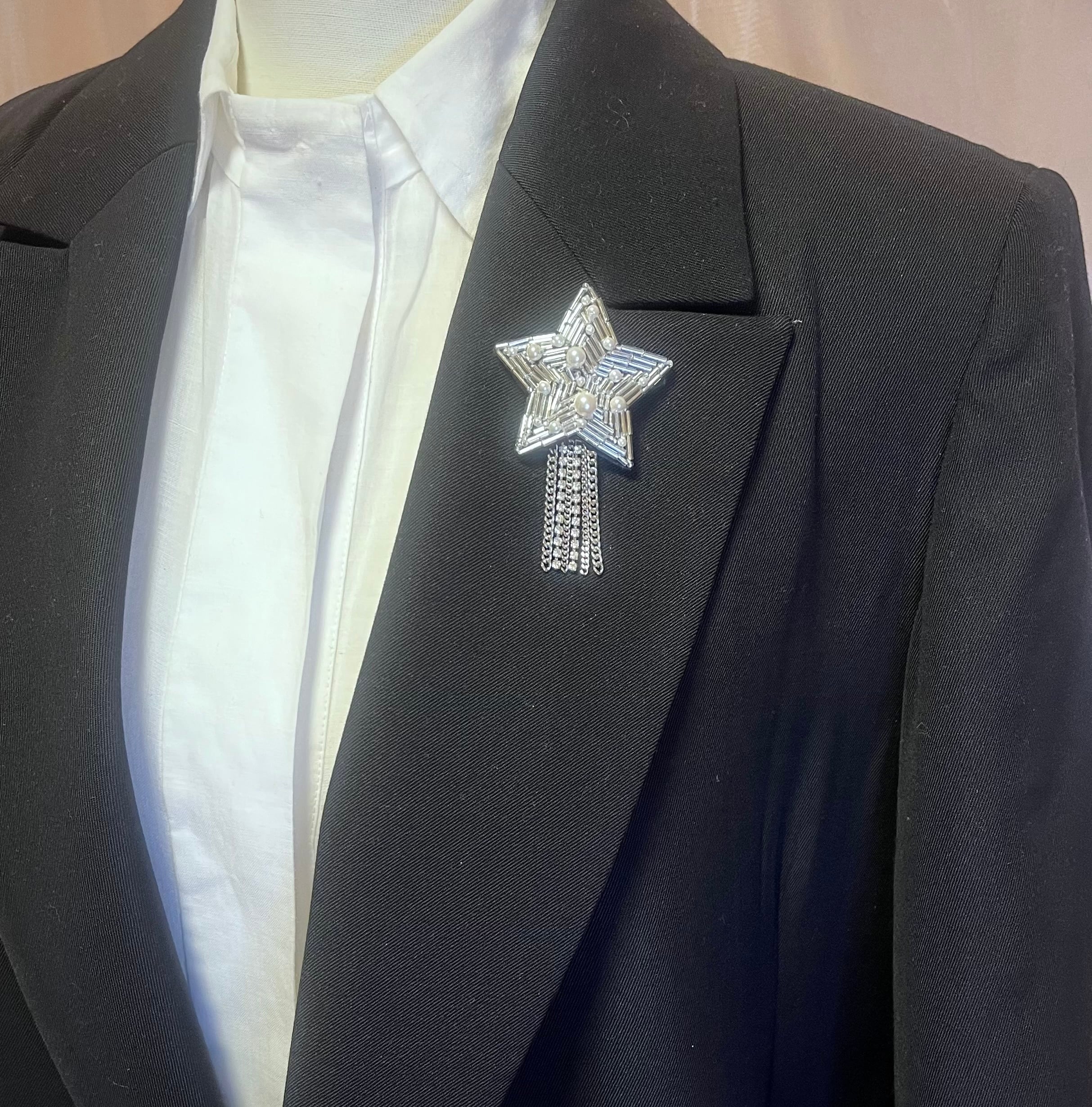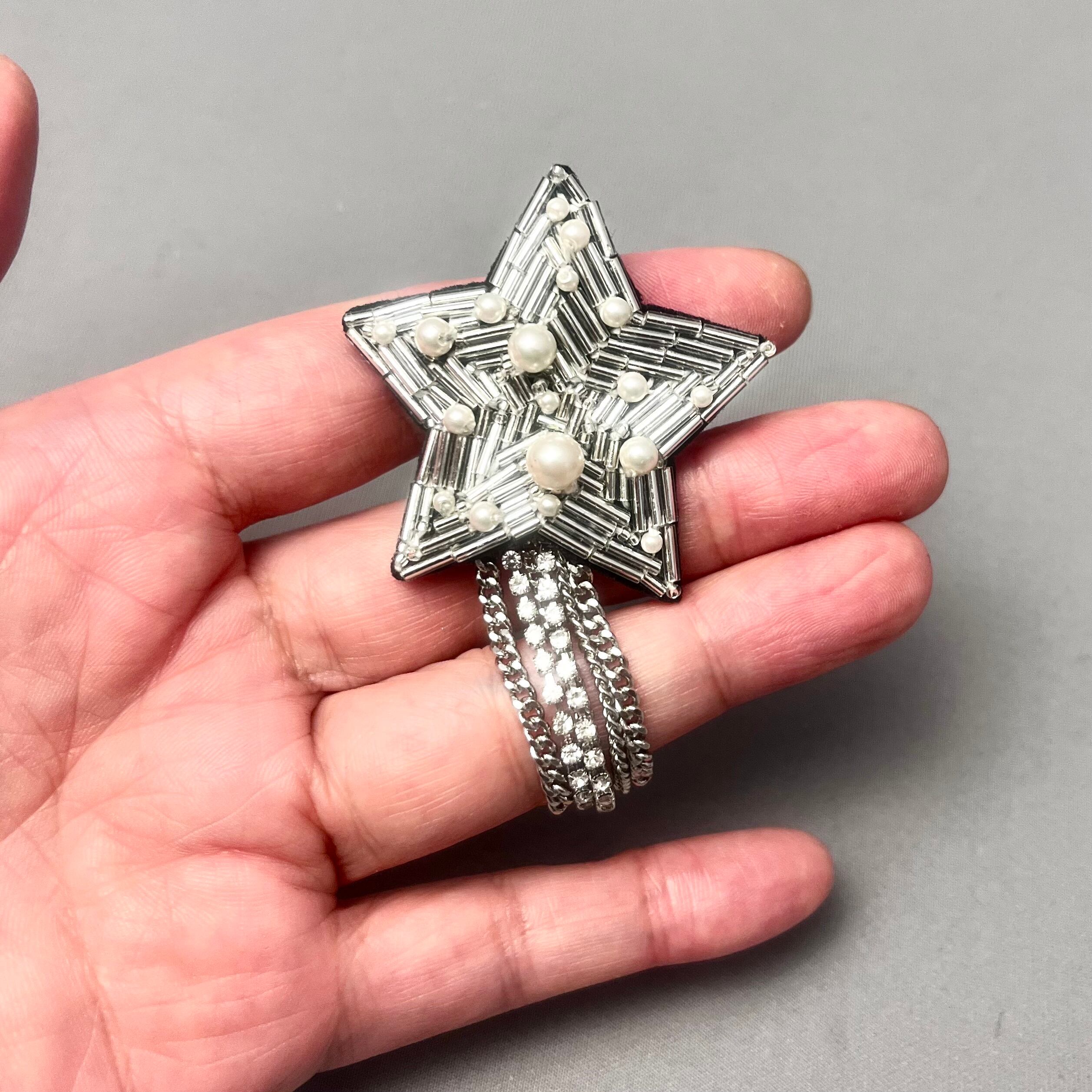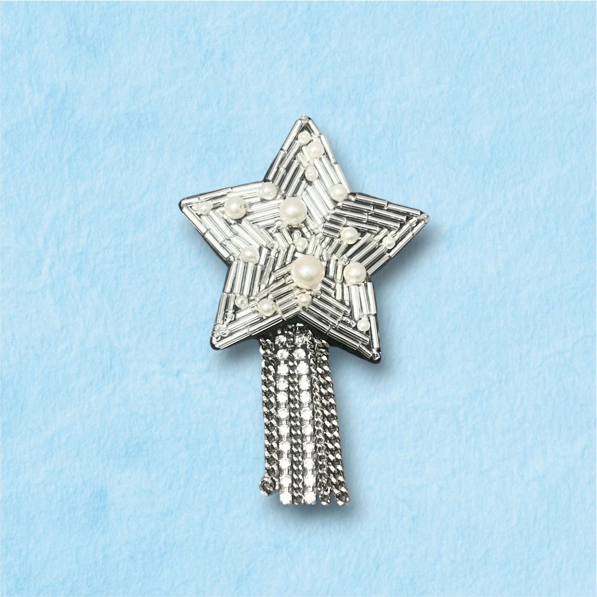 シルバーの流れ星をビーズ刺繍で表現したブローチです。