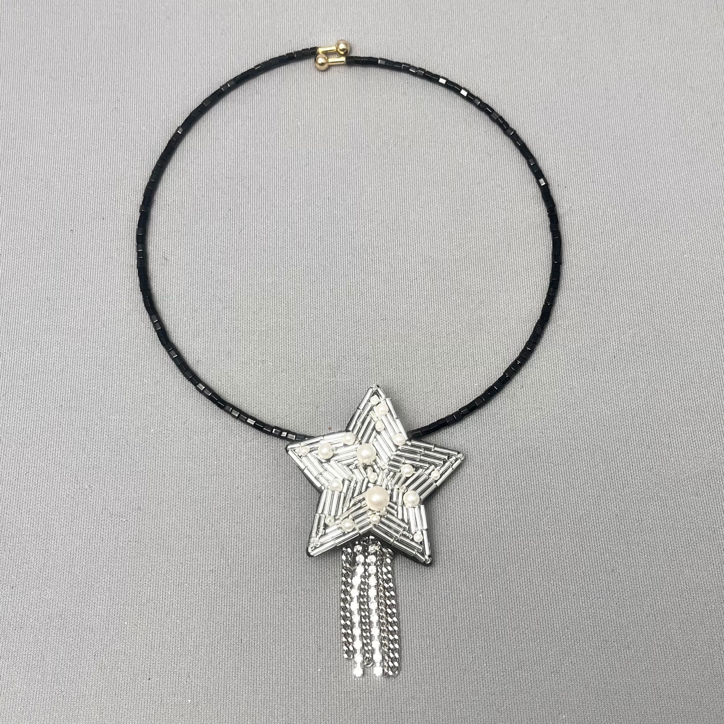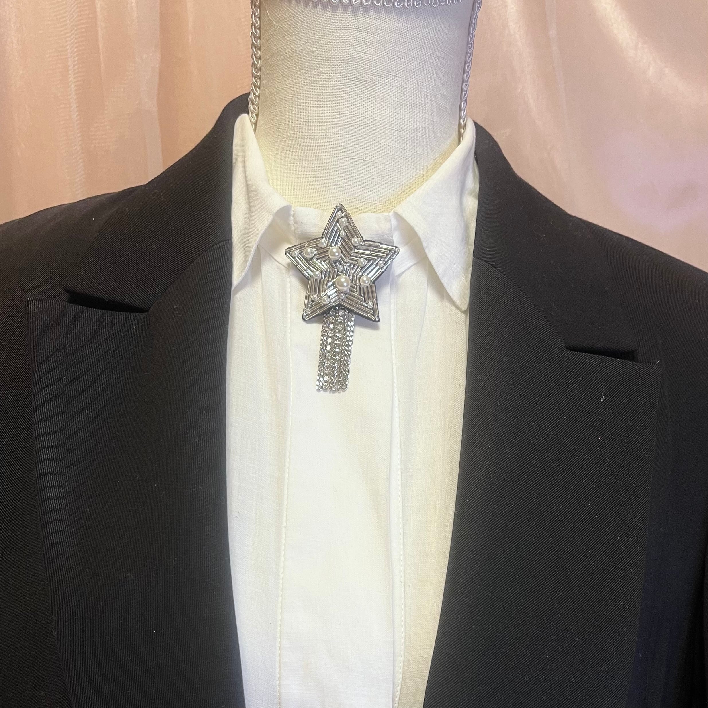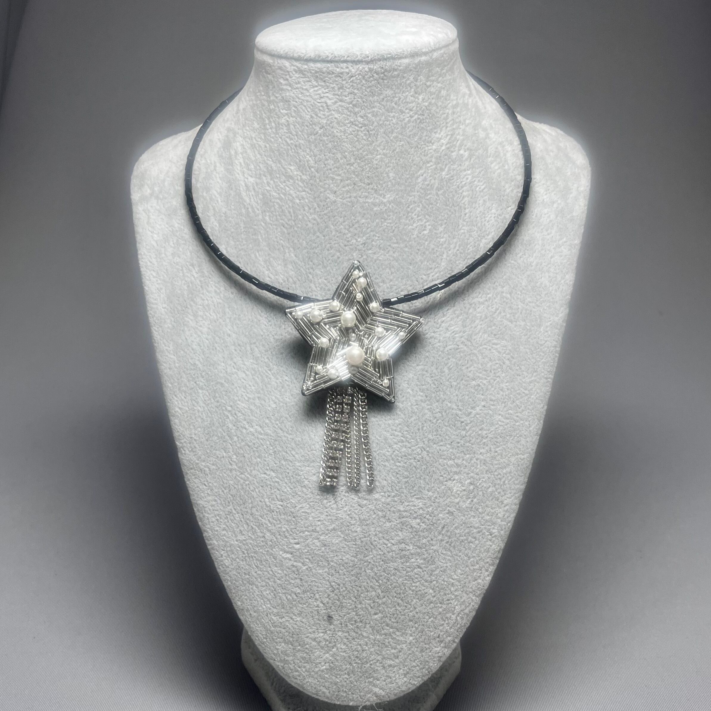 シルバーの流れ星をビーズ刺繍で表現したブローチです。