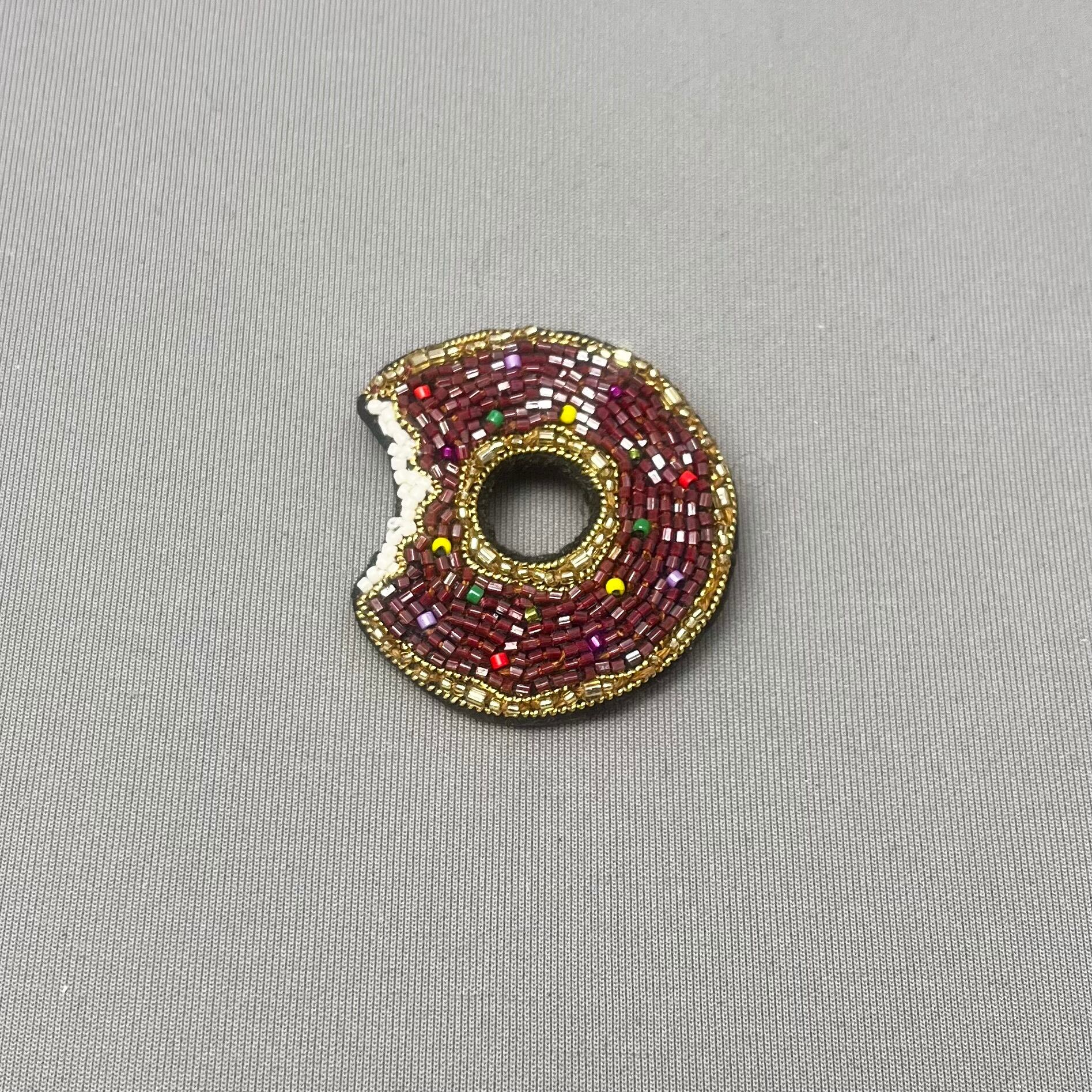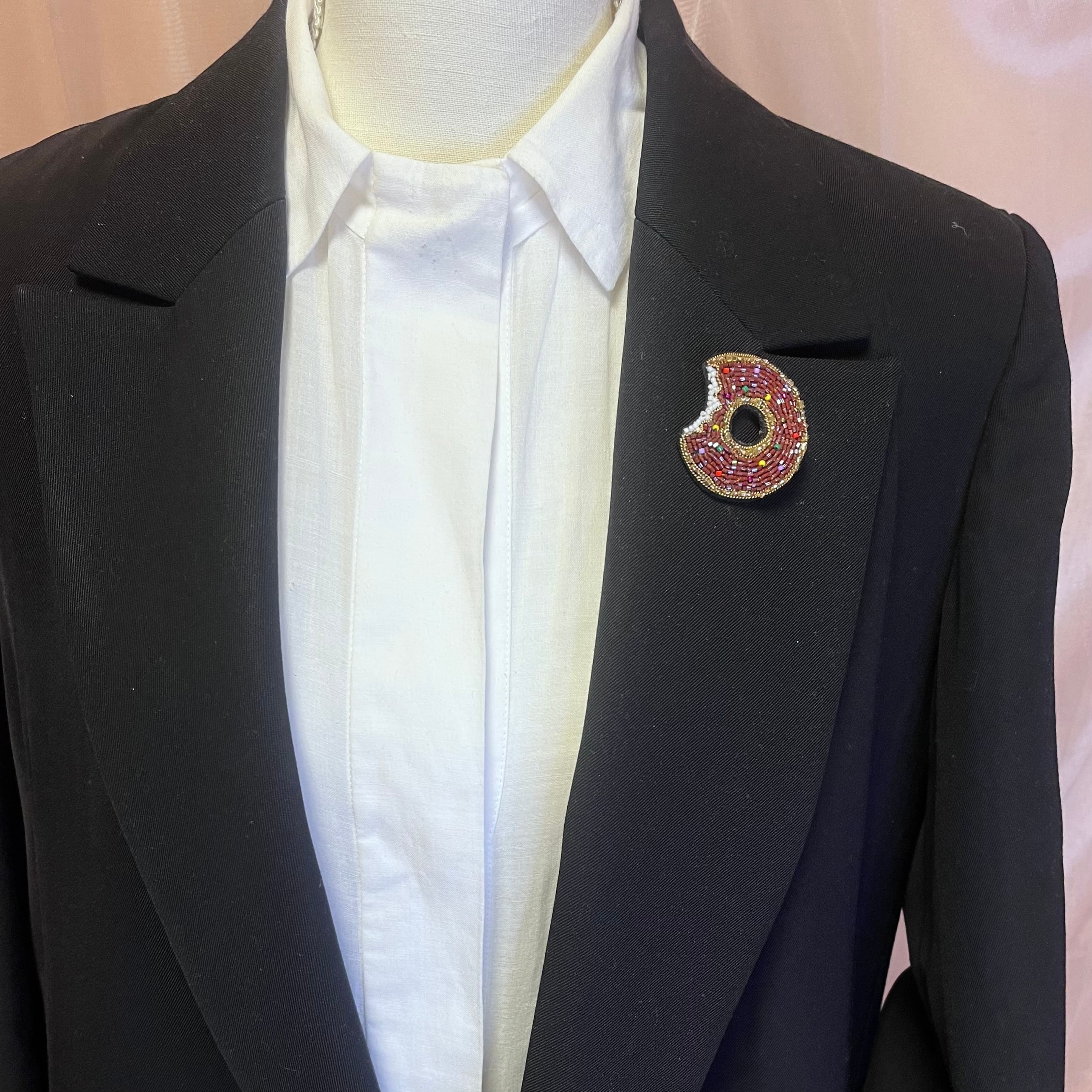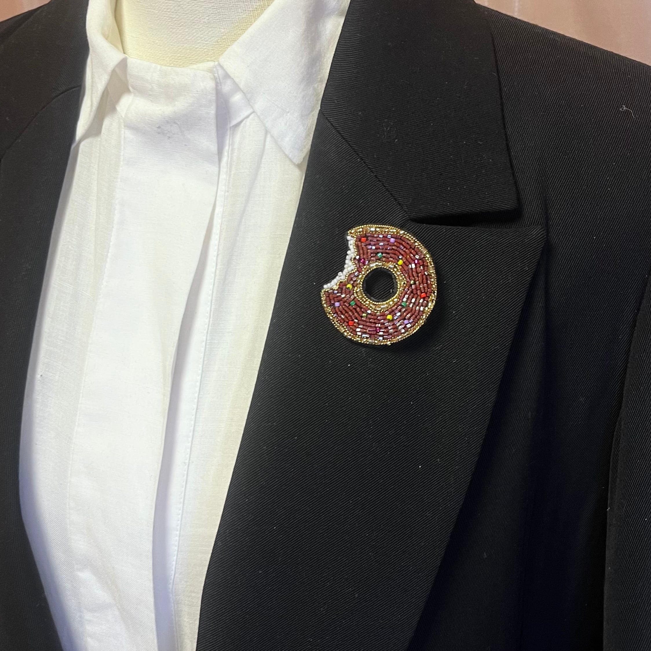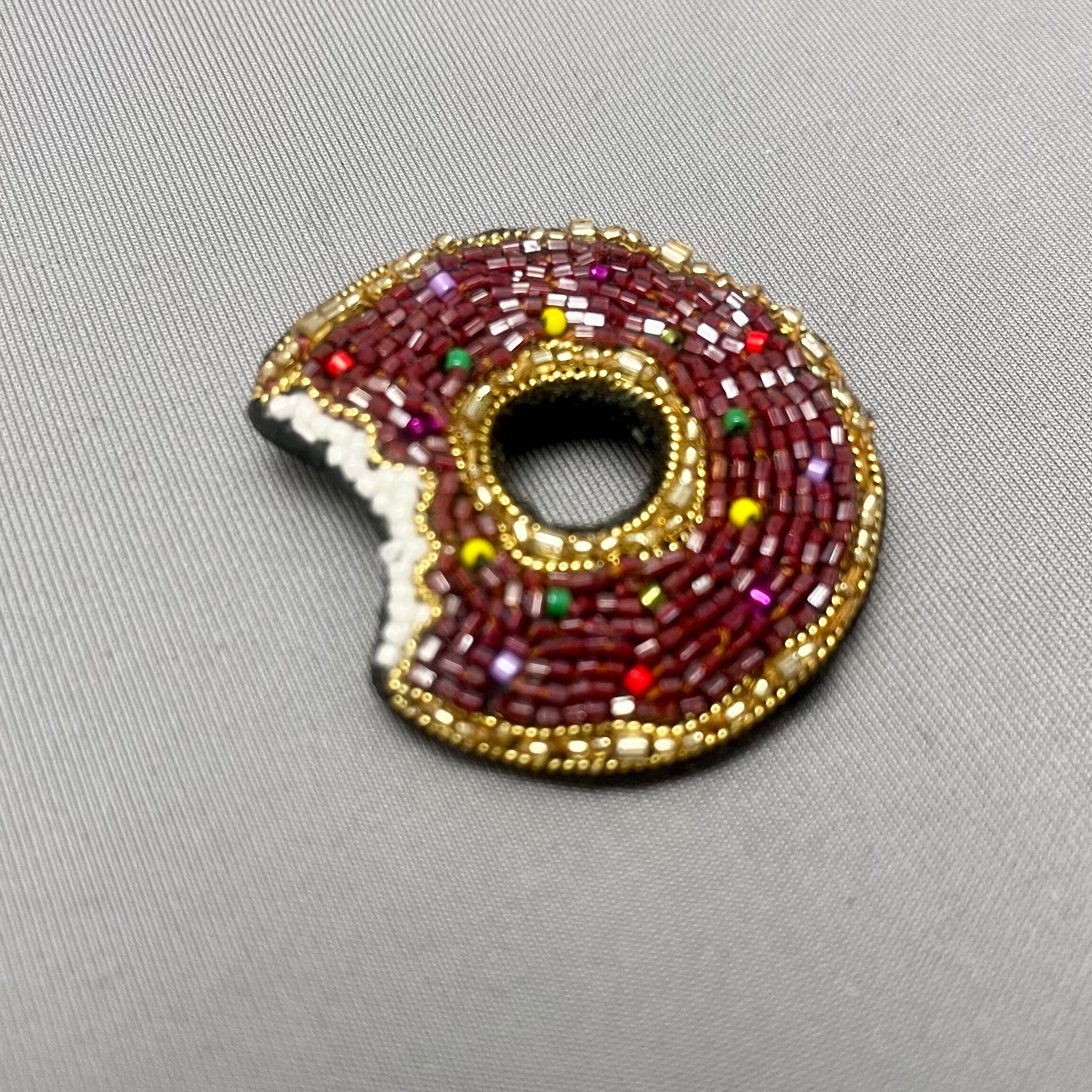 カラフルなビーズが施されたドーナツブローチは、見た目にも楽しいデザインです。