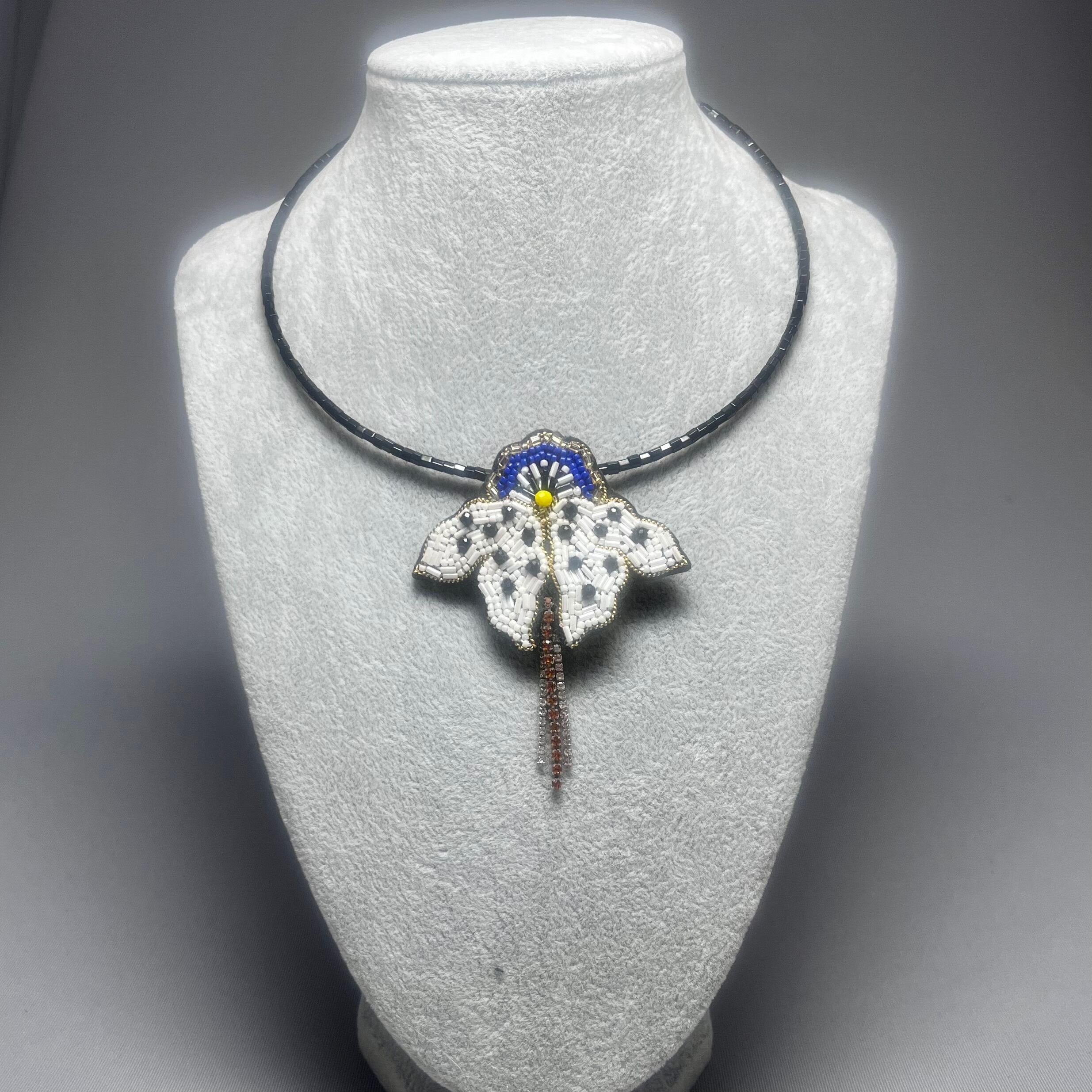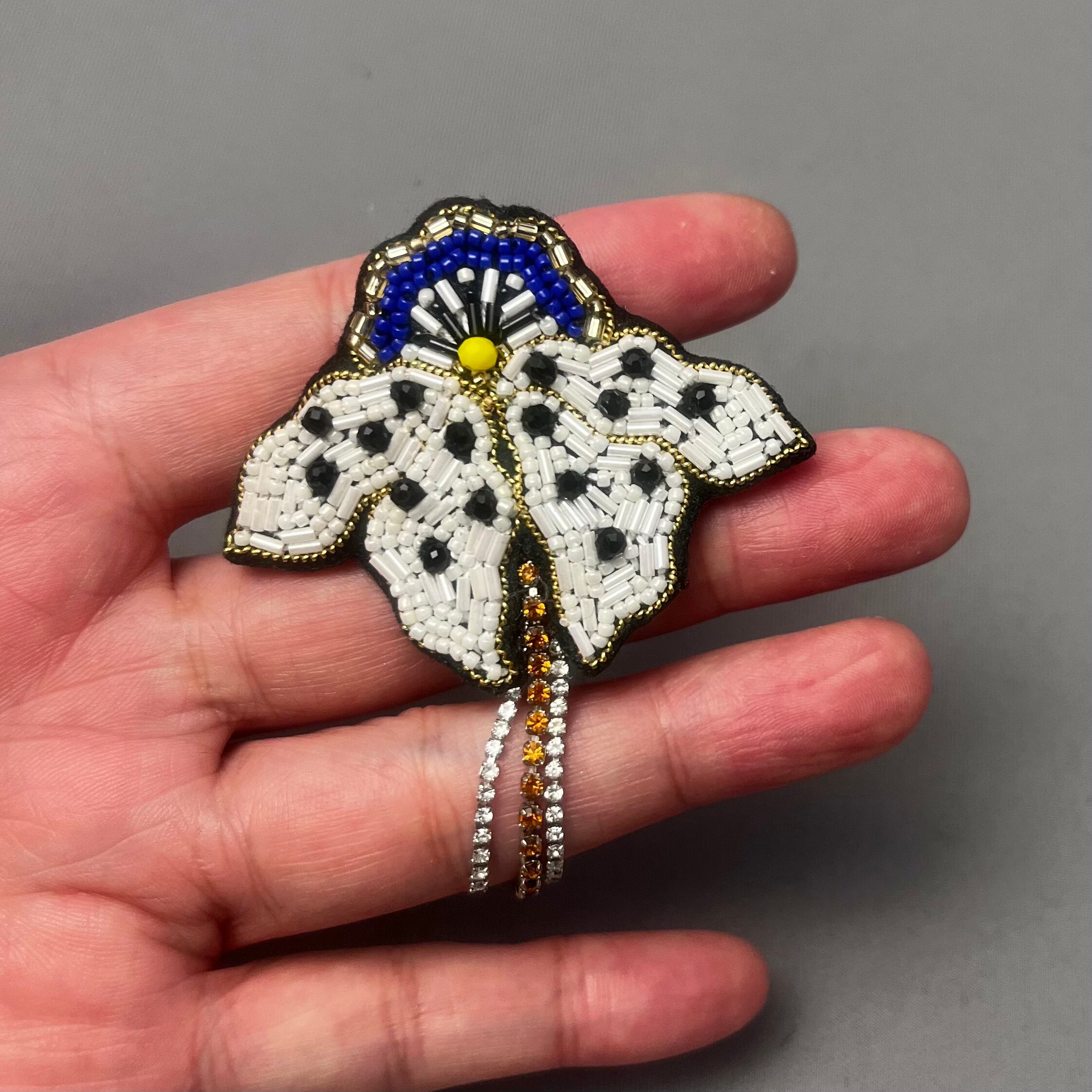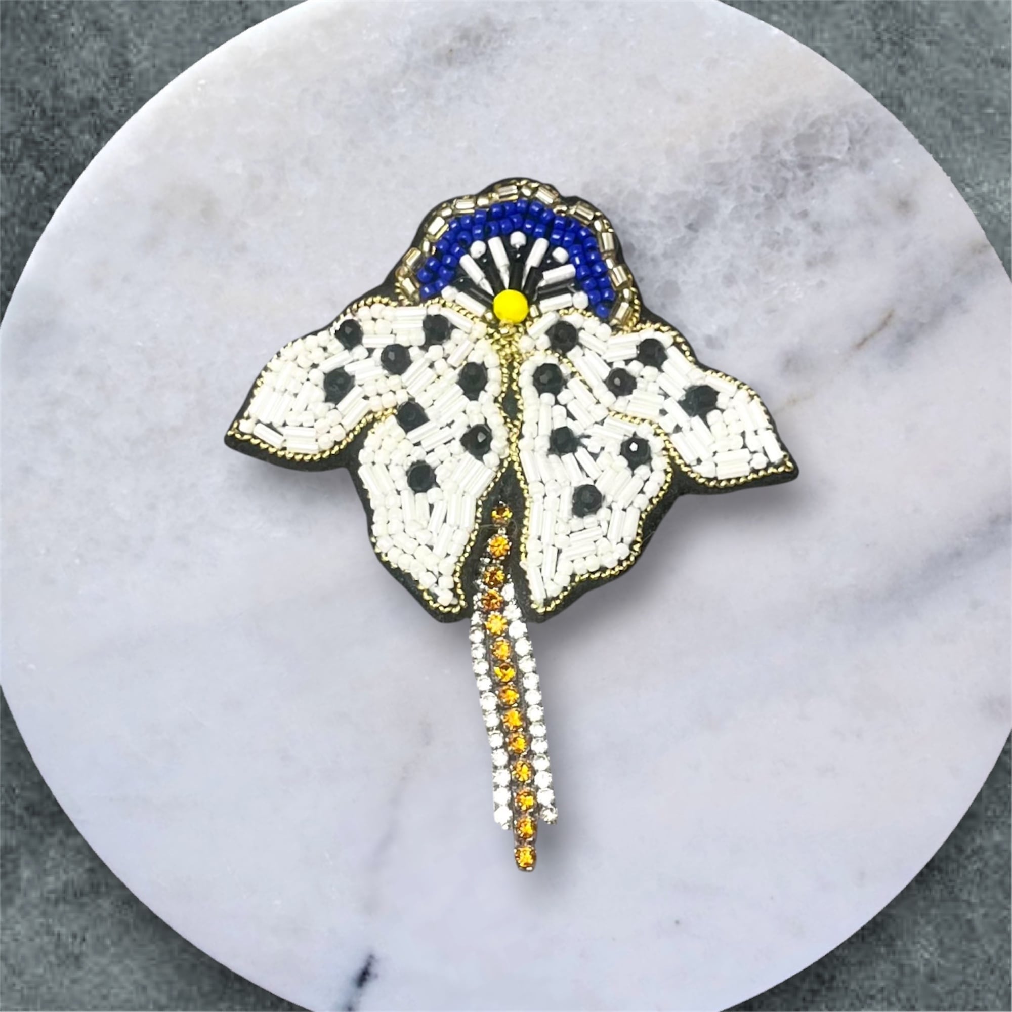 ビーズ刺繍を施した、エレガントなホワイトリリーを表現したブローチです。優雅なデザインと清潔感のある白色が魅力で、シンプルなコーディネートに洗練された印象を与えてくれる特別なアイテムです。