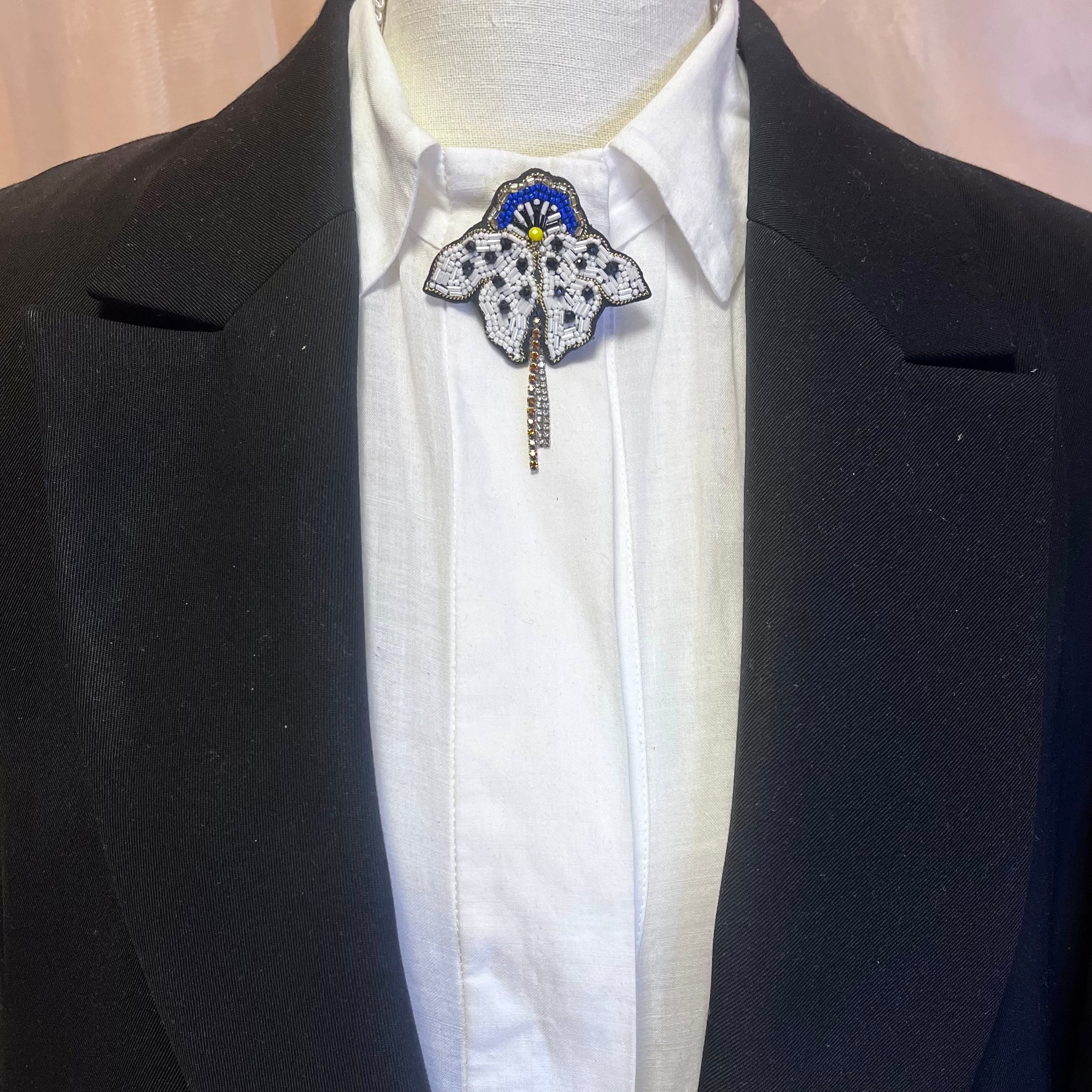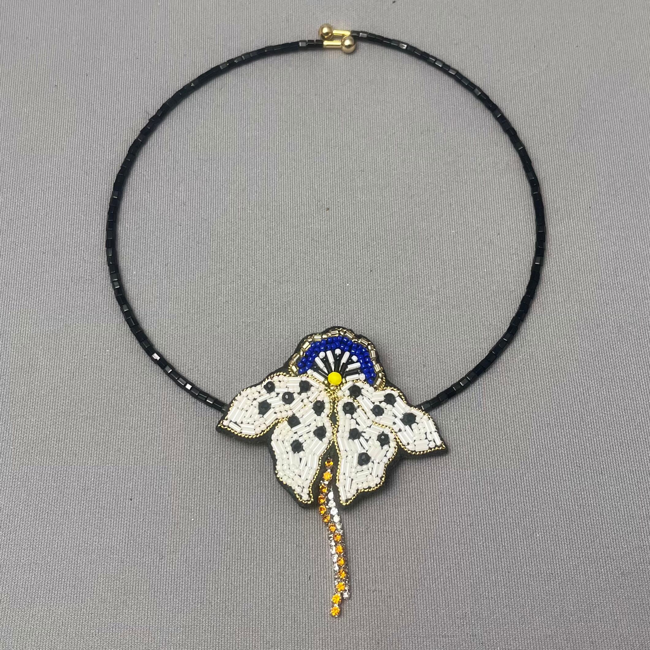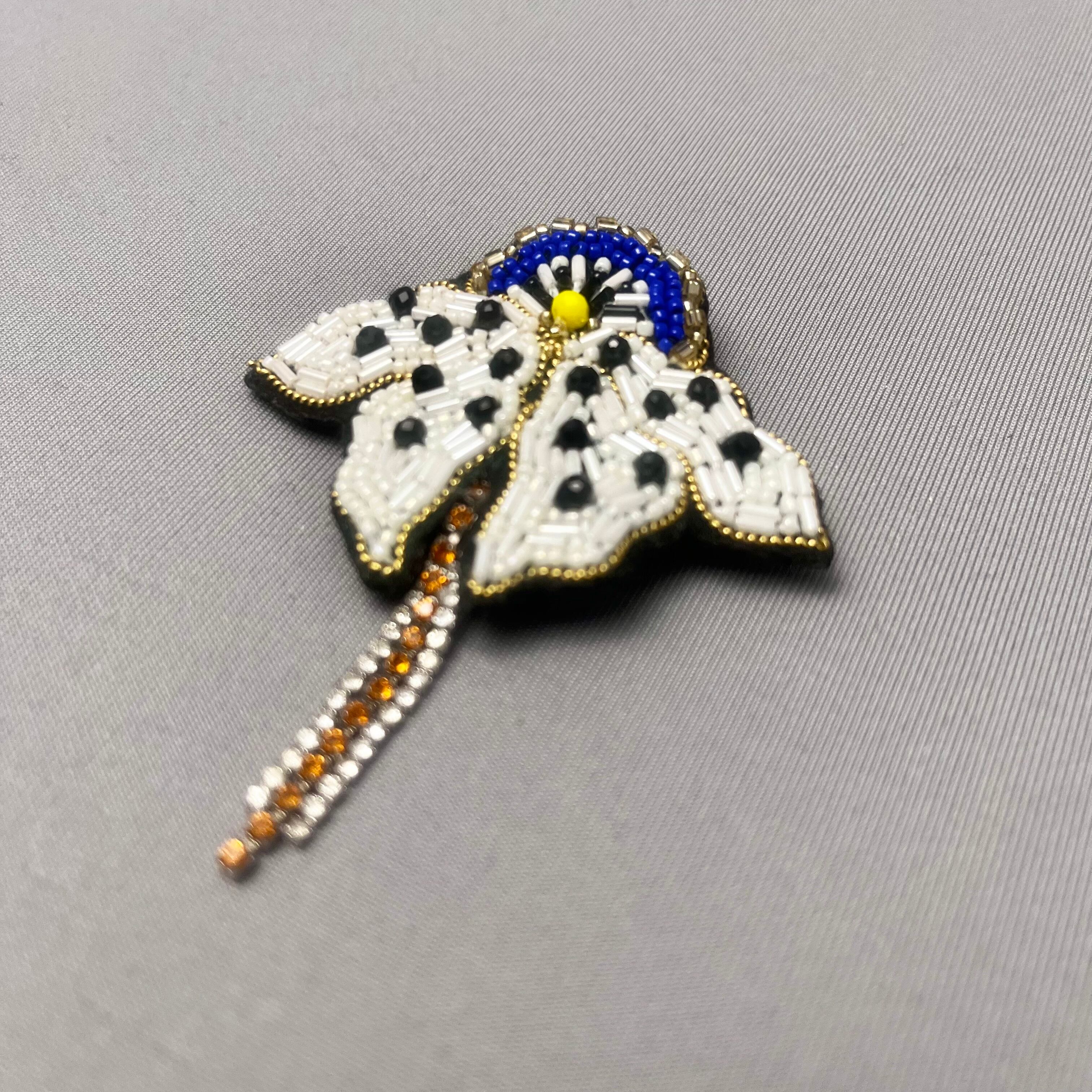 ビーズ刺繍を施した、エレガントなホワイトリリーを表現したブローチです。優雅なデザインと清潔感のある白色が魅力で、シンプルなコーディネートに洗練された印象を与えてくれる特別なアイテムです。