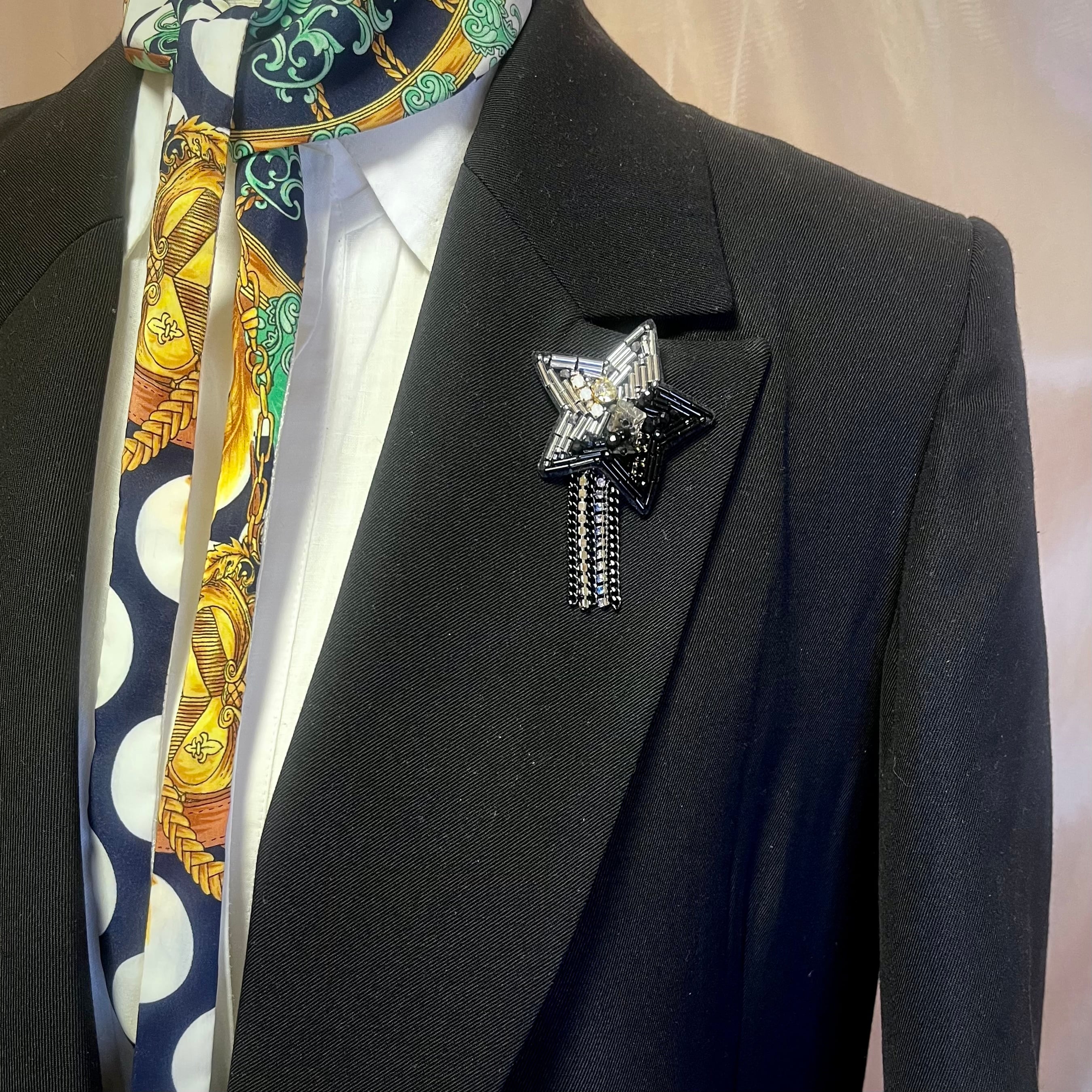 ジャケットやコート、ニット、バッグなど、さまざまなスタイルでお楽しみいただけます。また、ブローチとしてだけでなく、チョーカーやネックレスに通してご使用いただくことも可能です。