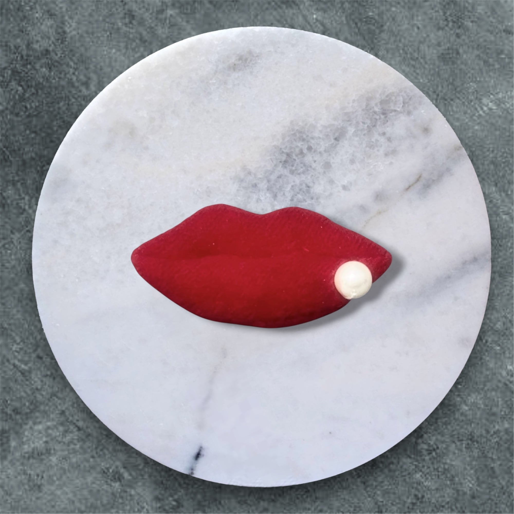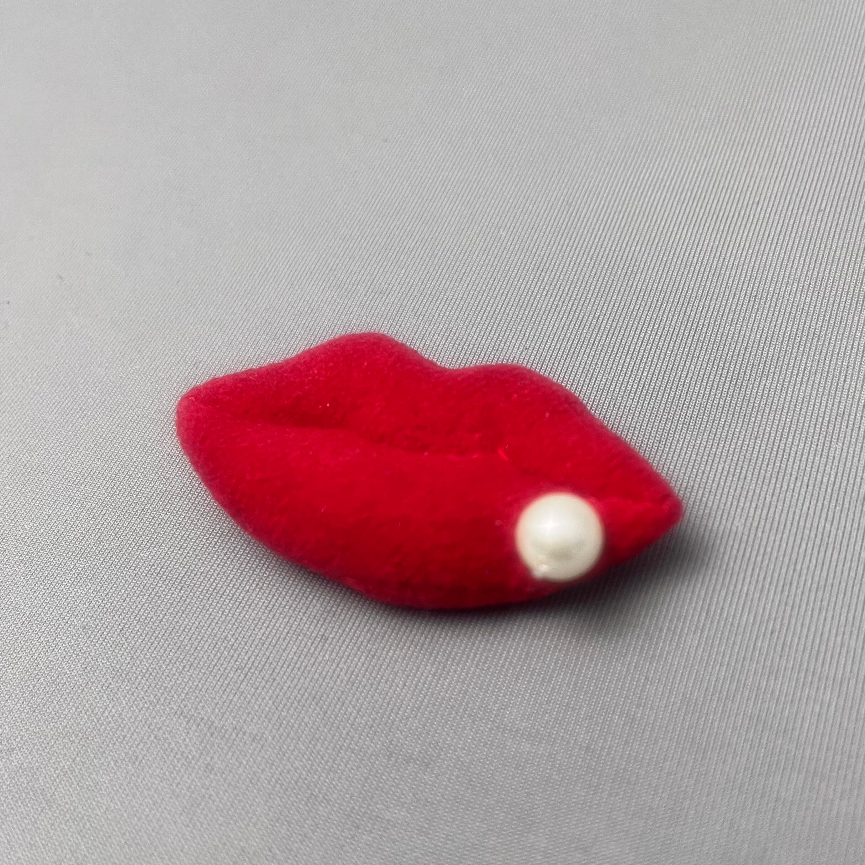 布を使用し、綿を入れた柔らかな質感のぷっくり唇ブローチです。遊び心を加え、印象的なスタイルを演出します。