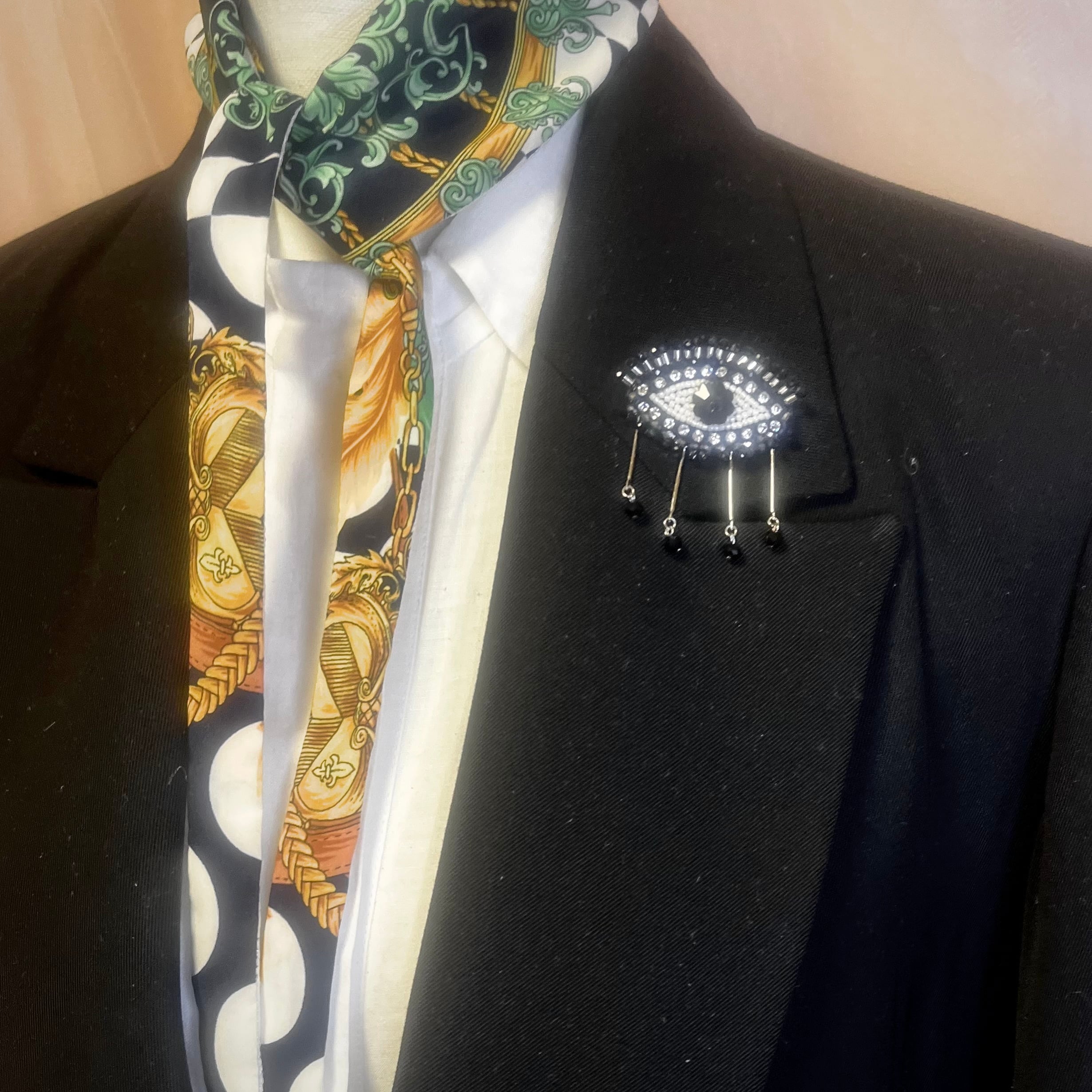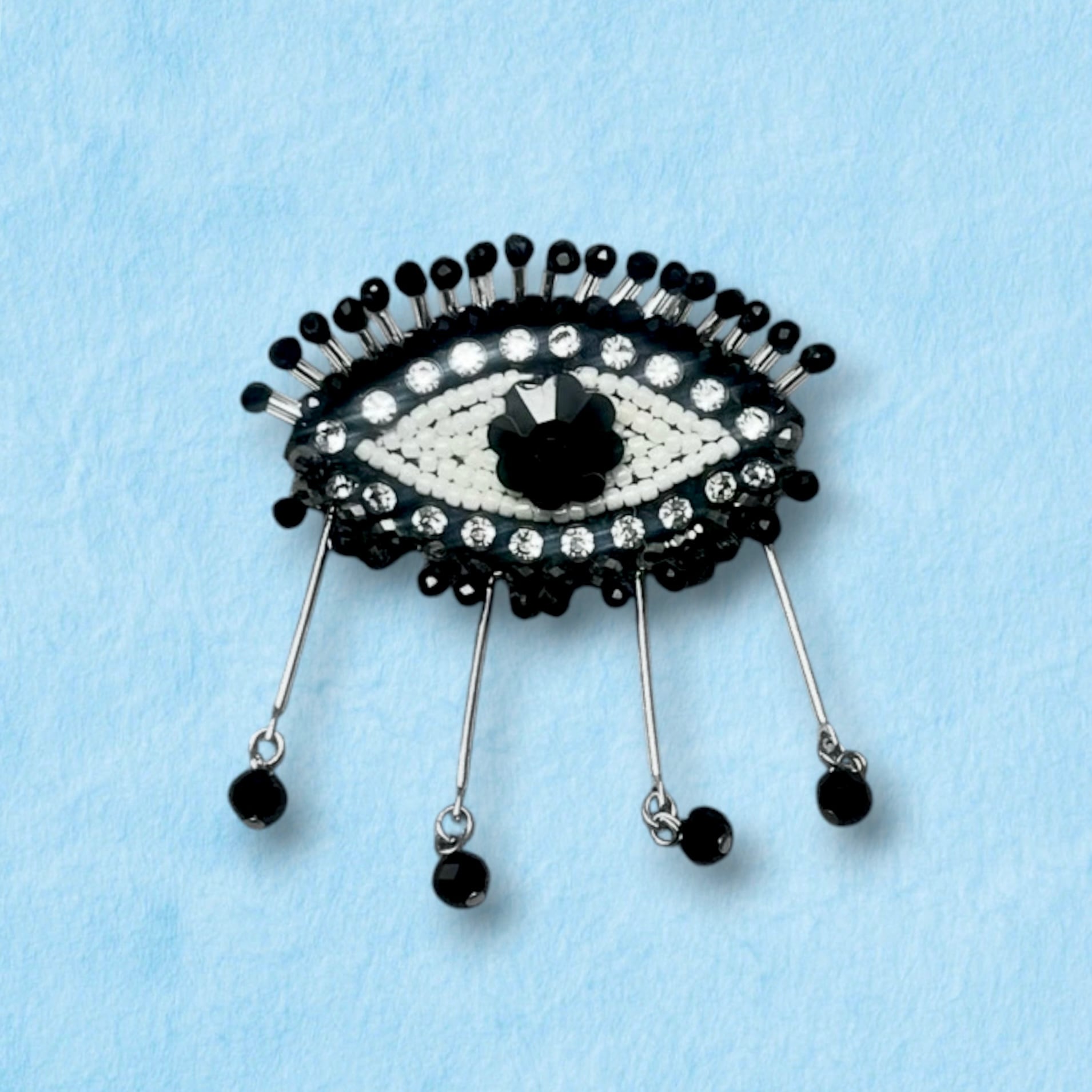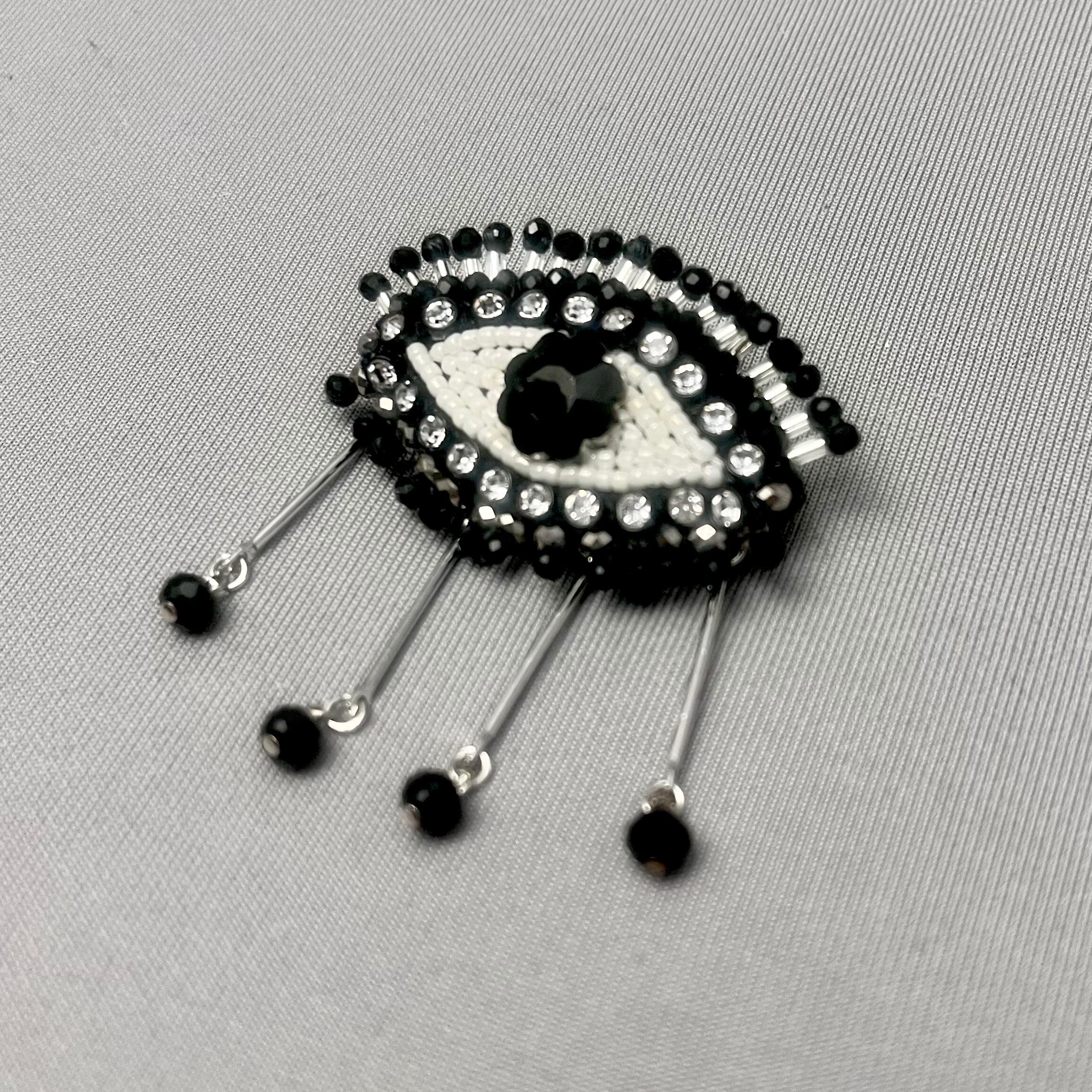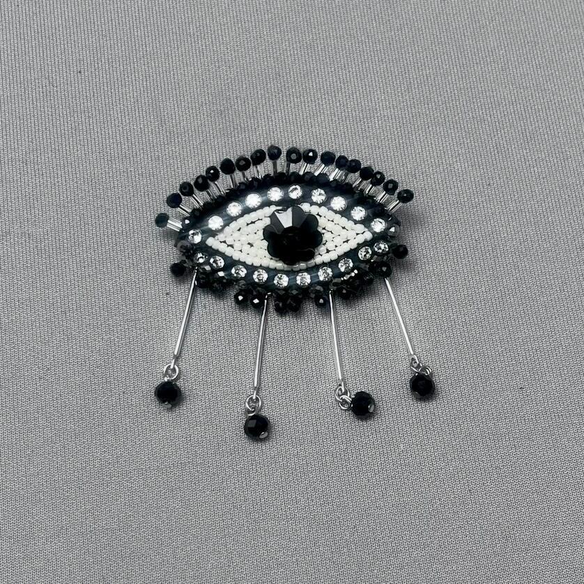ビーズ刺繍で仕上げられた、eyeブローチ。