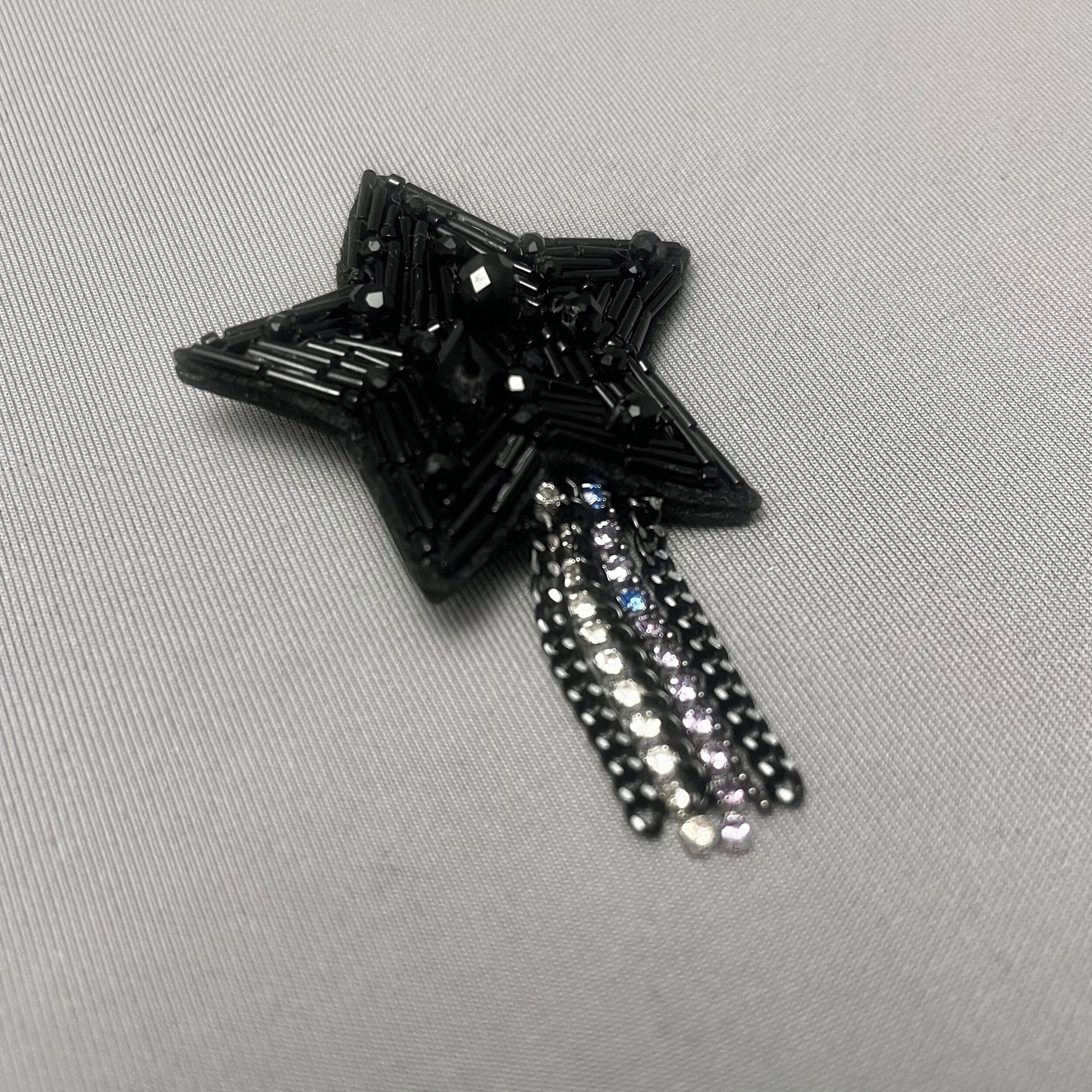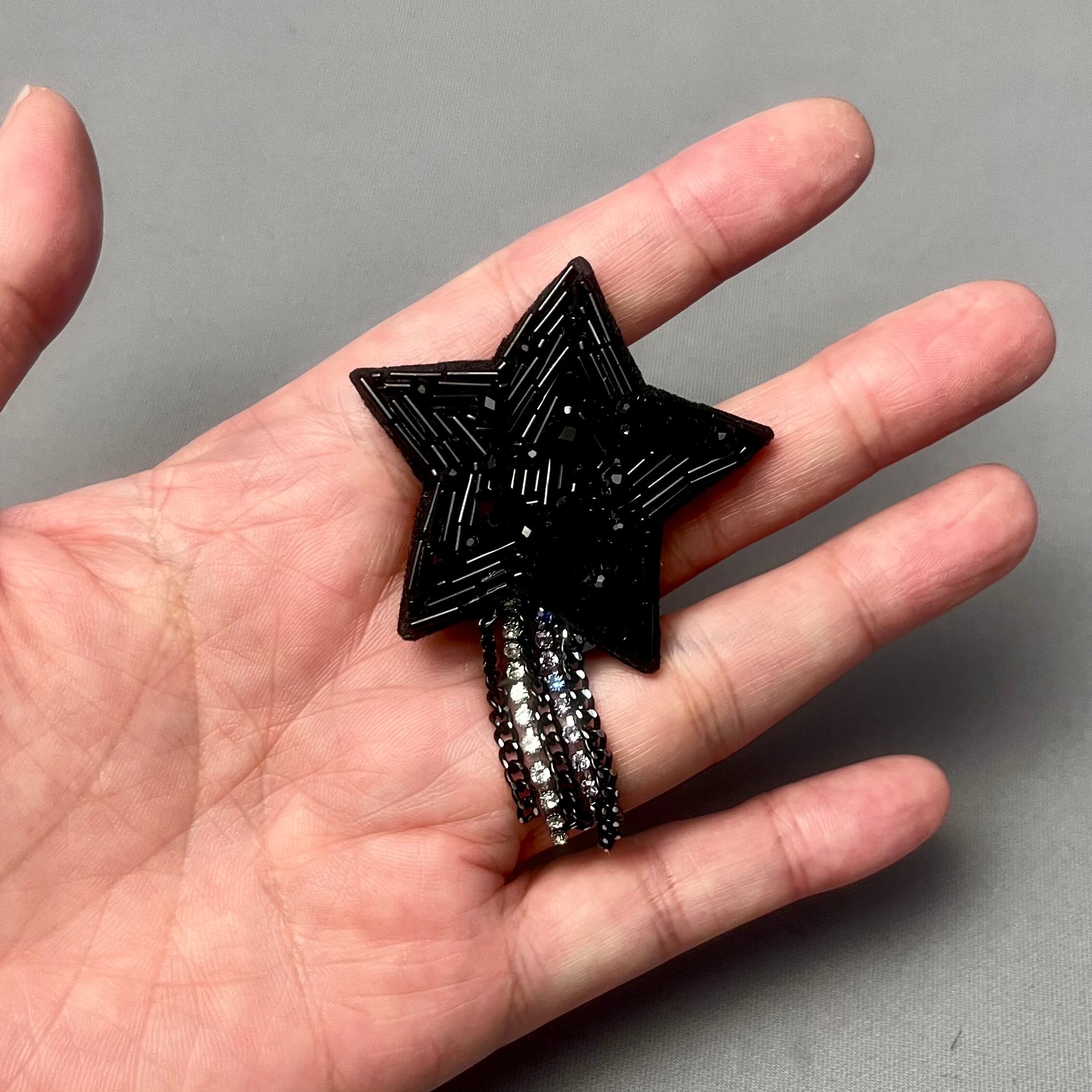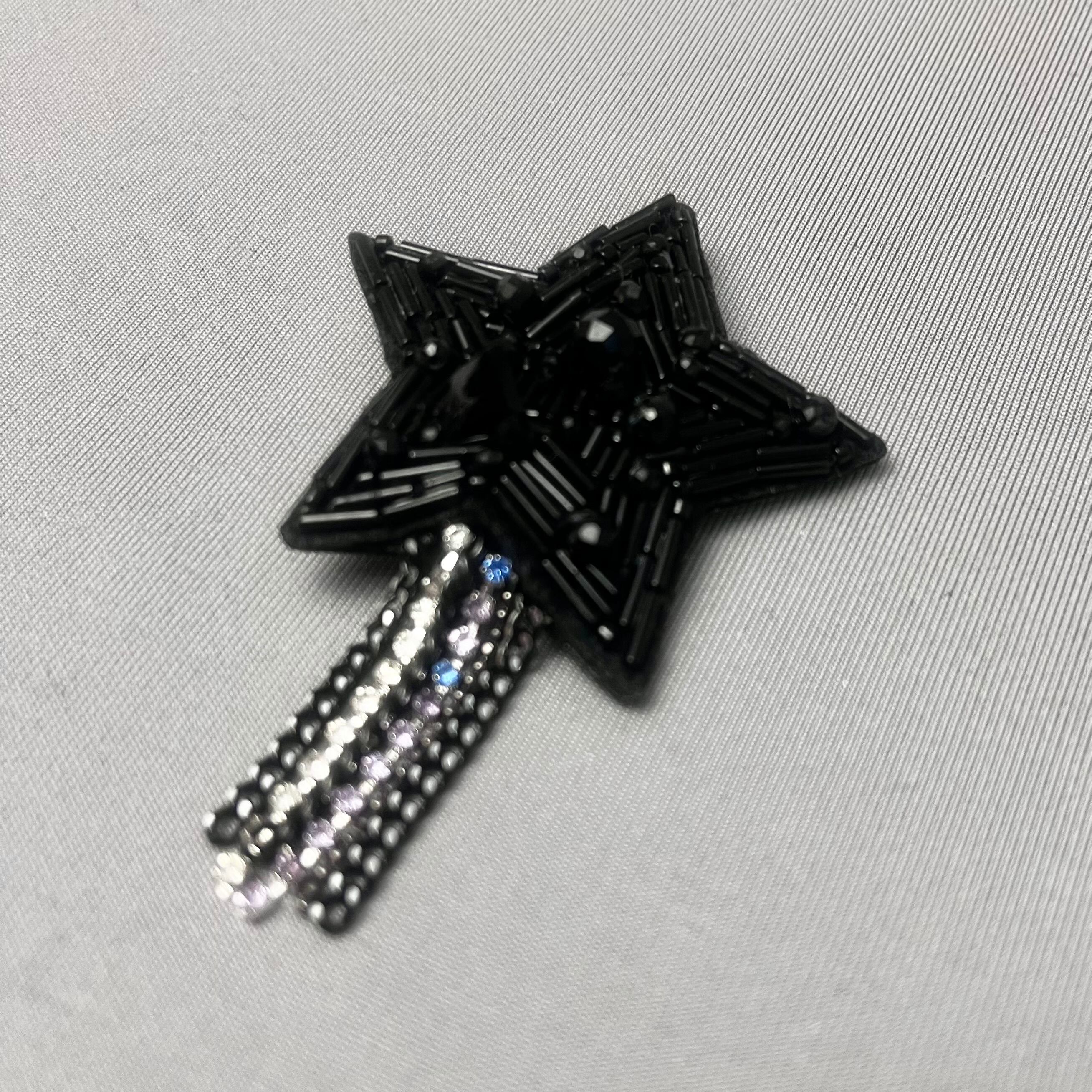 ビーズ刺繍で仕上げられた、星のブローチ。