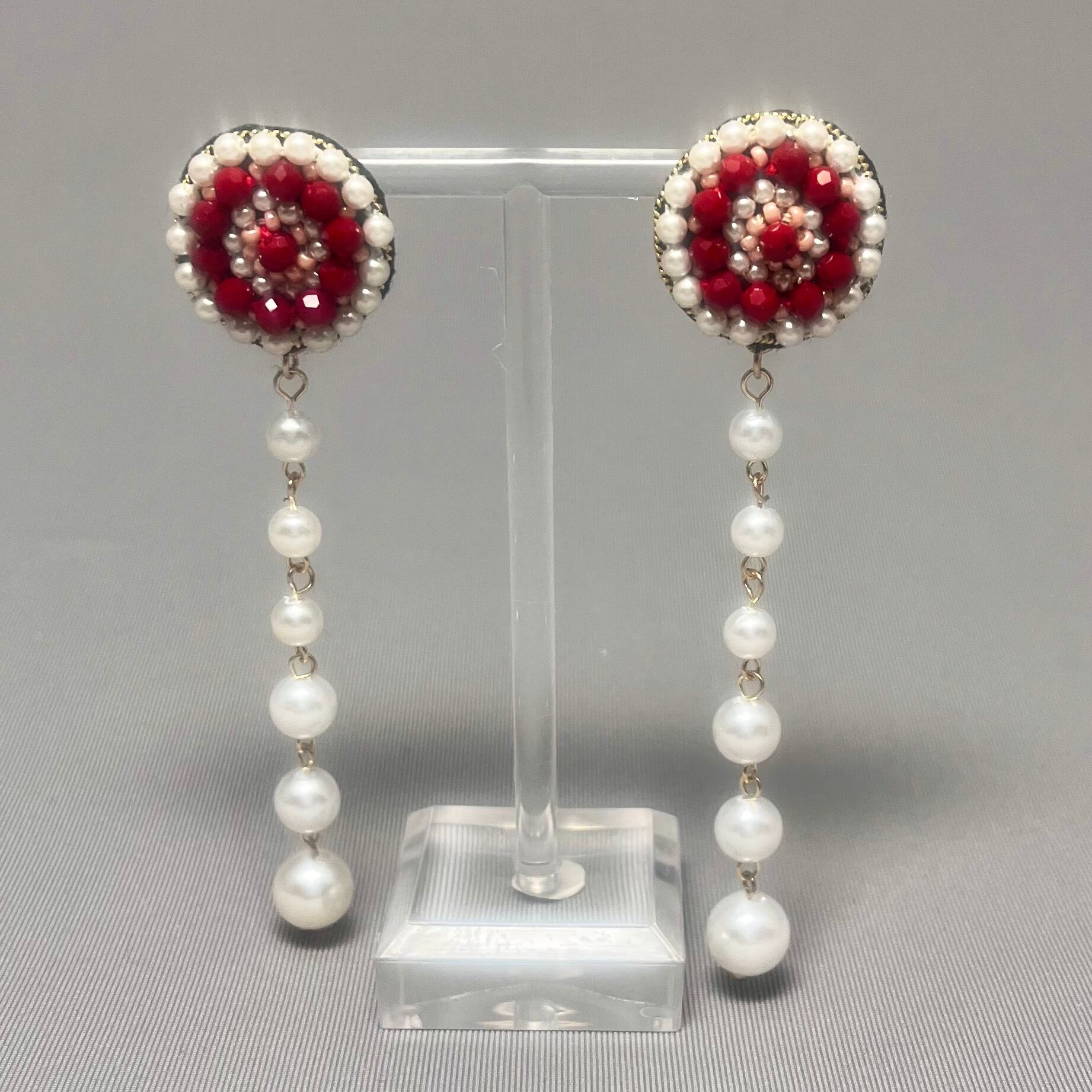 赤と白のぐるぐるピアス