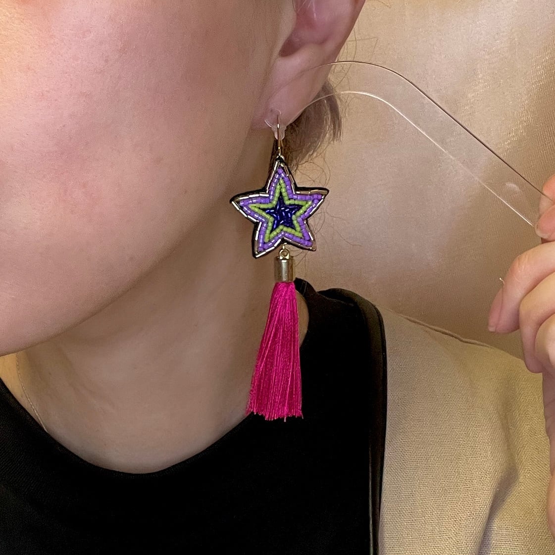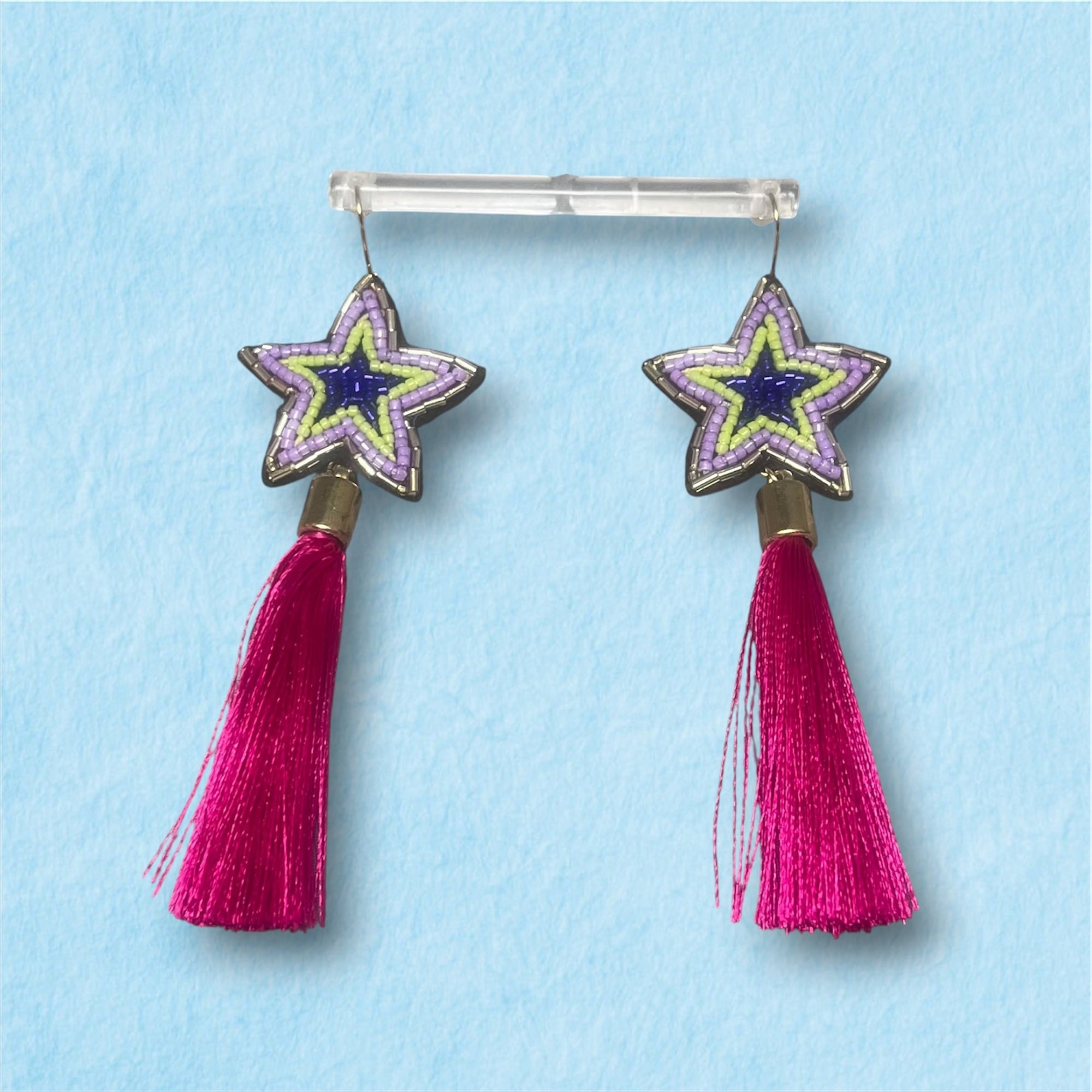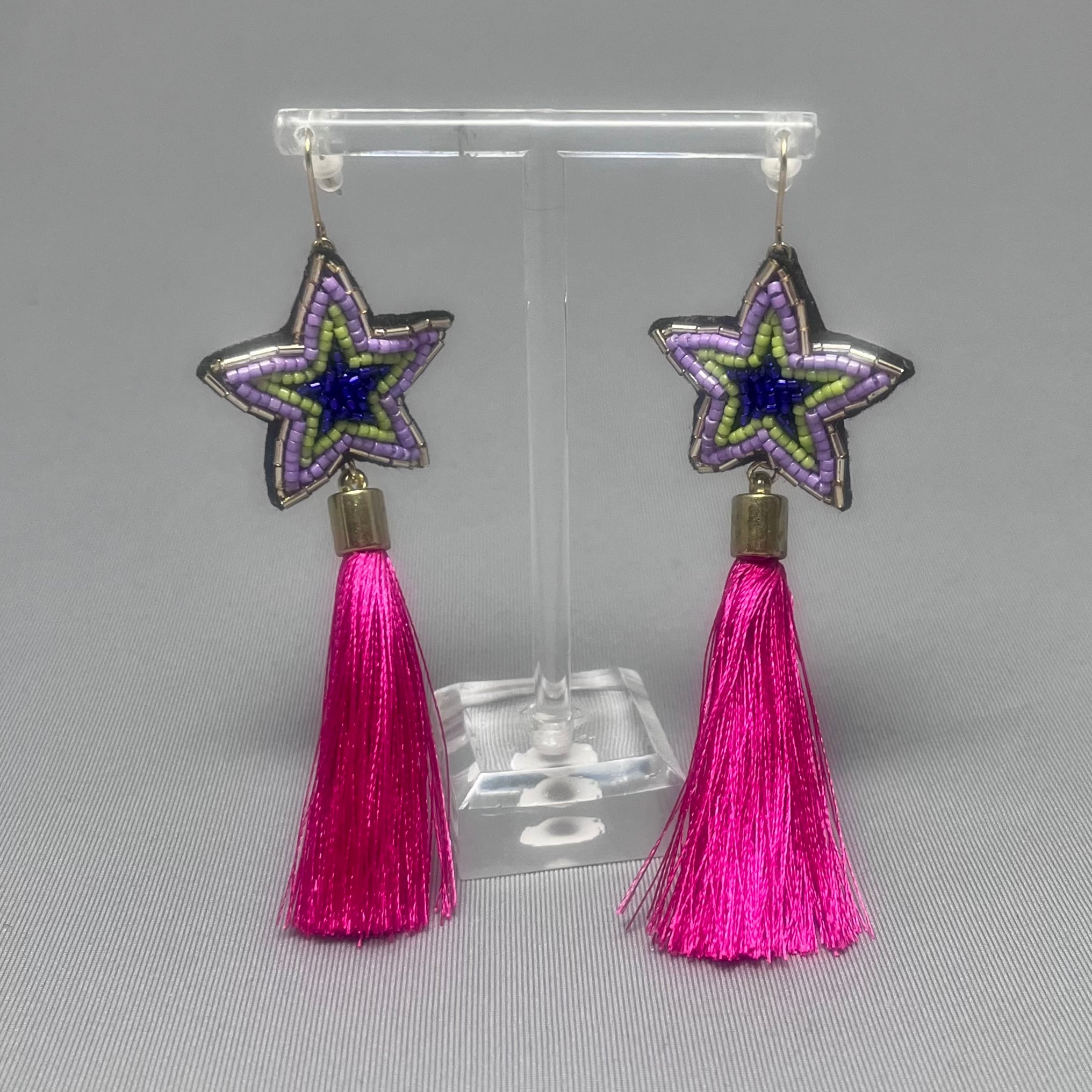 星の耳飾り(ピンクフリンジ)※イヤリングに金具交換可