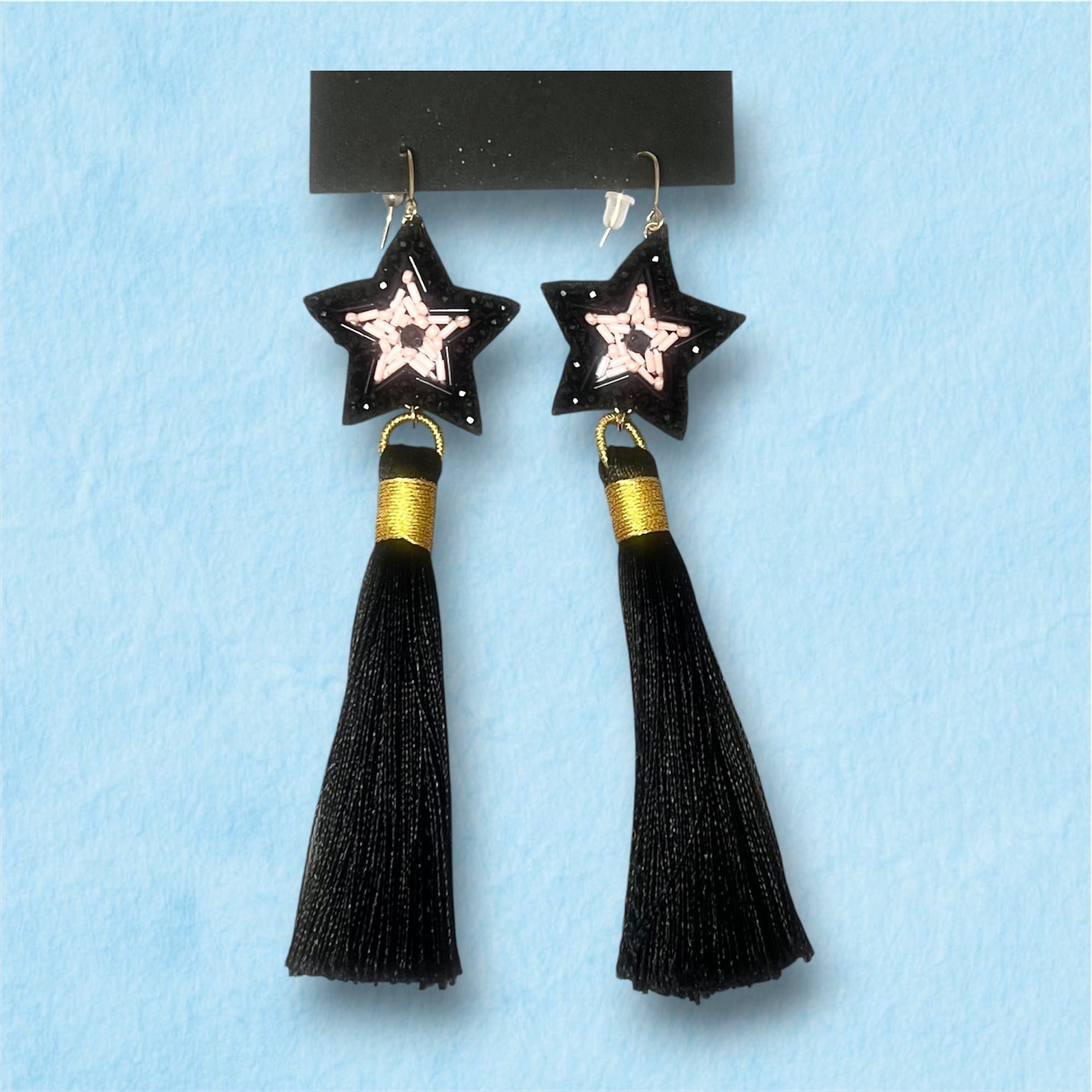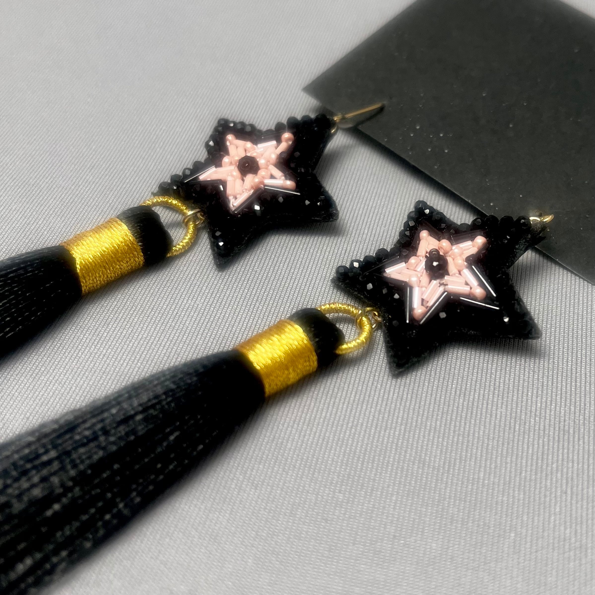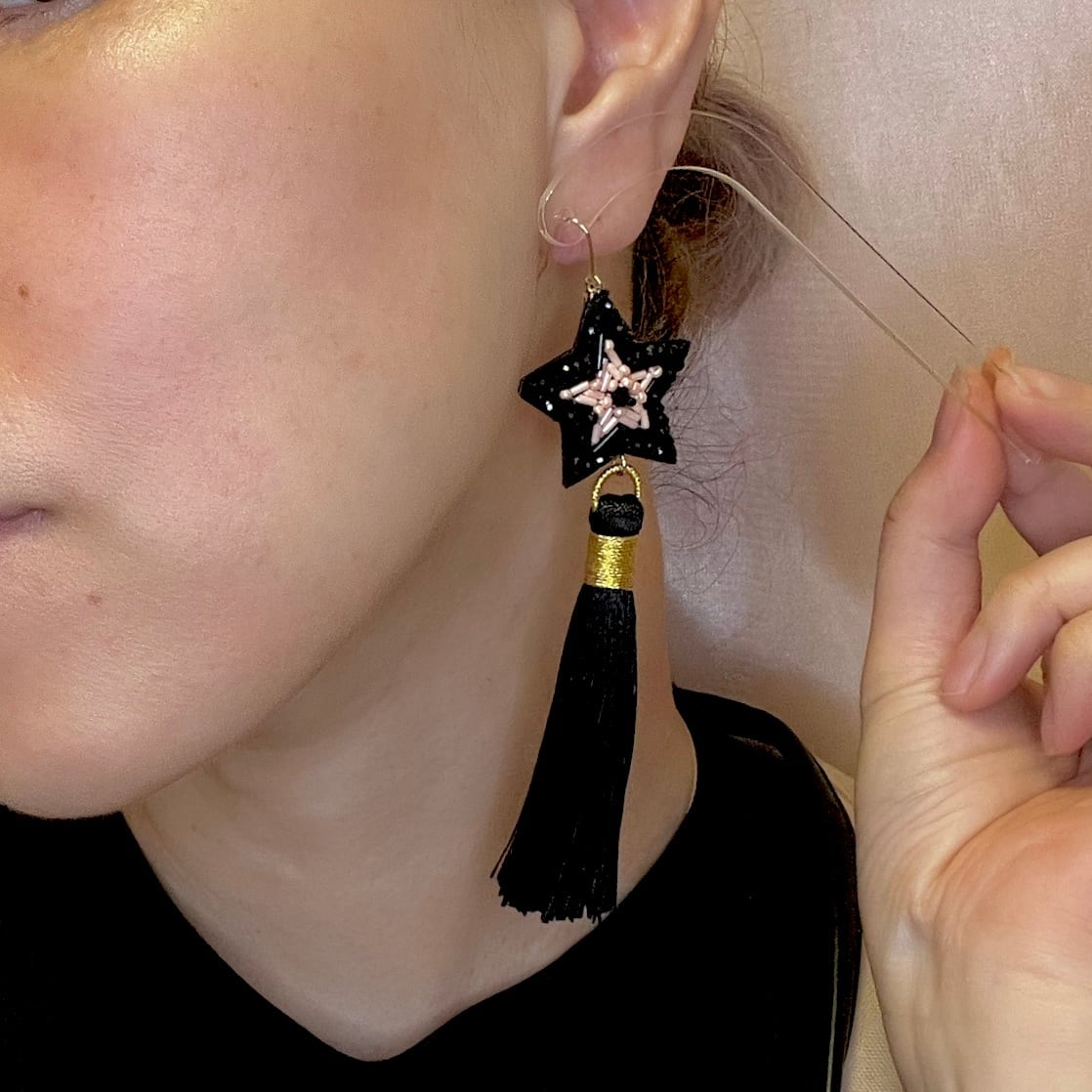 ブラックスター耳飾り*イヤリングの金具に交換可