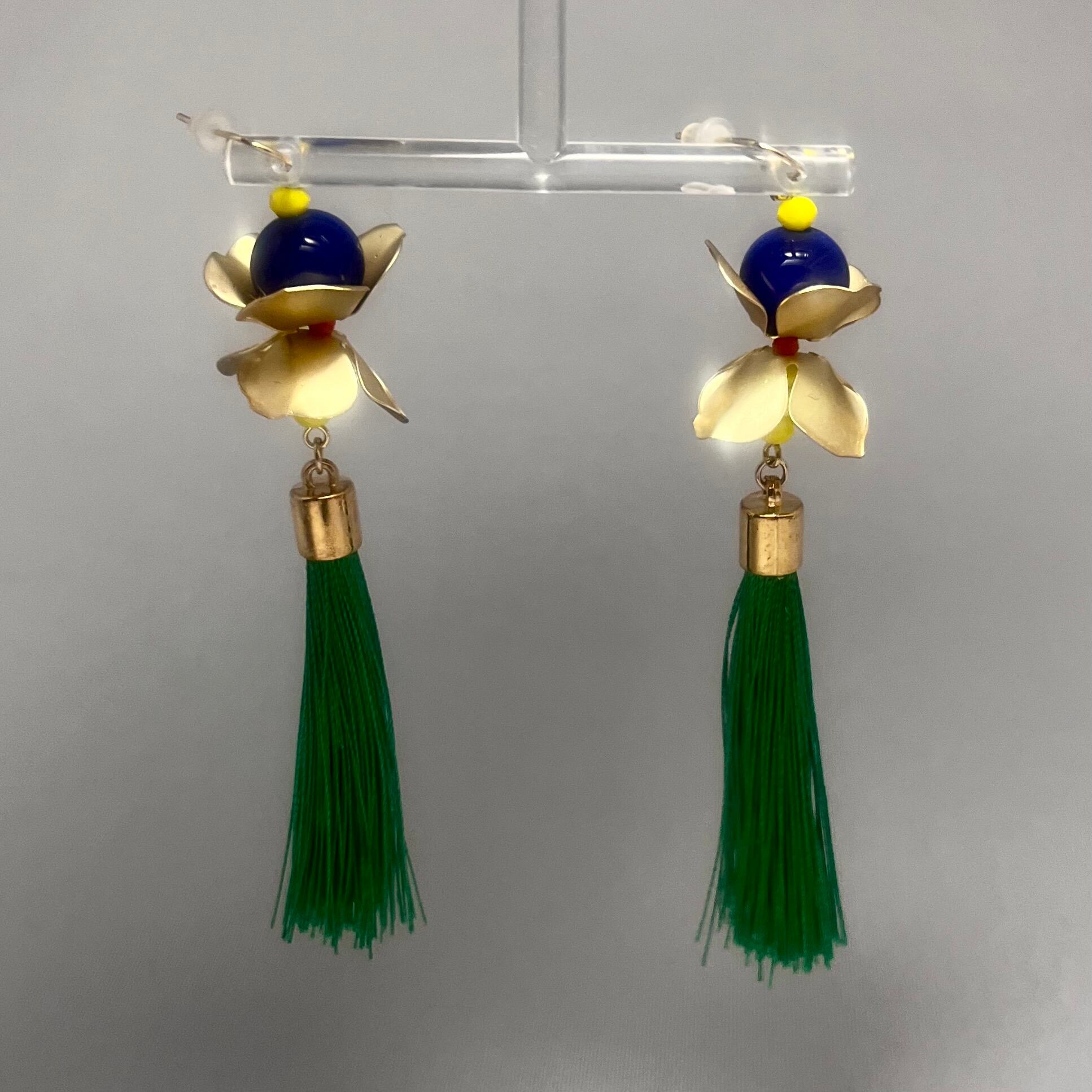 グリーンフリンジピアス※イヤリングに金具交換可