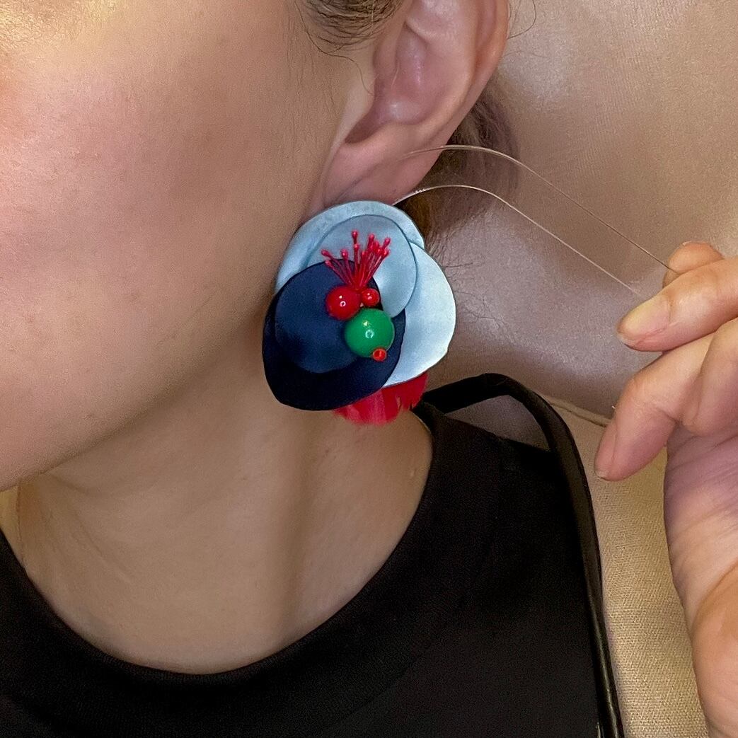 サテン生地を使用した優雅なデザインが特徴です。耳元に華やかさを添え、シンプルなスタイルにも特別な魅力をプラスします。普段使いはもちろん、特別なシーンにもぴったりなアイテムです。