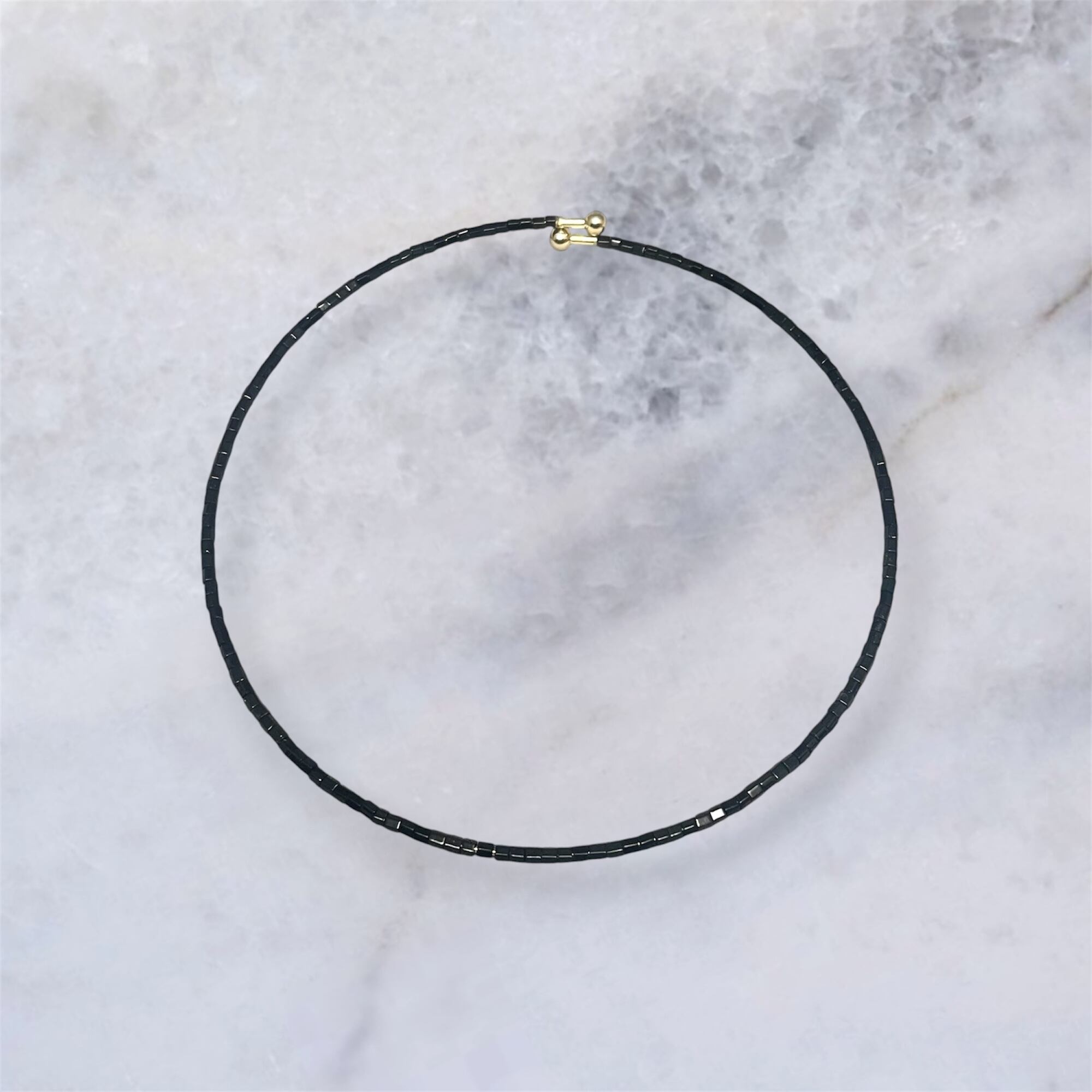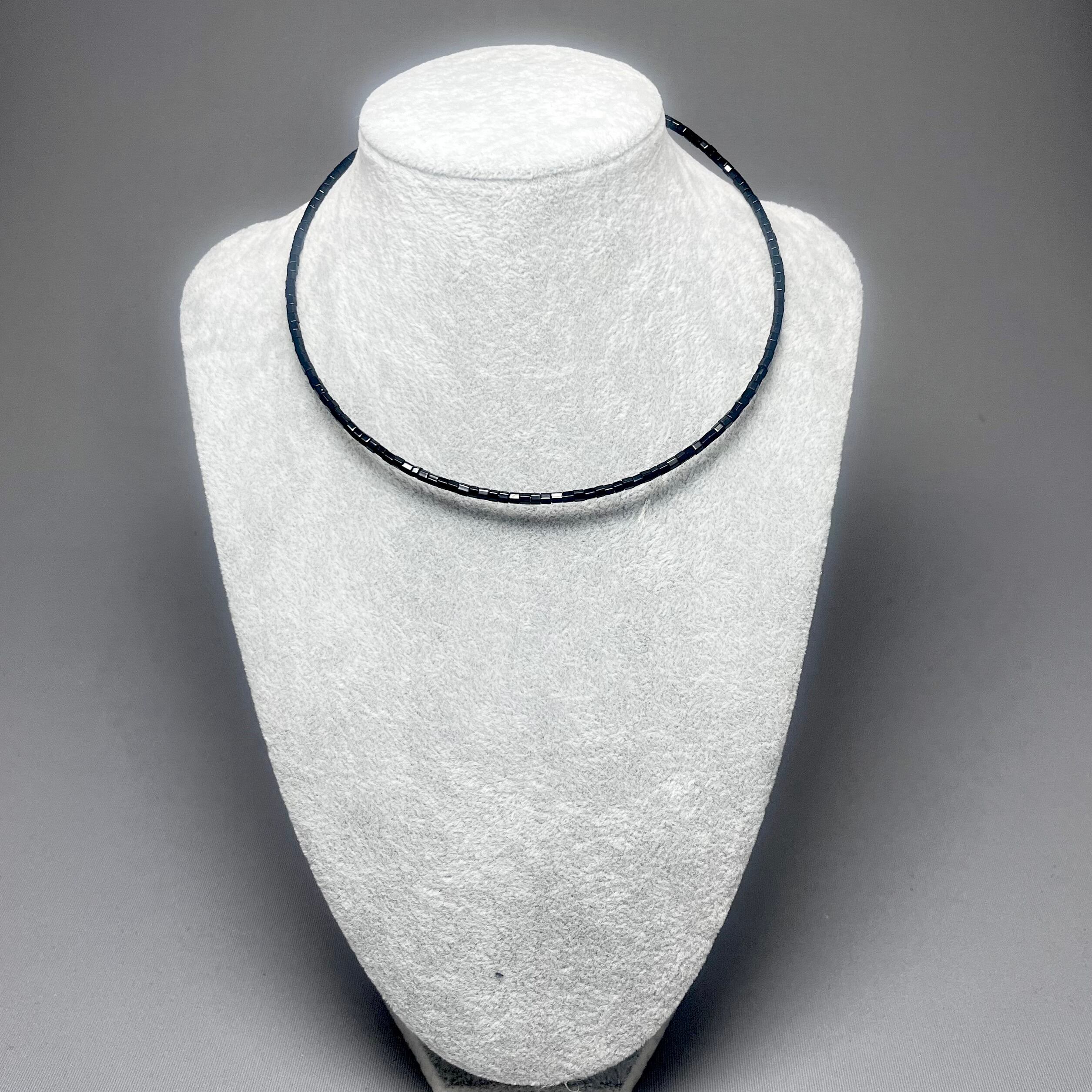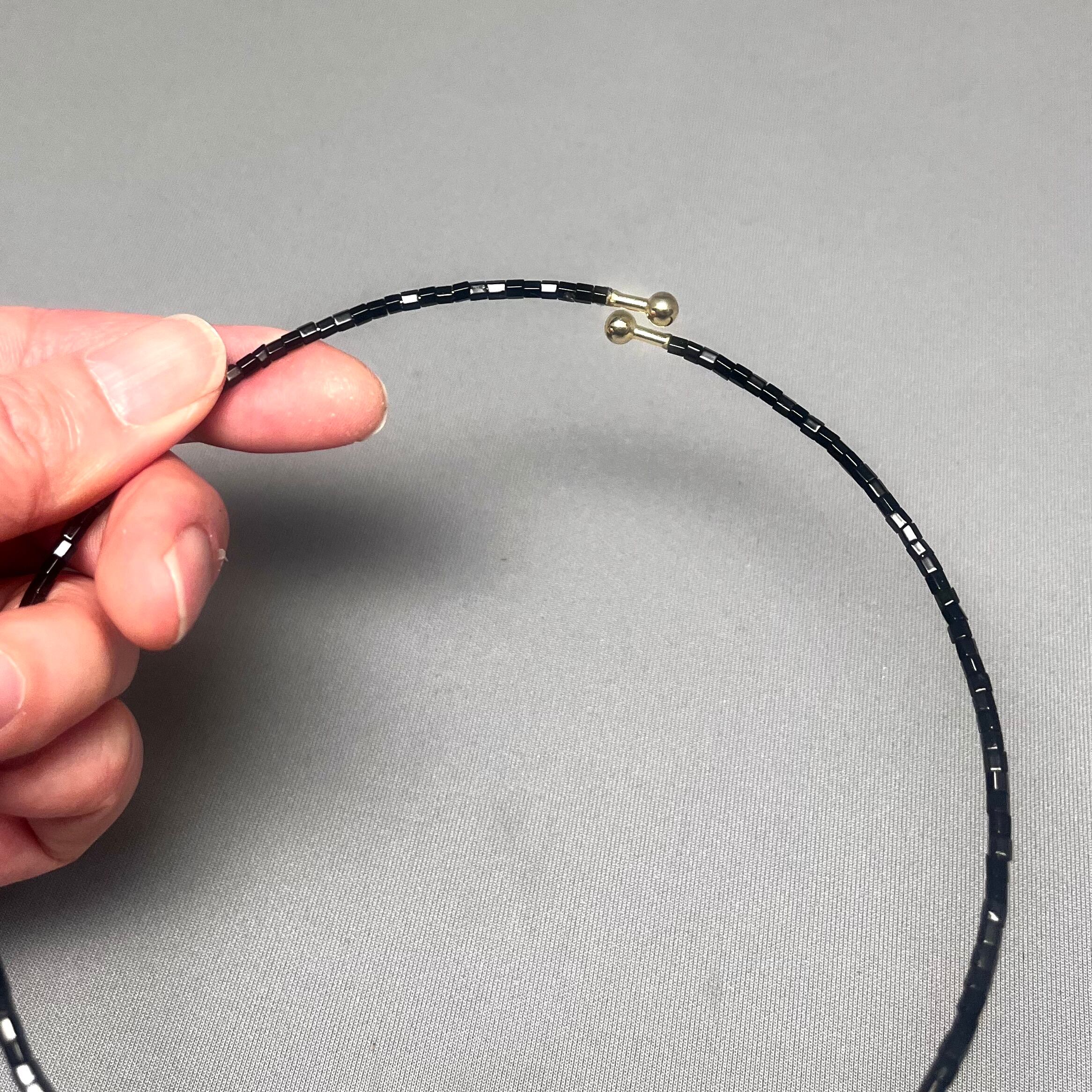 金属製の形状記憶チョーカーにビーズを通したチョーカーです。