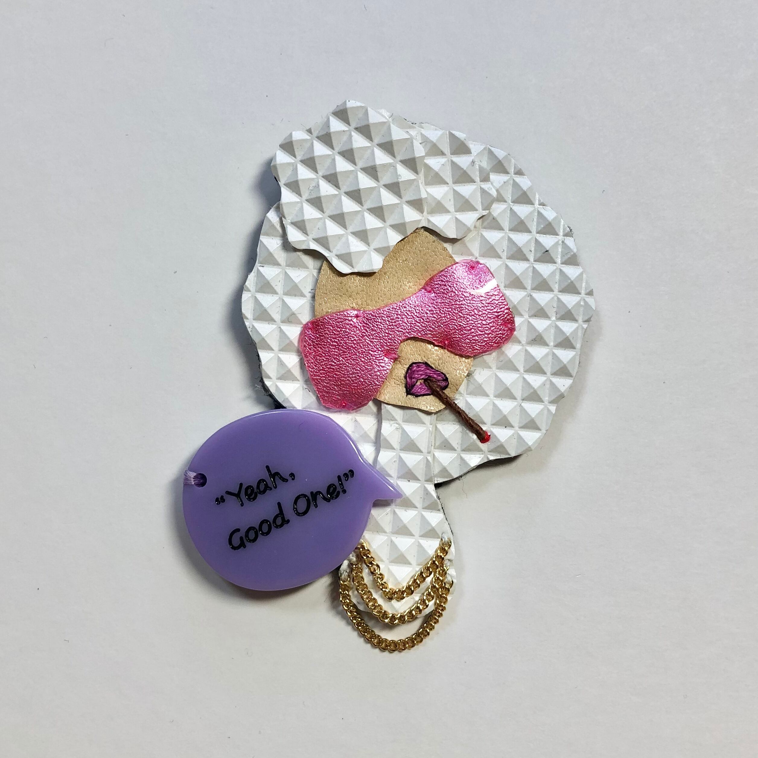 革に刺繍やコラージュで仕上げたバッグに飾れるアクセサリーです。
