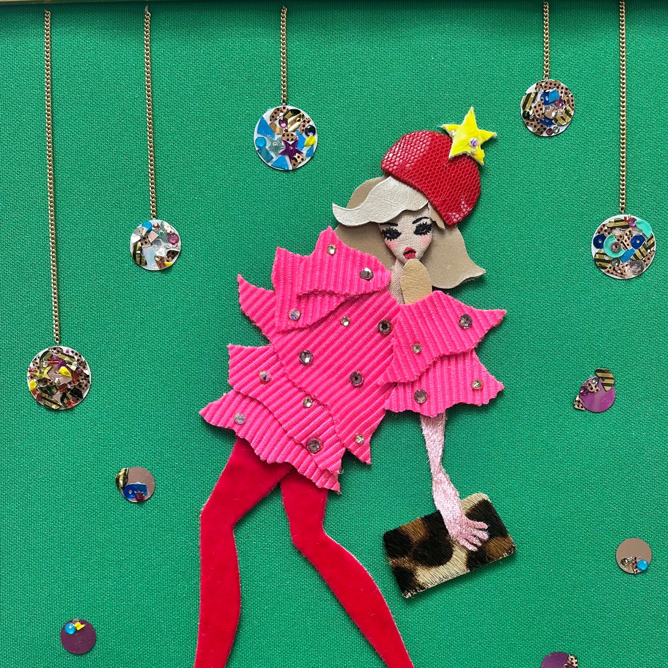 布や革、様々なクラフトパーツを使用したイラストレーション。