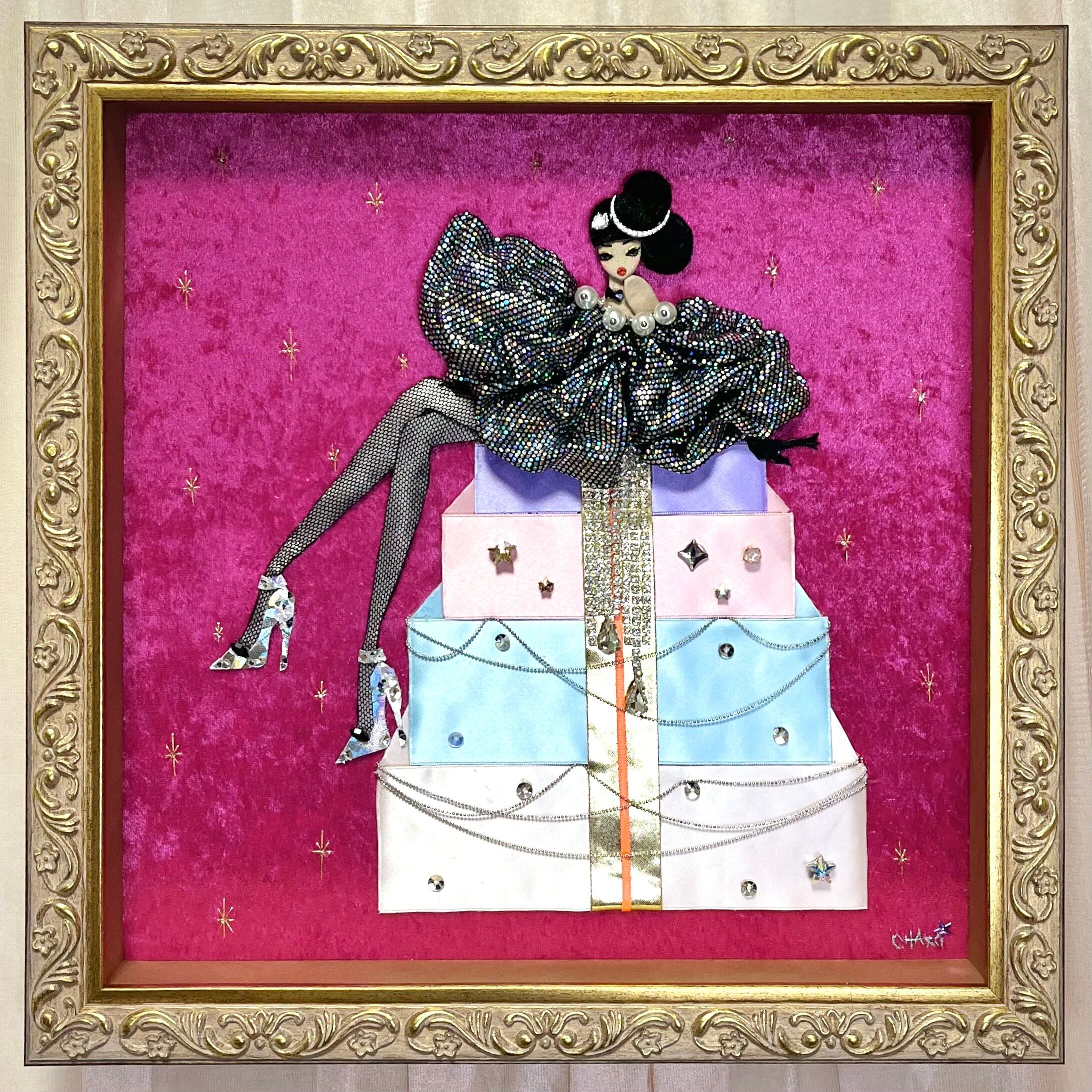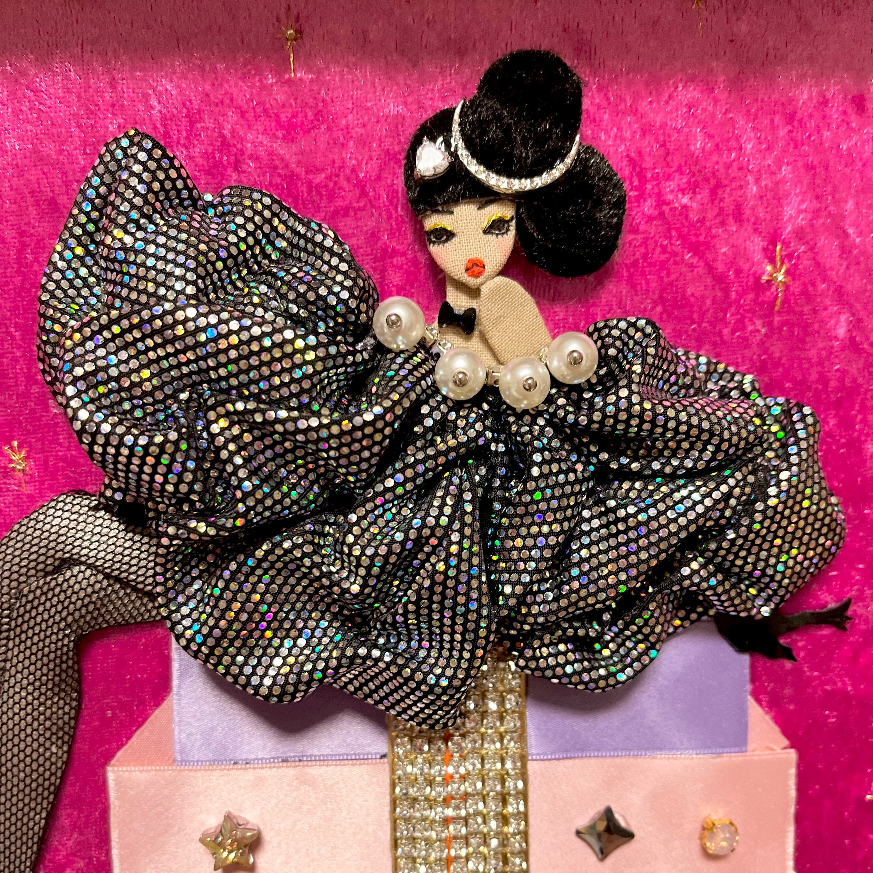布、様々なクラフトパーツ、刺繍などを組み合わせて仕上げたイラストレーションです。