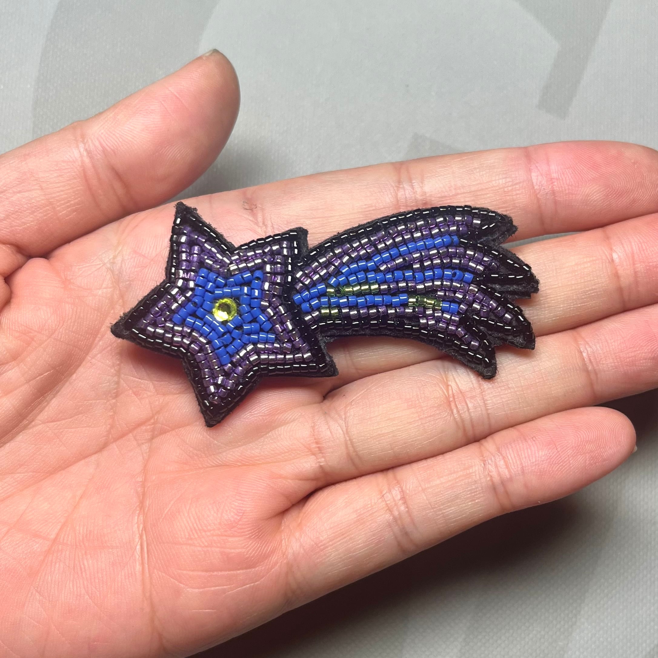 丁寧にビーズ刺繍で仕上げた一点もののブローチ