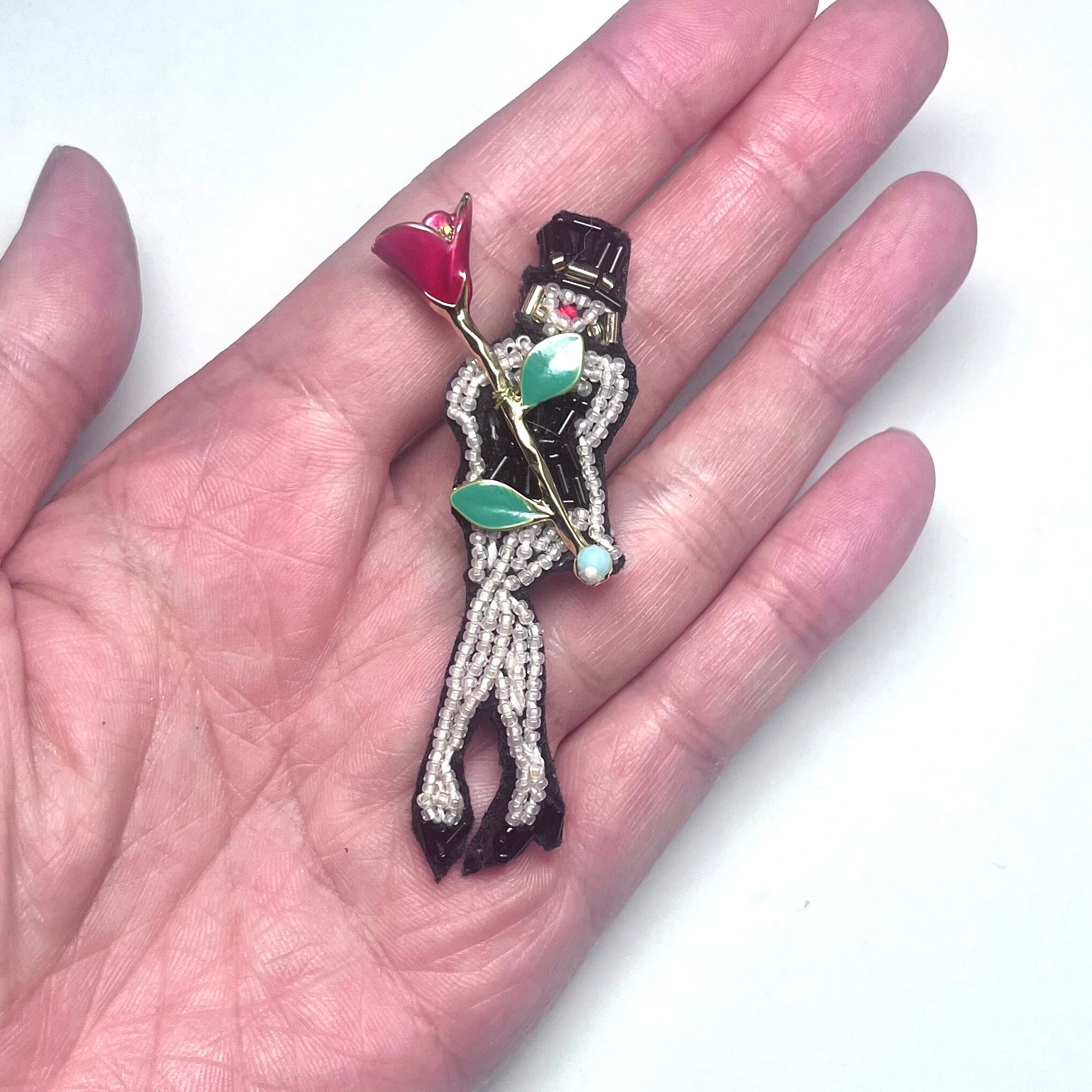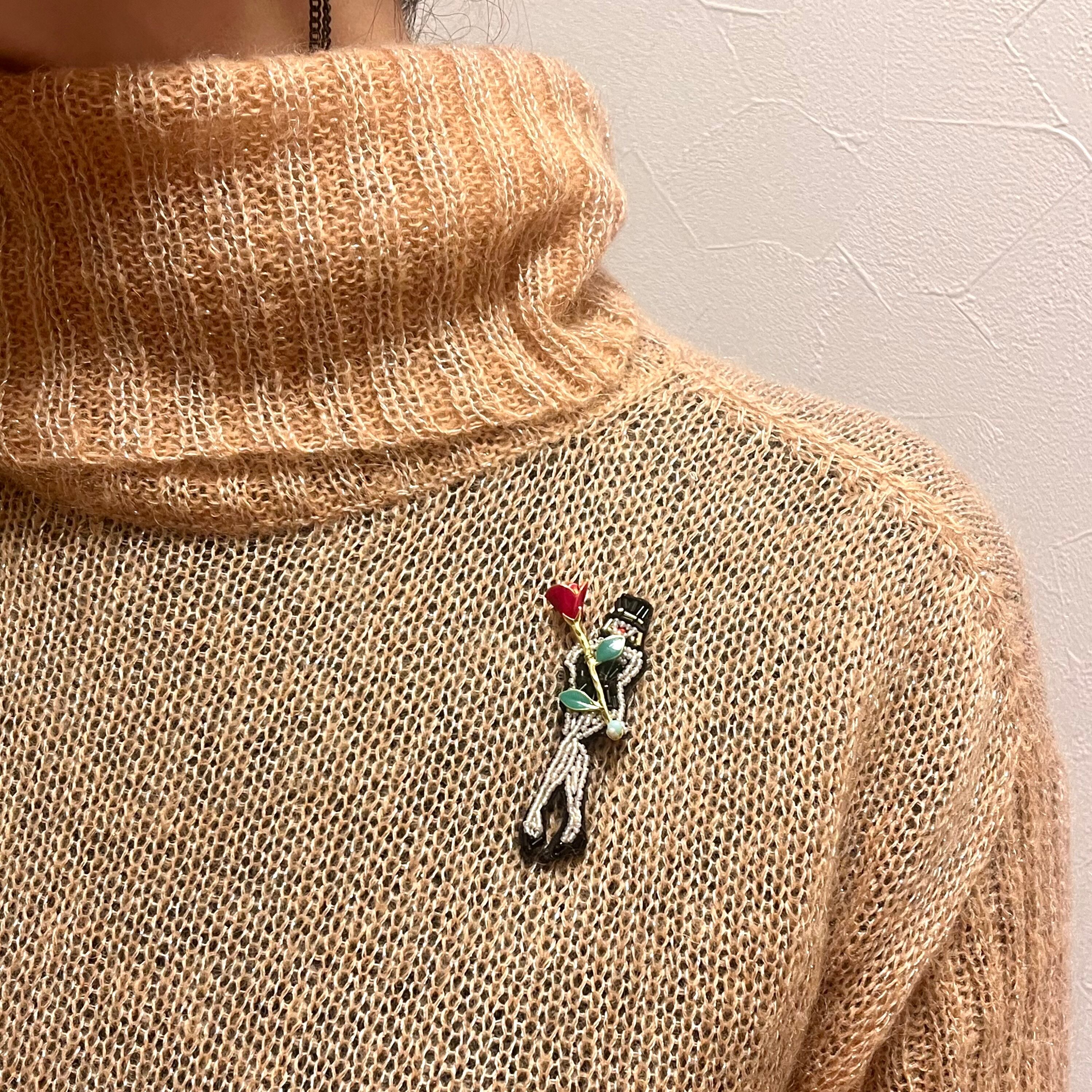 クールな印象のこのブローチは、特別な日やパーティーでのおしゃれを演出します。