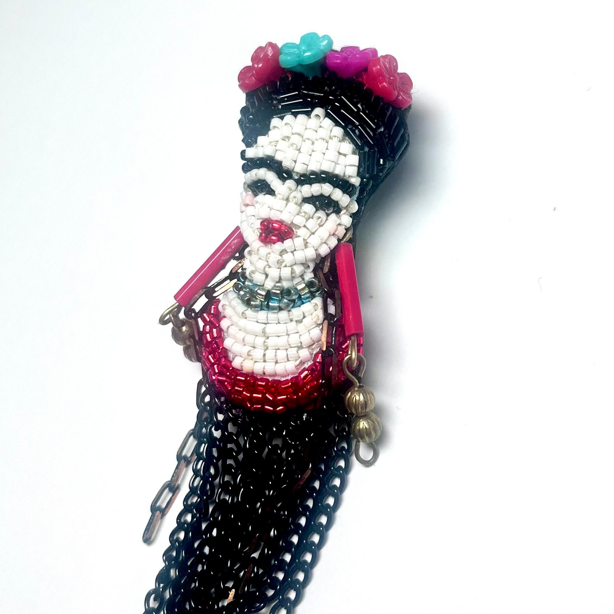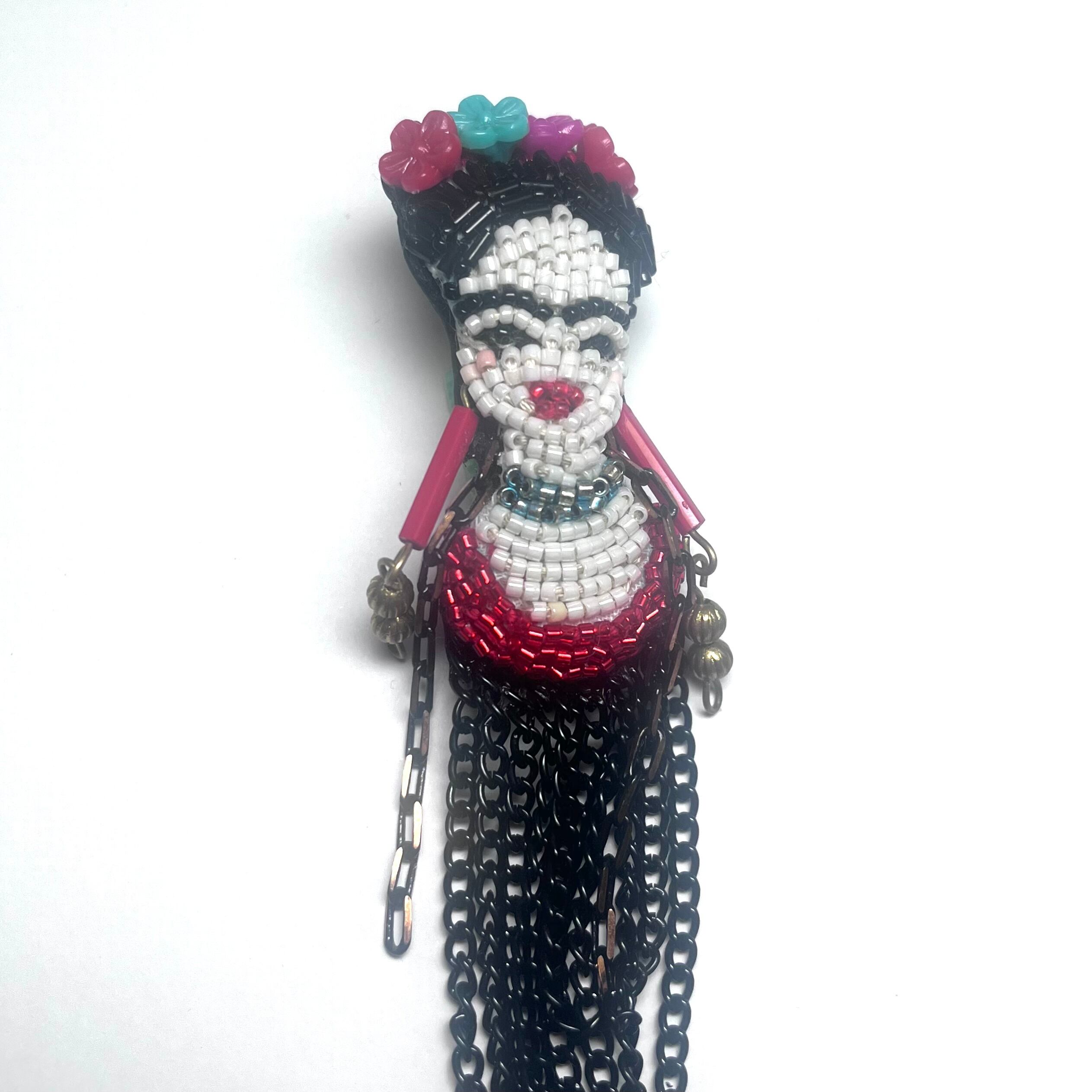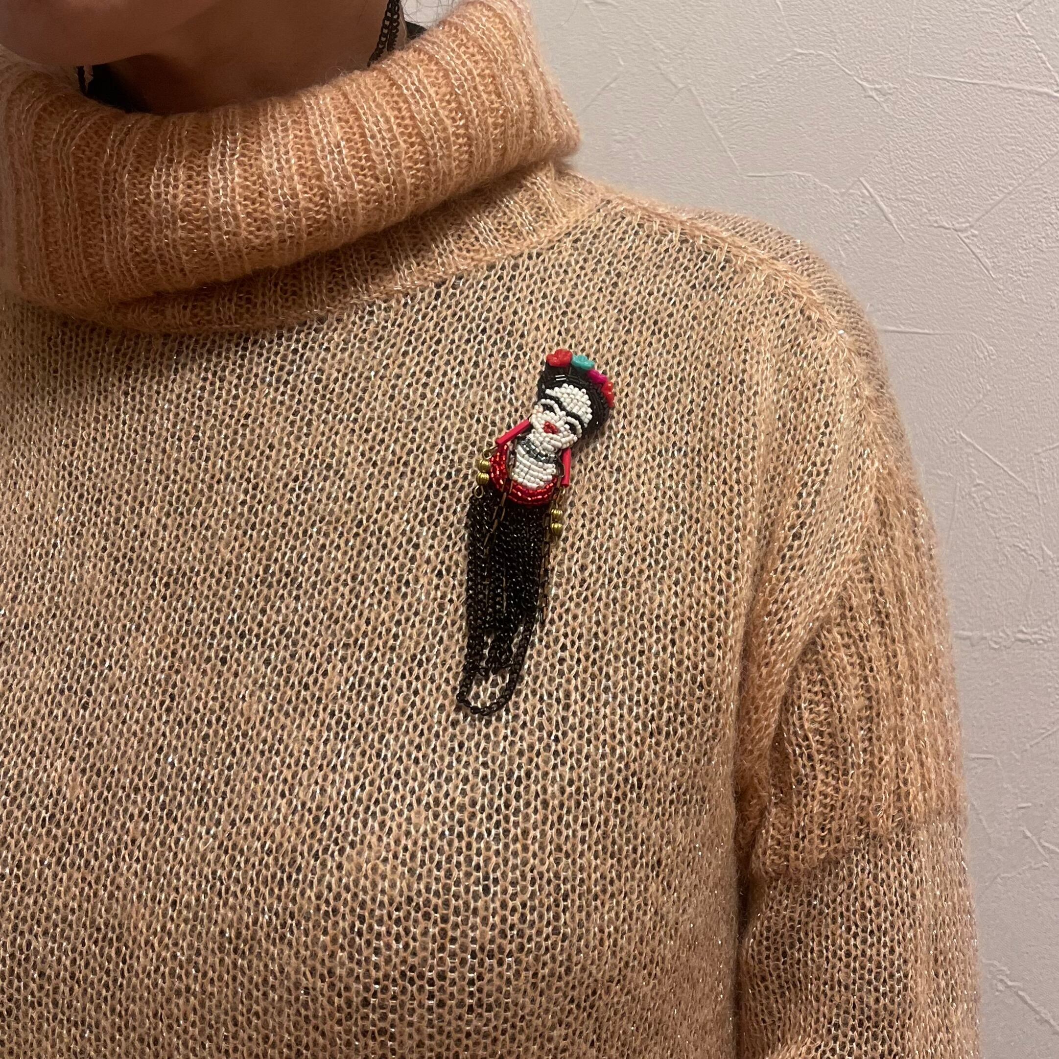 ビーズを使用し、手刺繍で仕上げたブローチ。