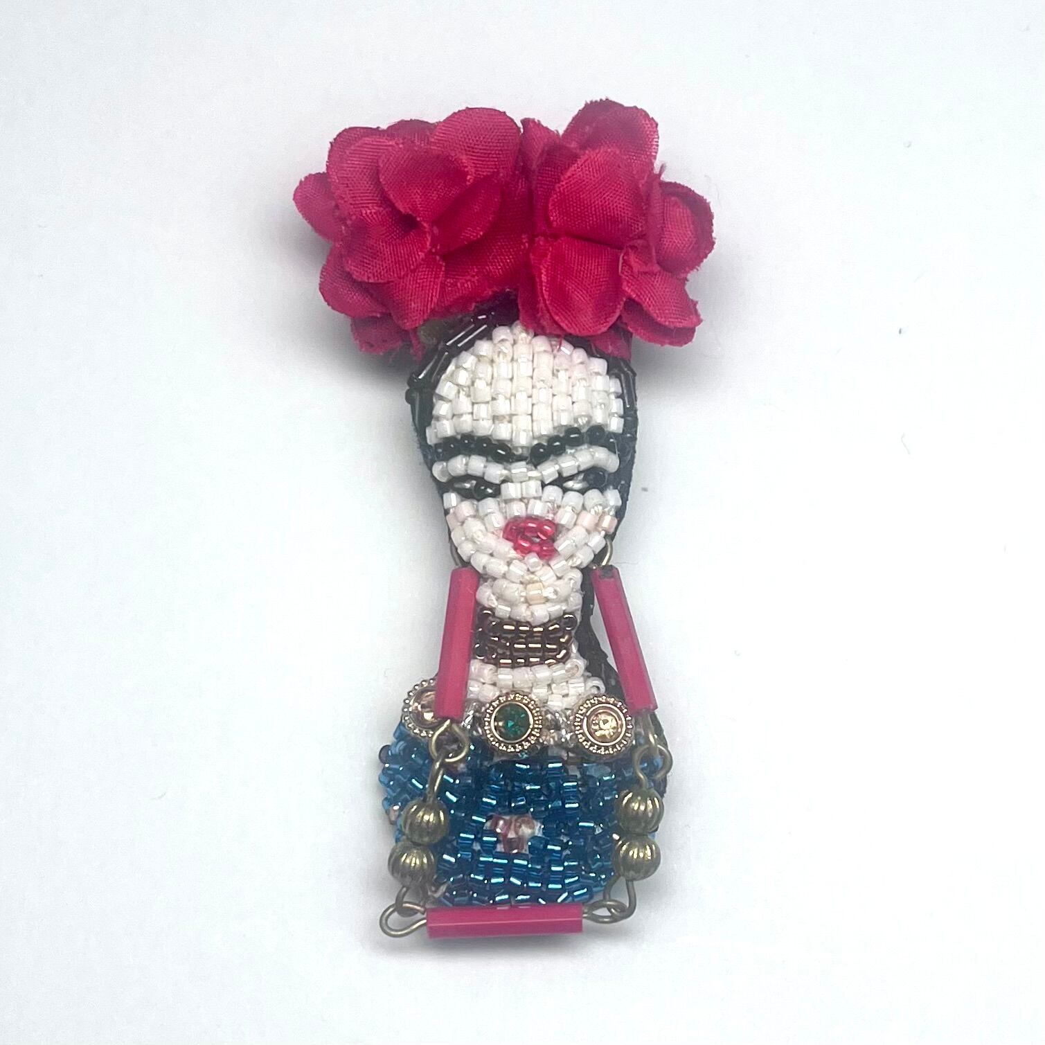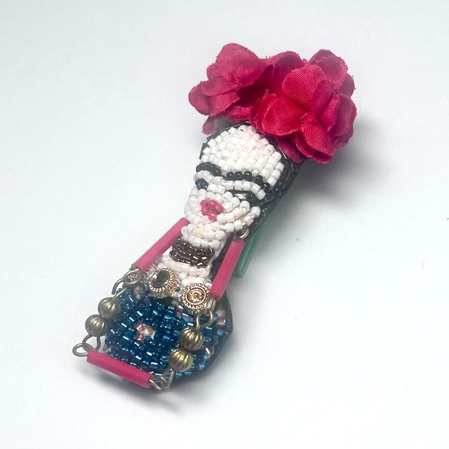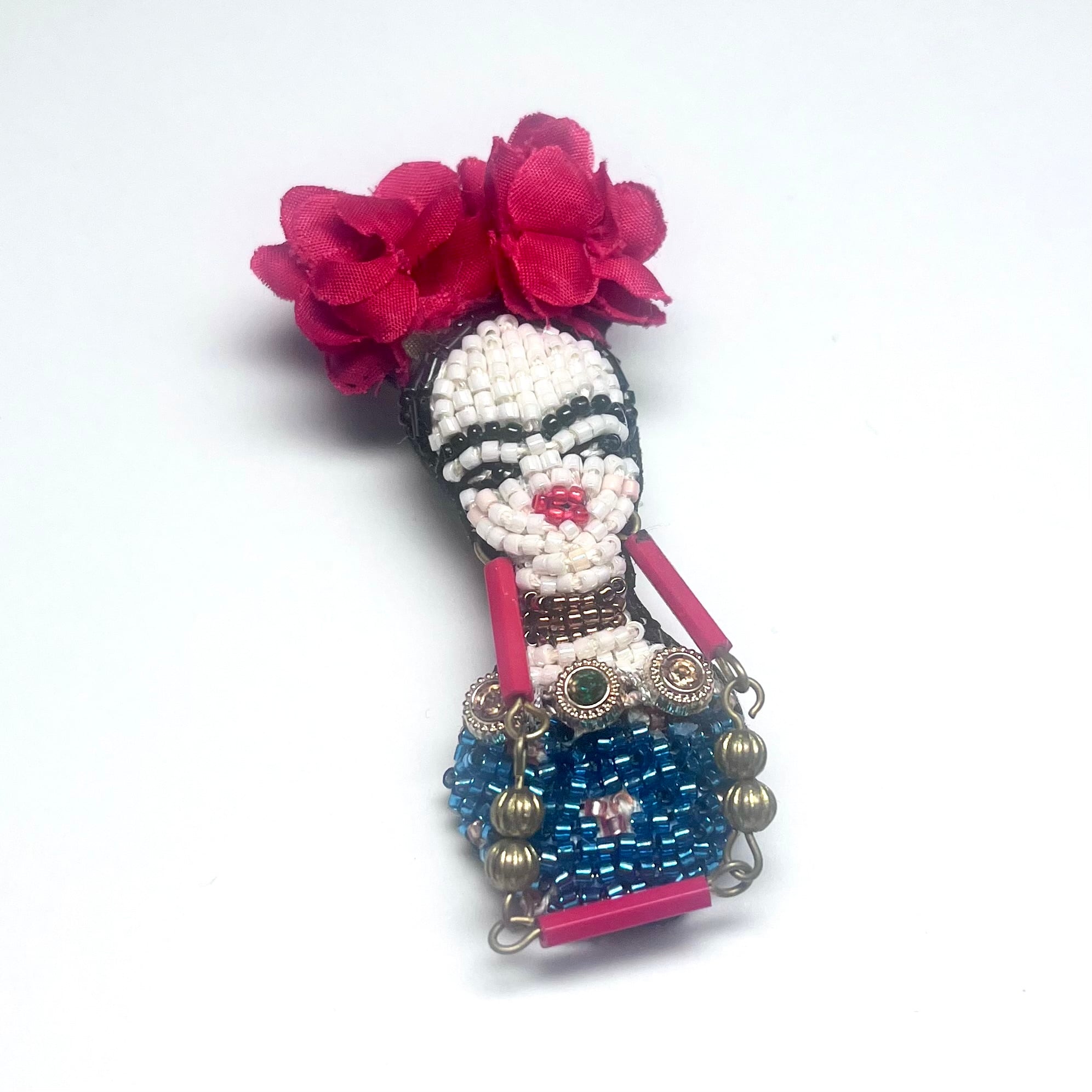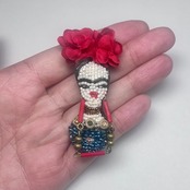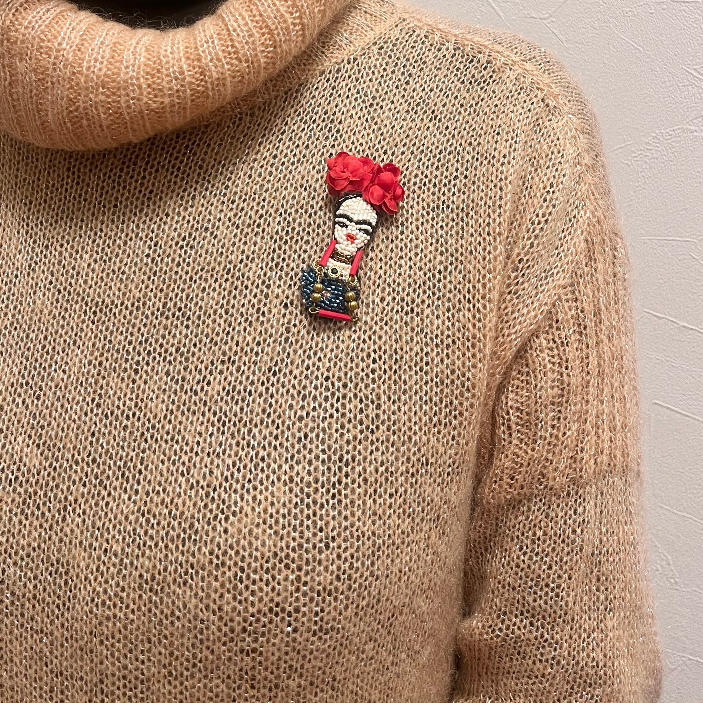 ビーズを使用し、手刺繍で仕上げたブローチ。