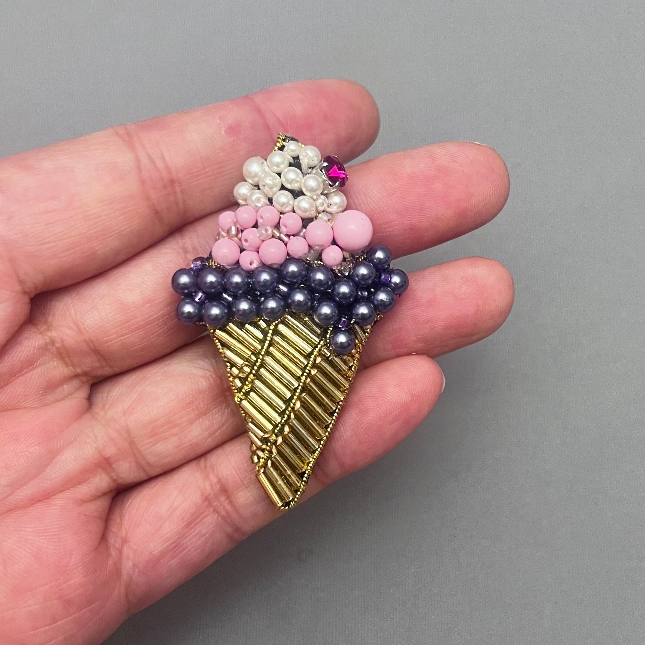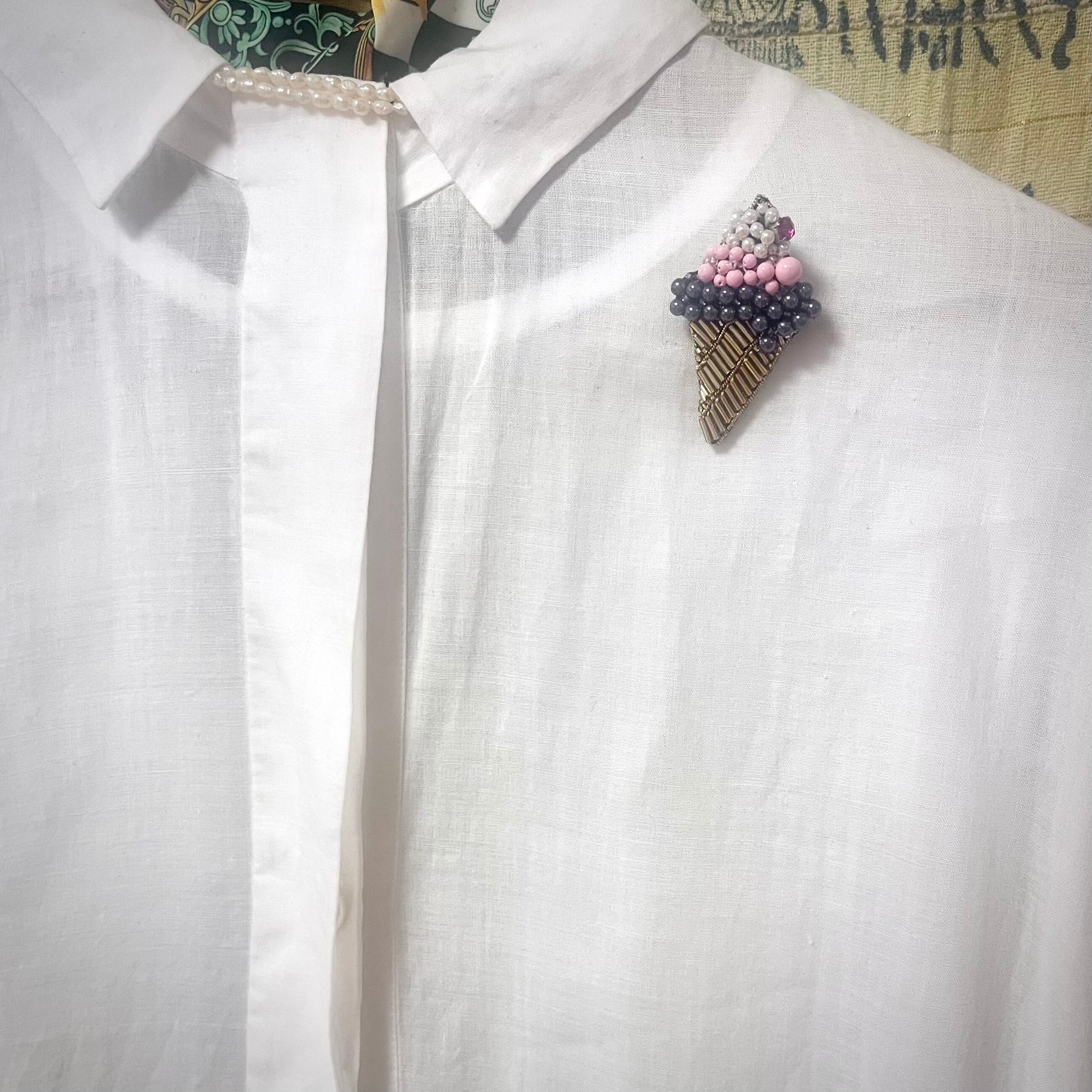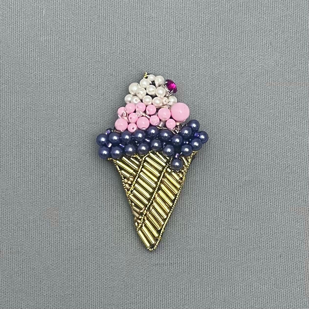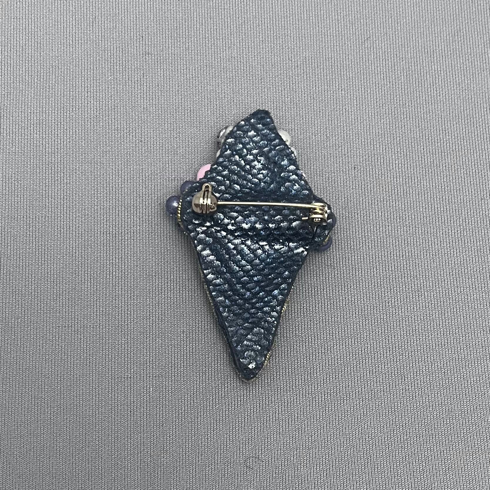 ビーズを使用し、手刺繍で仕上げたブローチ。