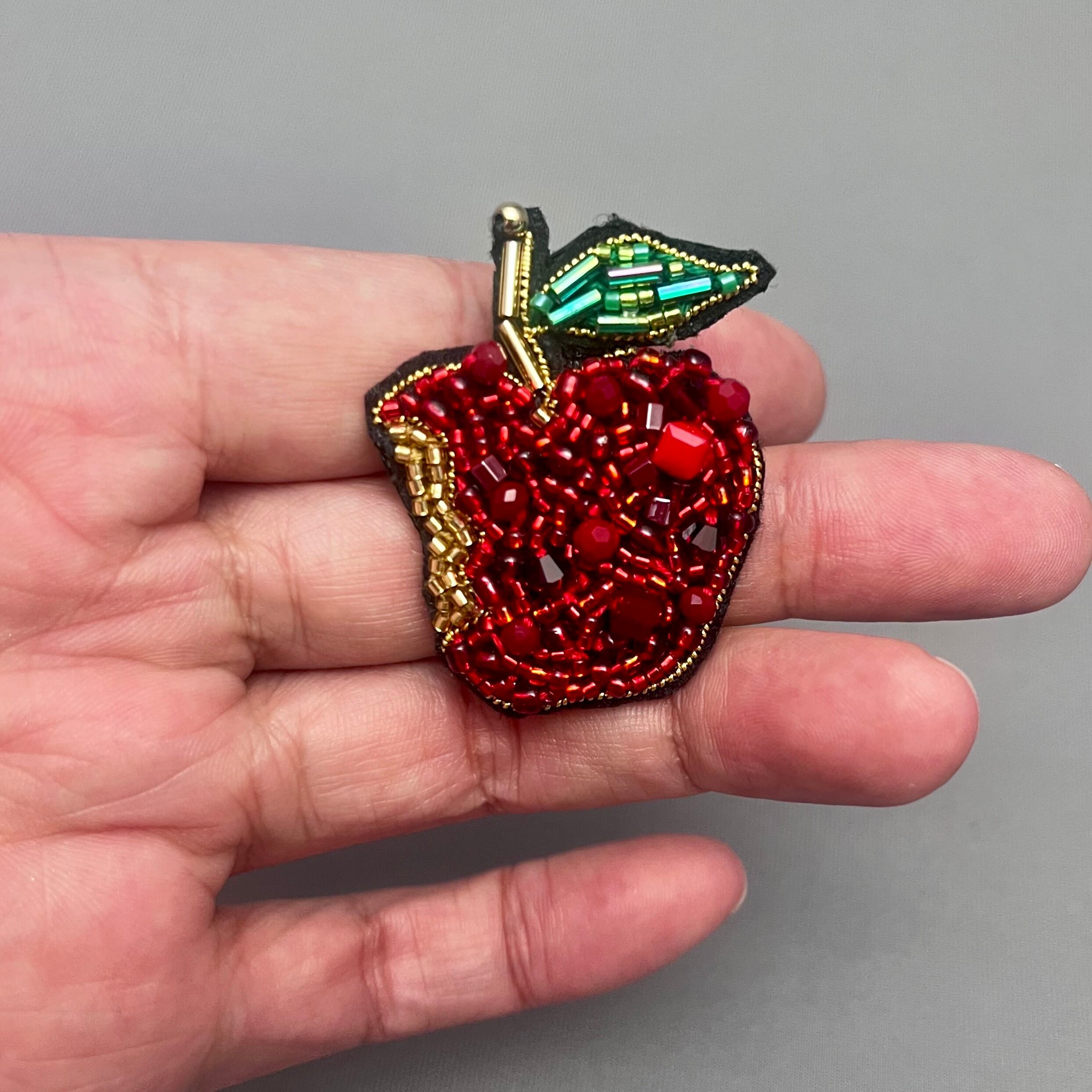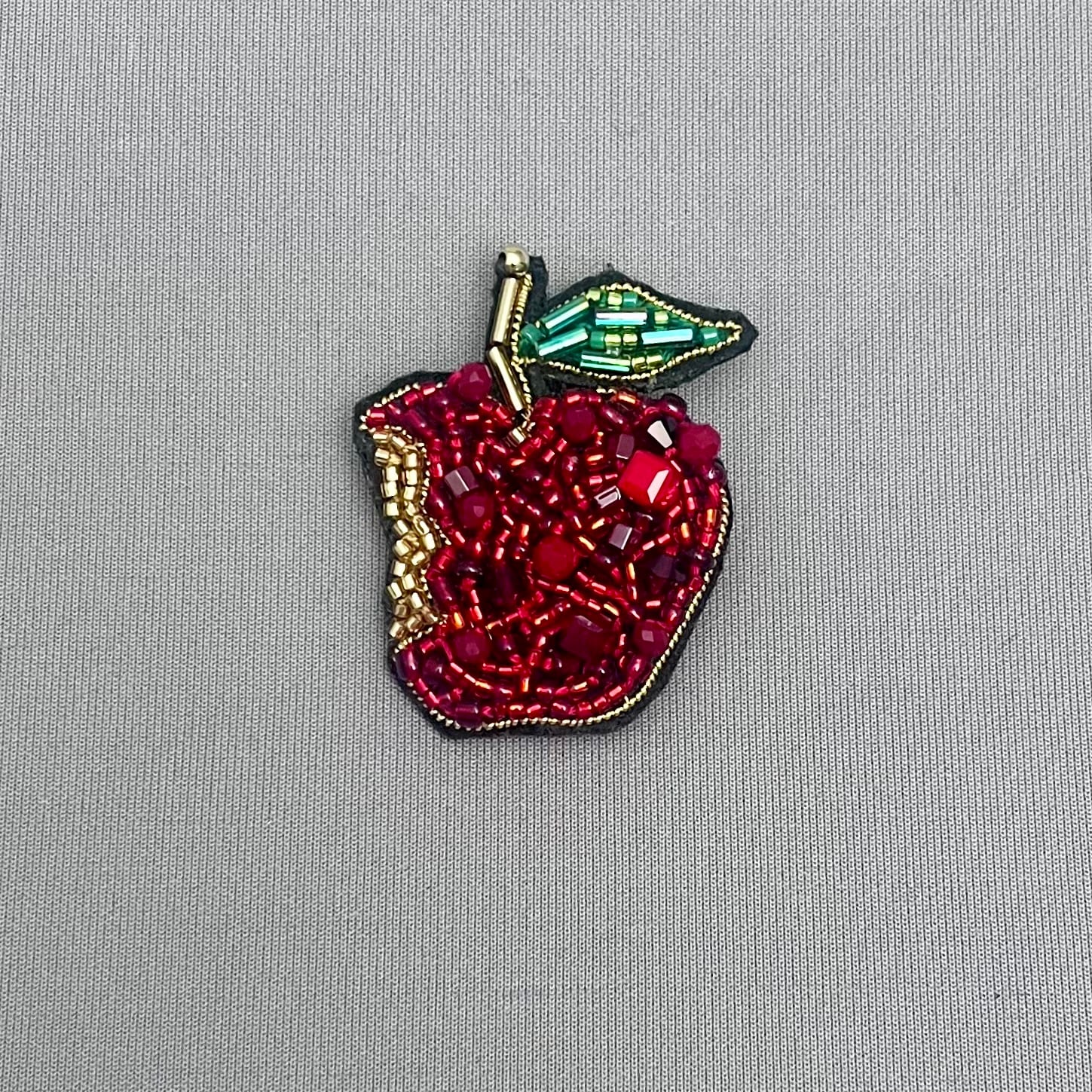 ビーズを使用し、手刺繍で仕上げたブローチ。